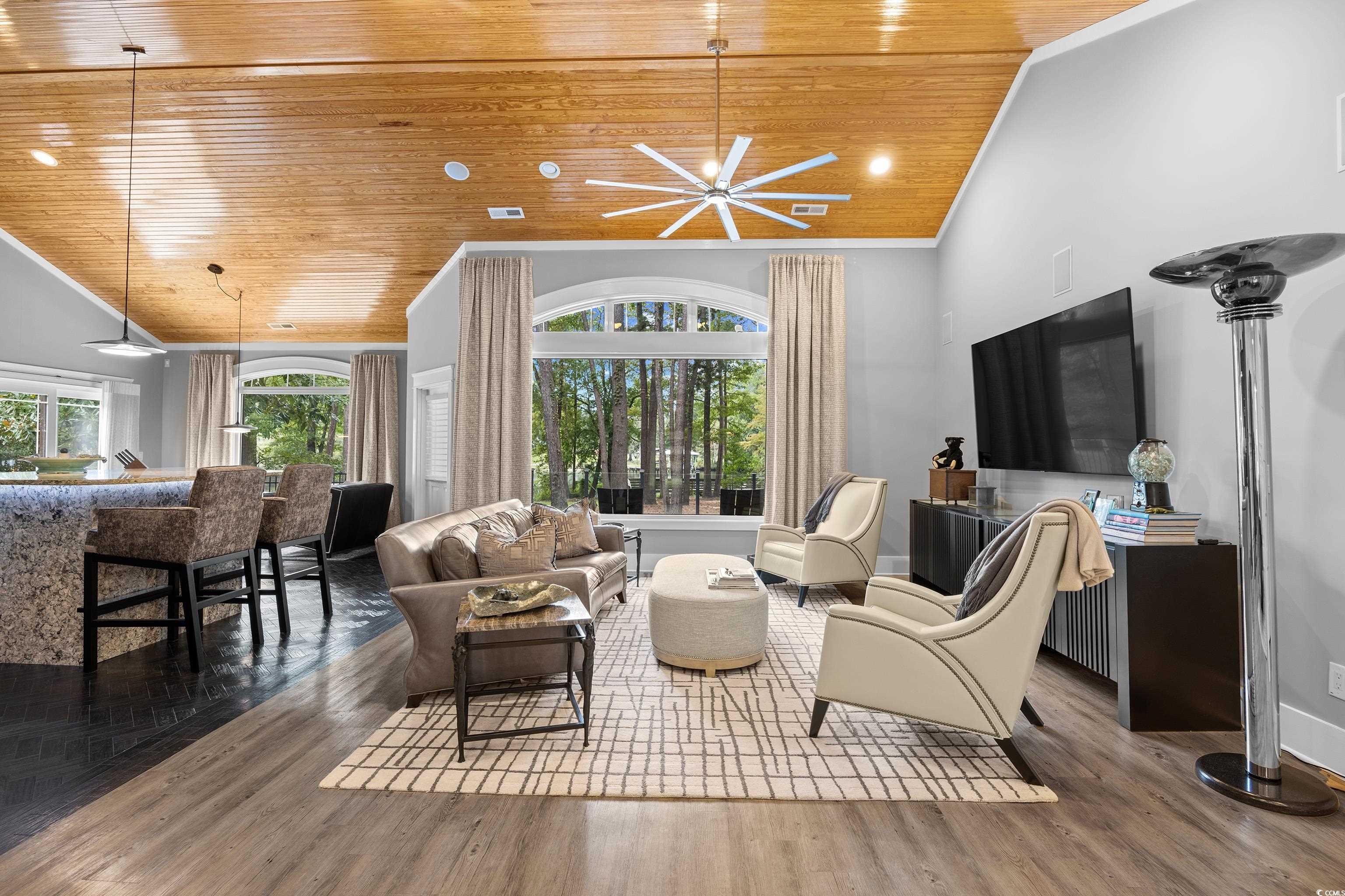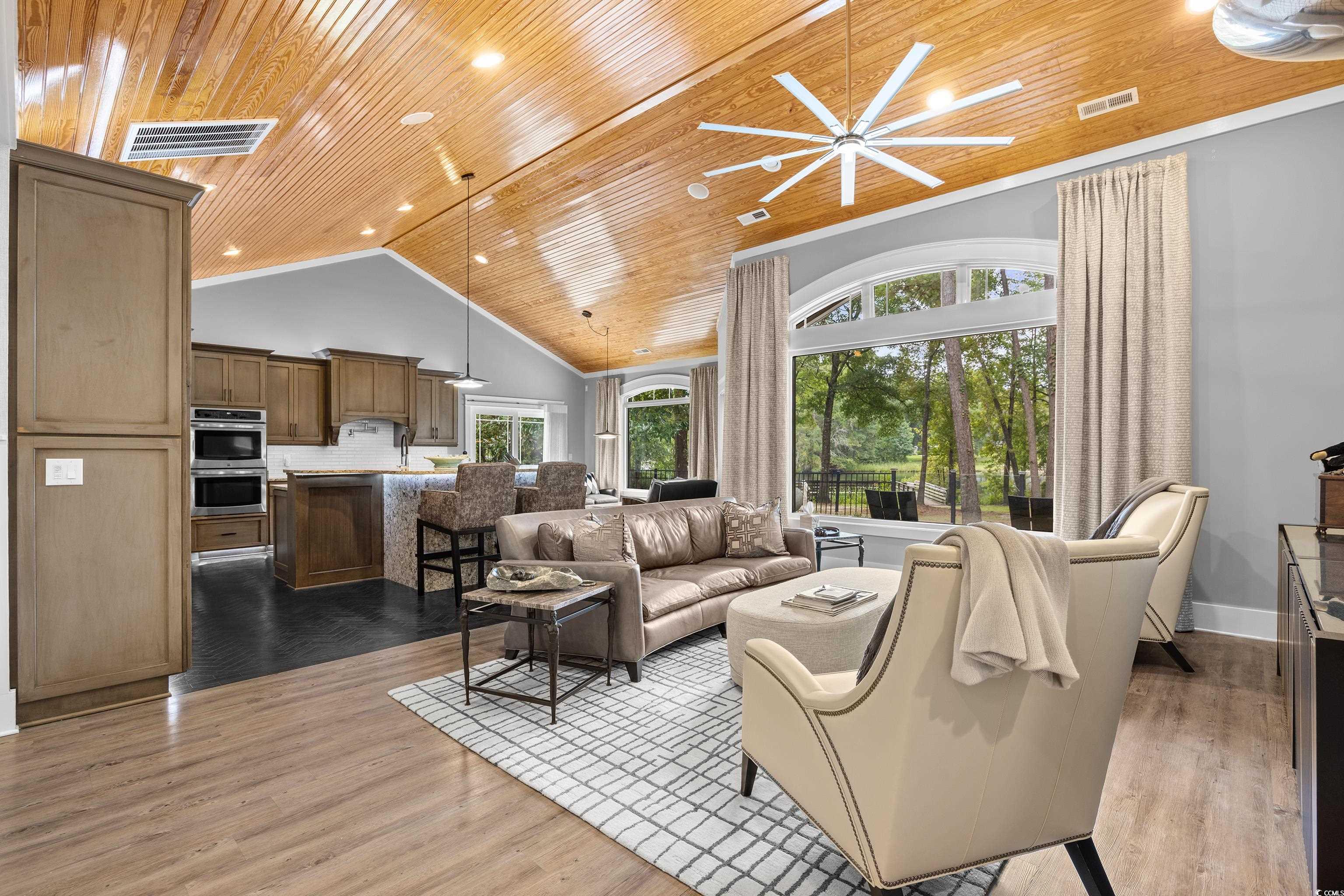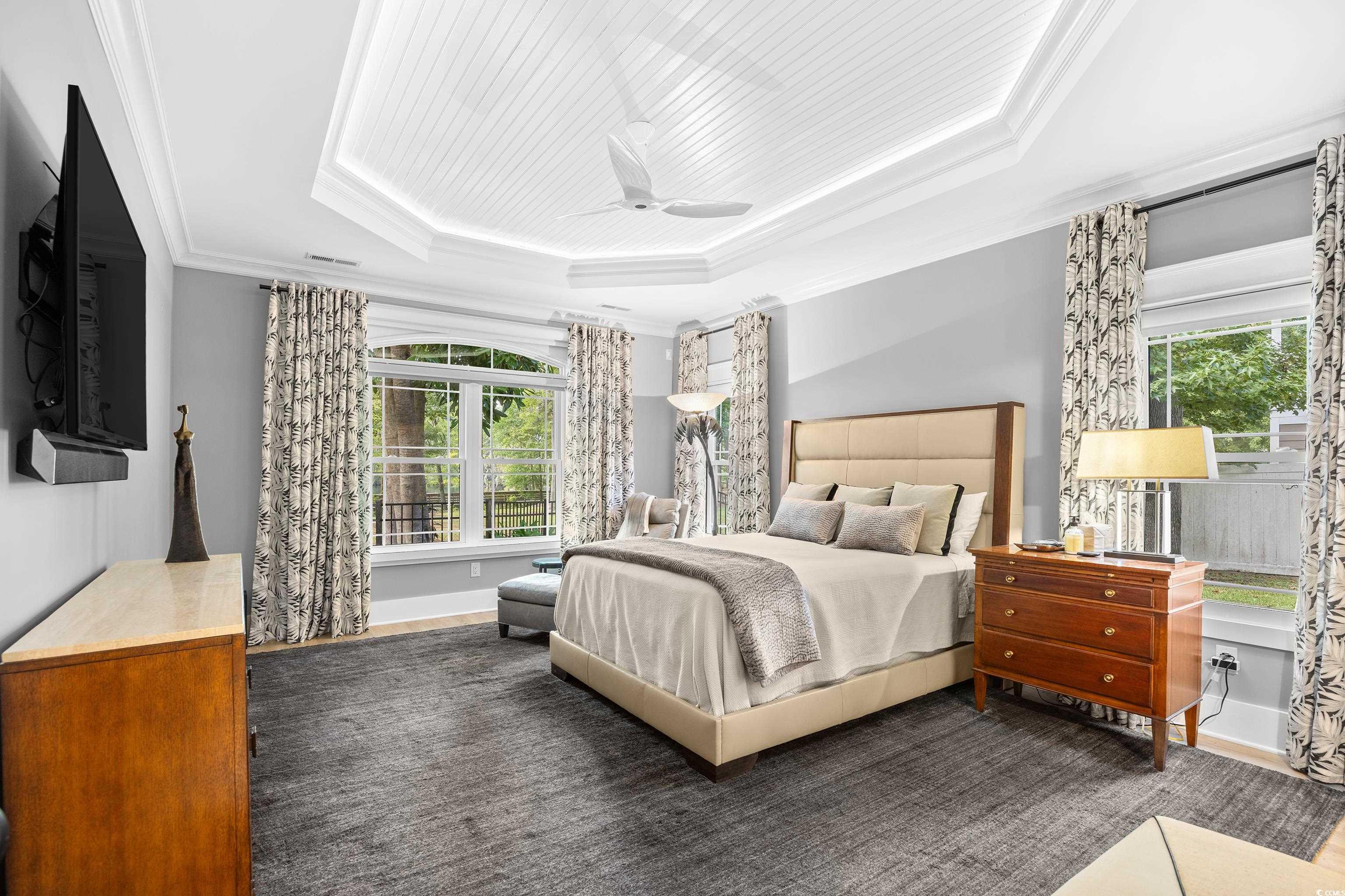 Stunning, custom-built home located on a double lot in a small, private, gated community. This masterpiece is masterfully designed with much attention to detail. When you step in the front door, you see the gorgeous views of the ICW through the large windows from the dining area and leading to the living room with stained wood ceilings and a gourmet kitchen. Truly a chef's kitchen featuring custom cabinetry, upgraded appliances, double oven, pot filler over gas cooktop, toe kick lighting, walk-in pantry leading to additional butler's pantry. Sit and watch the boats go by from the large breakfast bar and sitting area/nook. Home features, primary bedroom on the first floor with a second bedroom/media room with a second private bath and a walk-in closet. The second floor features additional large bedrooms, plus an additional office/bedroom. Perfect home for entertaining. The fenced-in yard has a gate that leads to the quaint Swing Bridge - Horry County Park overlooking the beautiful Intracoastal Waterway with access to the boardwalk along the ICW. Secluded, yet close to everything that the Grand Strand has to offer. Public boat landing is right around the corner. Live like you are on vacation!