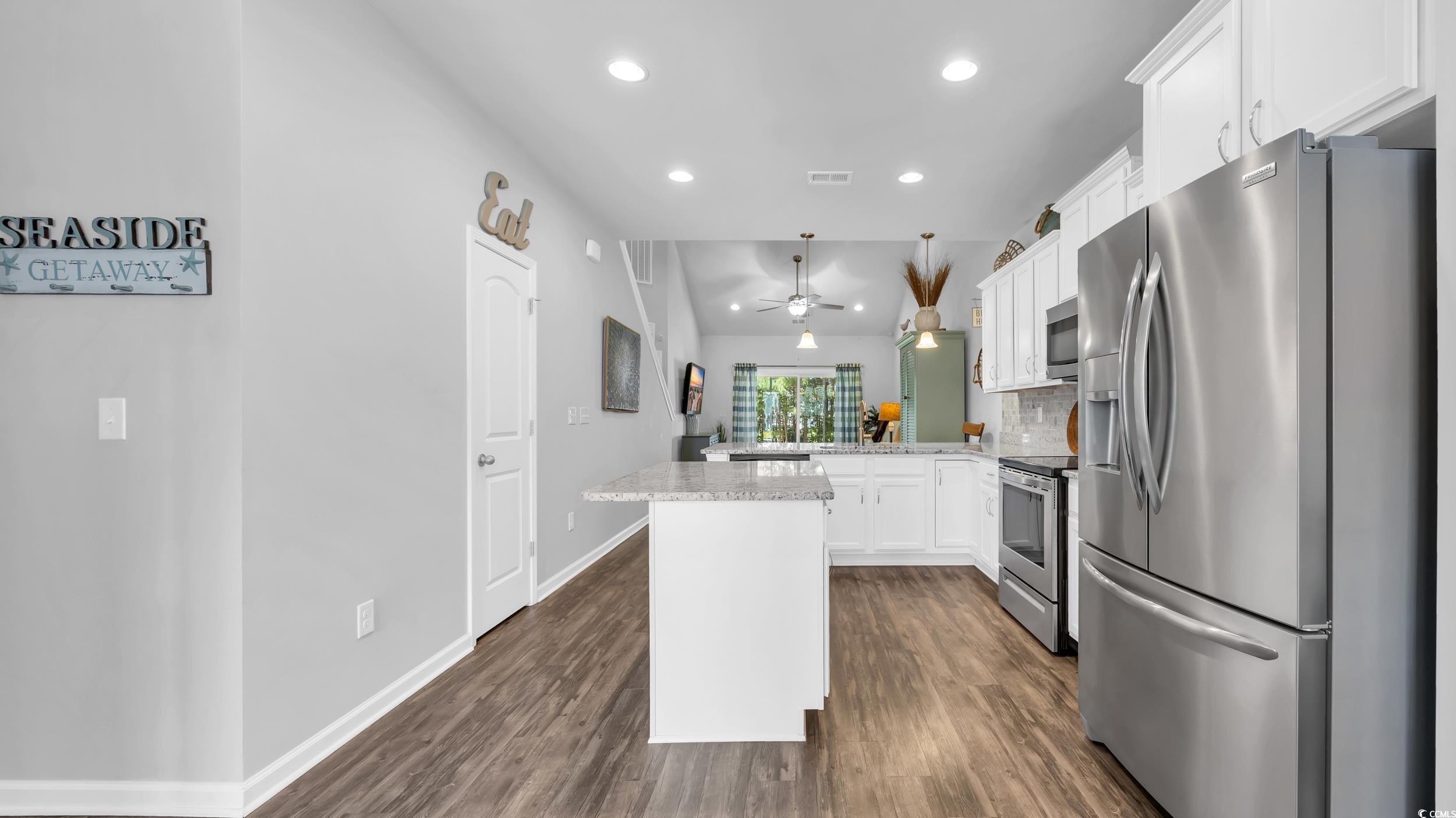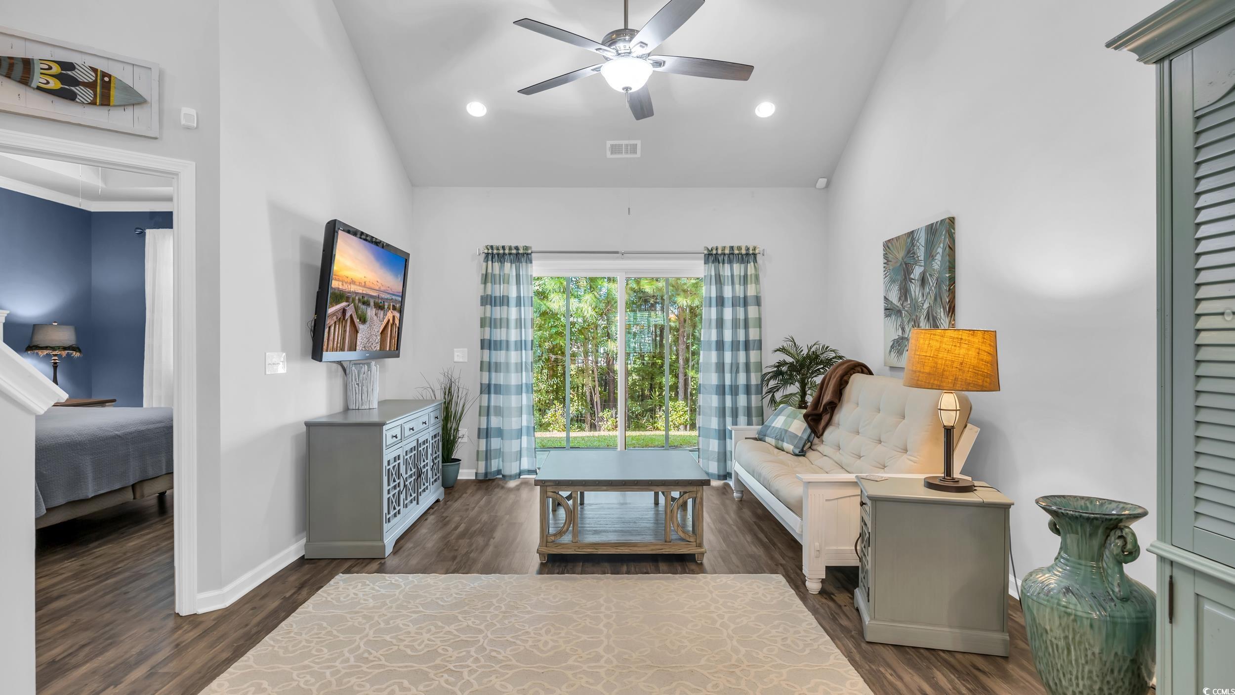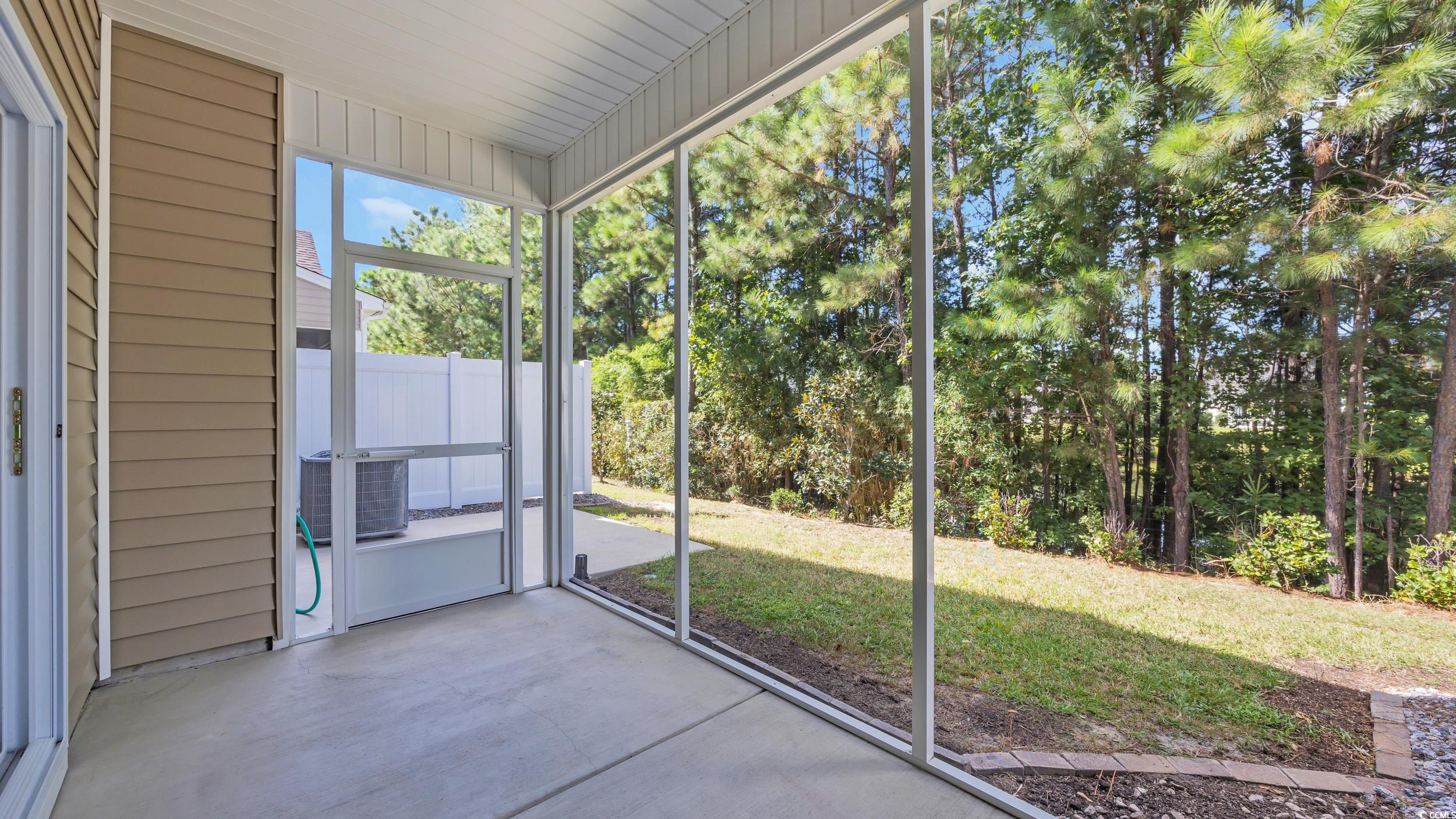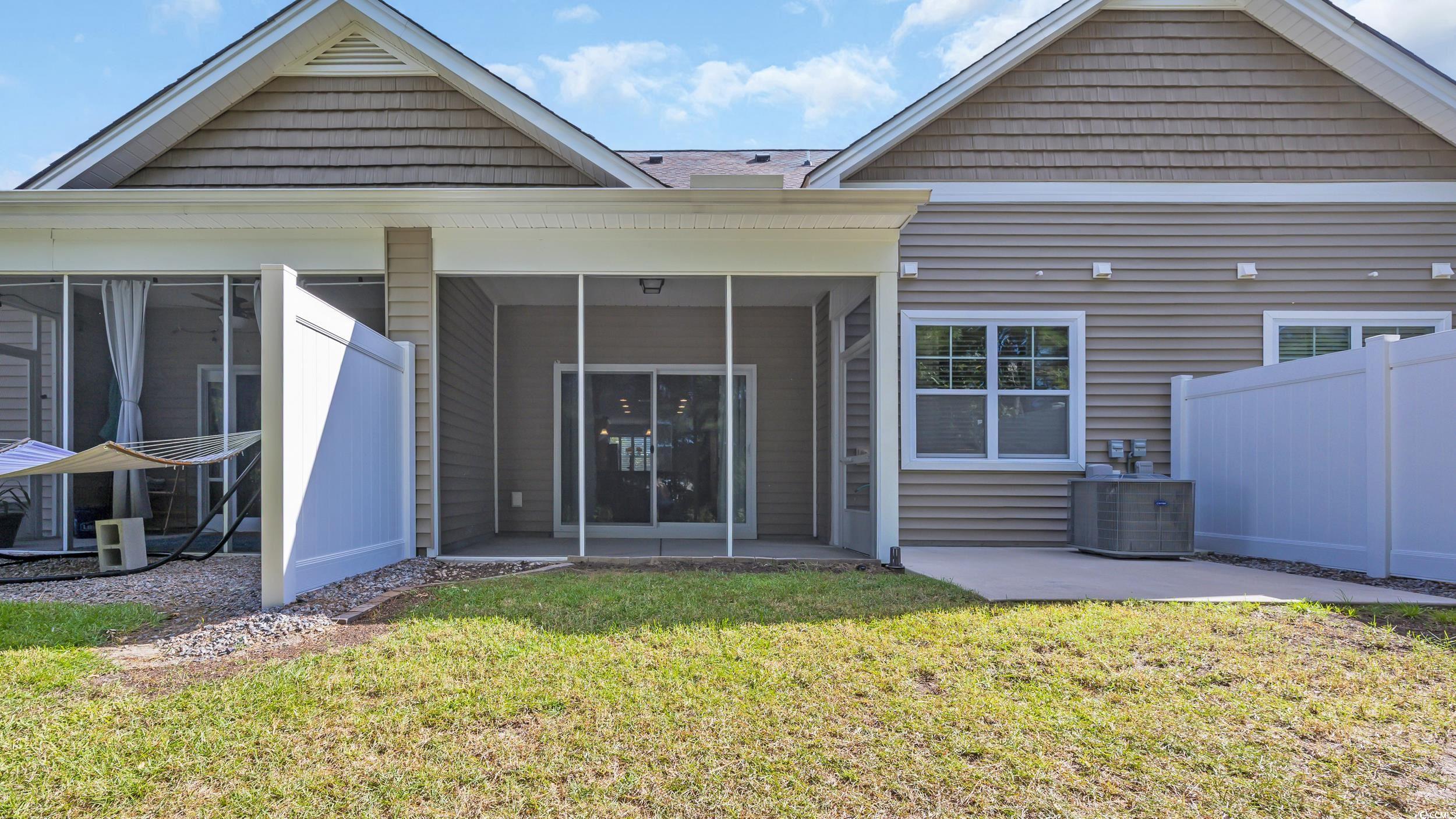 Beautifully maintained 3-bedroom, 2.5-bath townhome with a one-car garage, ideally situated in the highly desirable Berwick section of Windsor Plantation. This move-in-ready home features a bright, open-concept floor plan highlighted by vaulted ceilings in the living area, a convenient half bath, and a main-level laundry room. The well-appointed kitchen offers granite countertops, stainless steel appliances, ample cabinetry, a spacious walk-in pantry, and a breakfast bar perfect for casual dining. The primary suite is located on the first floor and includes a spa-inspired bath with dual sinks, a walk-in shower, and a generous walk-in closet. Upstairs, youll find two additional bedrooms, a versatile loft ideal for a home office or media space, and an expanded, insulated storage roomperfect for extra storage or hobby use. Enjoy outdoor living on the screened-in back porch overlooking a private, tree-lined backyard, ideal for relaxing or entertaining. The HOA provides a low-maintenance lifestyle with landscaping and exterior maintenance included, along with access to the community pool, clubhouse, and basic cable. Windsor Plantation is a charming, sidewalk-lined community with palm trees and fountains, offering a resort-style atmosphere just minutes from shopping, dining, medical facilities, the airport, and the beach.