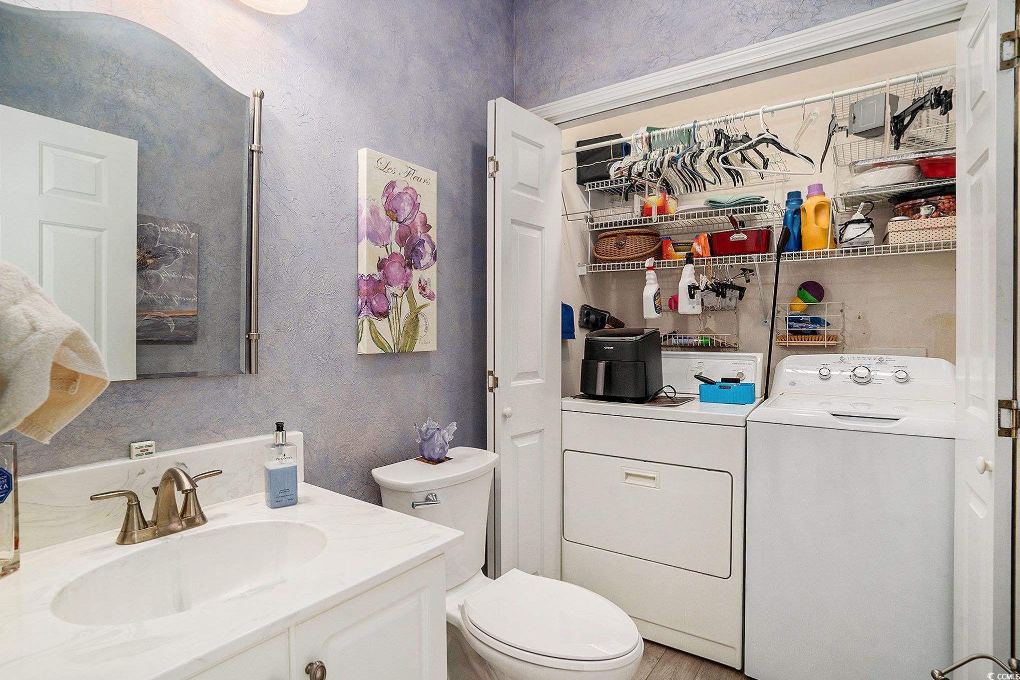 LARGE FAIRWAY OAKS UNIT ON THE POND! This townhouse-style condo is in the popular community of Fairway Oaks located in the Cherry Grove section of North Myrtle Beach. This unit overlooks one of the beautiful community ponds, and is only steps away from the community pool. Enjoy the open-concept floor plan featuring high ceilings, stainless steel kitchen appliances, granite countertops, eat-in breakfast bar, separate laundry space, walk-in pantry, and first-floor primary suite with walk-in closet and half bath. Two spacious guest bedrooms and full guest bath located on the second level. Flooring in the unit includes LVP, carpet and tile. The outdoor fenced-in patio is a perfect space to relax with morning coffee while enjoying views of the community pond and soothing sounds of the pond fountain. The patio is large enough for a grill, outdoor furniture and storage chest to store all your beach essentials. Fairway Oaks is a hidden gem bordering the Surf Golf & Beach Club offering an oversized community pool, hot tub and on-site playground. Become an owner in this quiet neighborhood with beautiful Magnolia trees, ponds and fountains making it a natural habitat to spot turtles and coastal bird life along the property. Just a short golf cart ride to entertainment, restaurants and beach shopping in Cherry Grove and Ocean Drive, fun for the entire family. Golf cart and pet friendly community. Make beach life your best life with this beautiful beach condo!