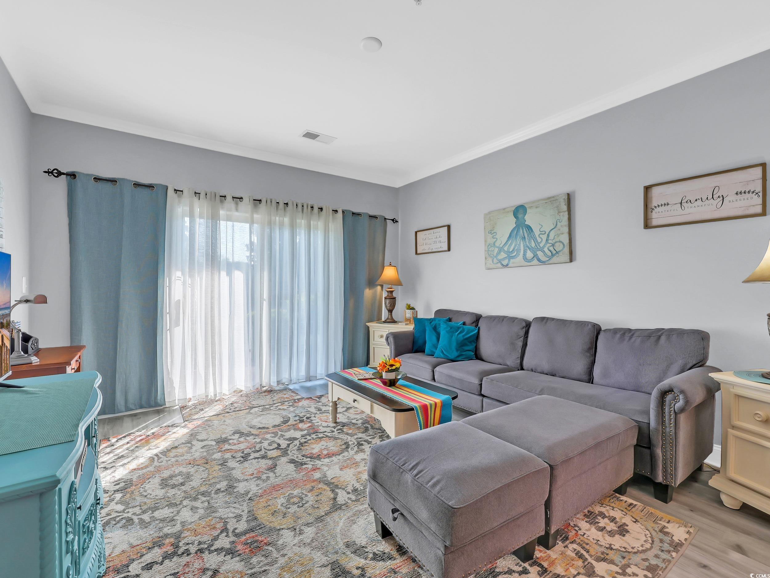 ASK ABOUT LENDER CREDIT BEING OFFERED!! Welcome to this beautifully maintained and fully furnished 3-bedroom, 2-bathroom first-floor end unit condo located in the highly sought-after World Tour Golf Community. This rare end unit offers extra natural light, enhanced privacy, and golf course views the perfect blend of luxury, comfort, and convenience. Step inside and be greeted by elegant wainscoting in the entryway, LVP flooring throughout the main living areas, and brand-new carpet in the bedrooms. The open-concept layout seamlessly connects your full-sized kitchen with breakfast bar, dining area, and a spacious living room perfect for entertaining or relaxing. The condo offers; 3 full bedrooms: Master suite with king bed, walk-in closet, and ensuite bath featuring a double vanity and walk-in shower, Guest room with a queen bed, Third bedroom with a double queen bed setup, Private covered patio with gorgeous views of the 19th hole, laundry room area and plenty of storage, Offered fully furnished - move-in or rental ready! Located in the prestigious World Tour community, home to a championship-style 18-hole golf course inspired by some of the most legendary courses from around the world. Enjoy access to the luxurious clubhouse, on-site restaurant and bar, and meticulously maintained grounds. Ideal for: A primary residence, A vacation getaway or a turnkey rental investment. Don't miss your chance to own a piece of paradise in one of Myrtle Beach's most iconic golf communities. Schedule your private showing today!
