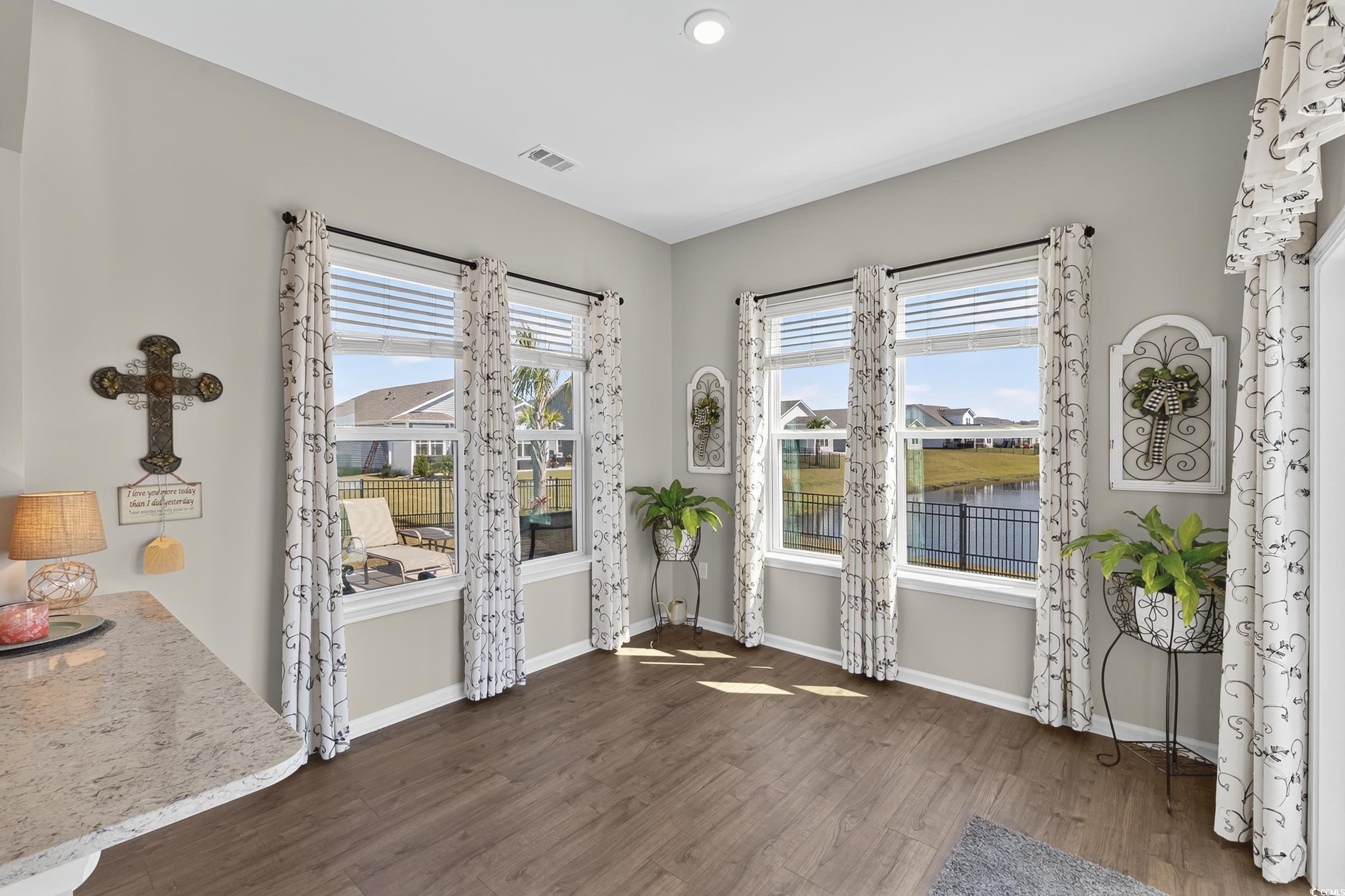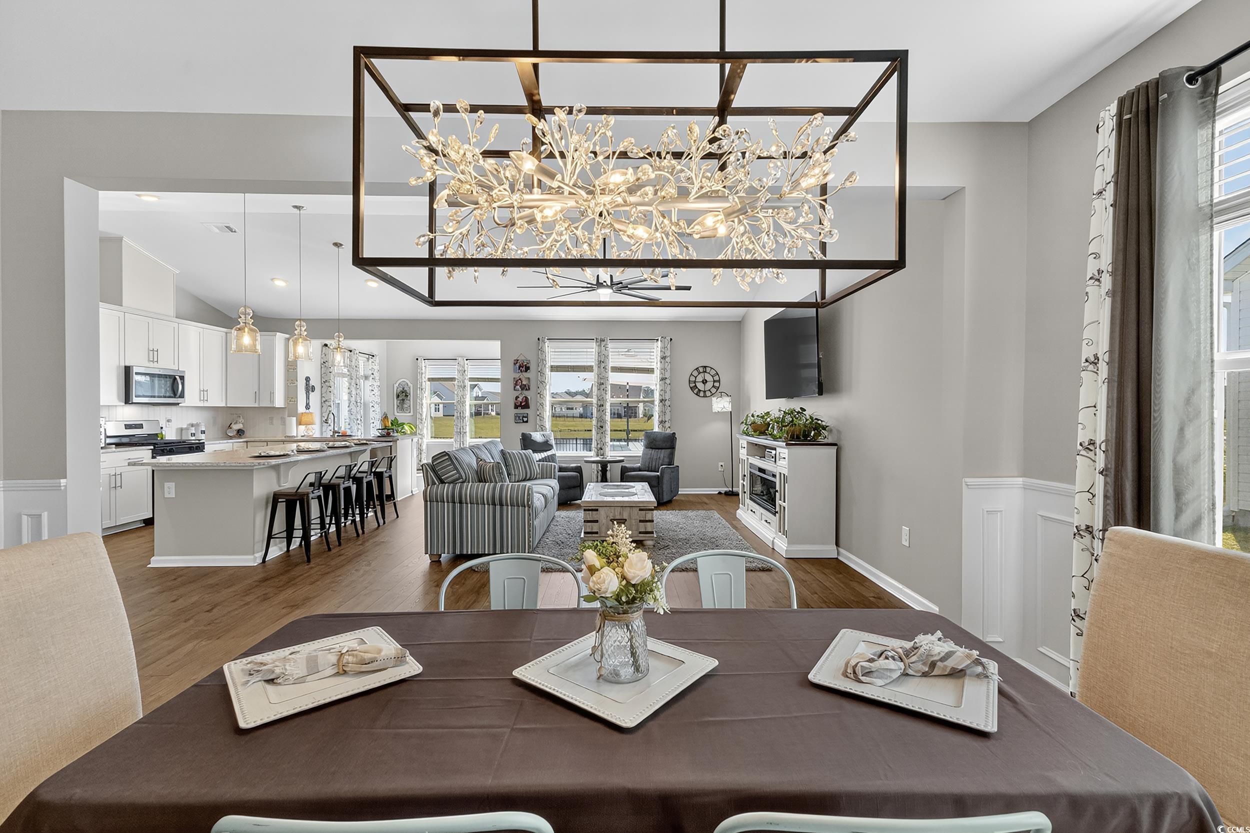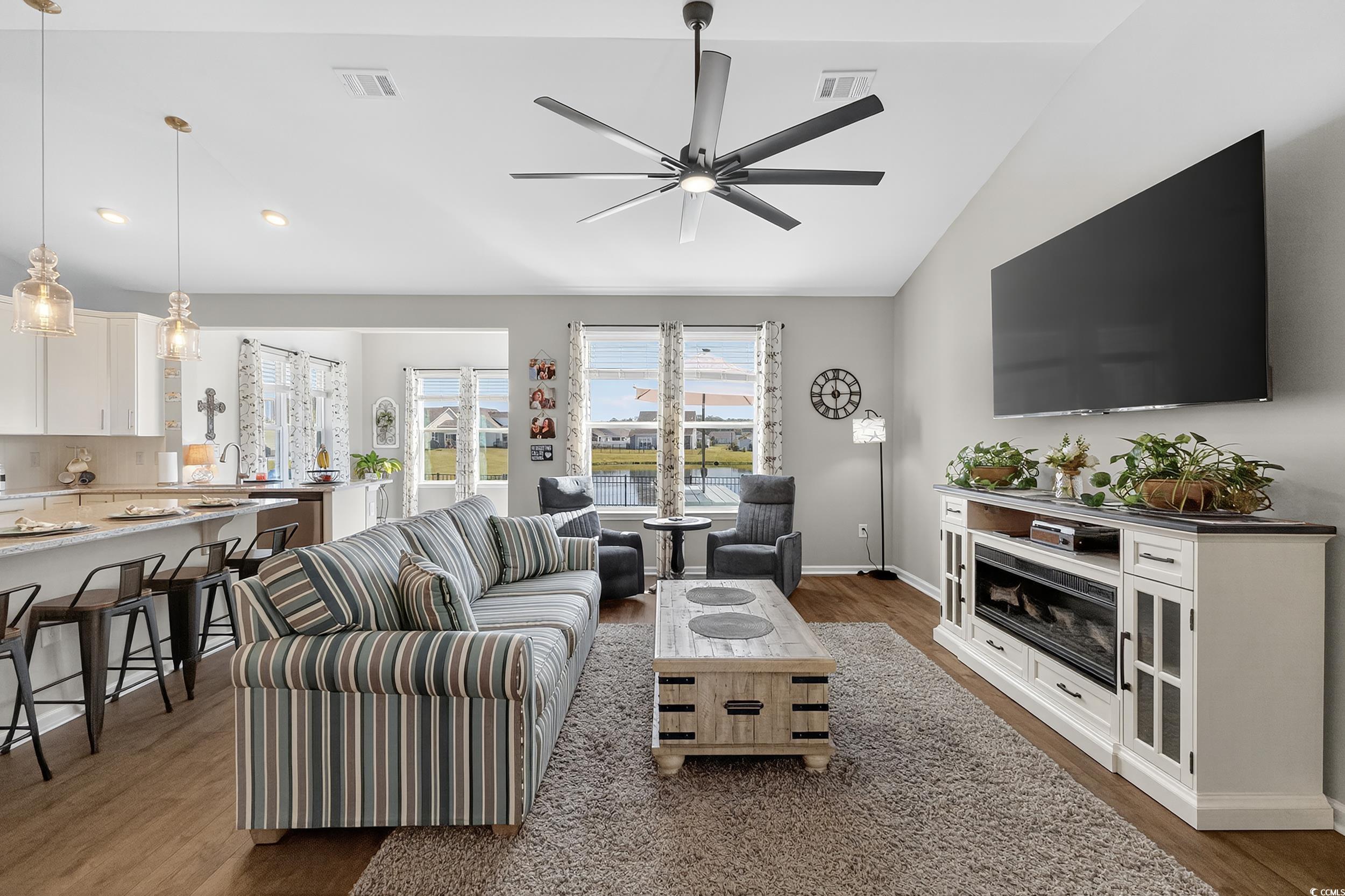 Welcome to this beautifully upgraded 3 bedroom, 2 bath single-family home in the desirable Bella Vita community of Myrtle Beach. Only 17 months young and the best part is...CUSTOMIZATIONS and UPGRADES are already completed for you! Featuring 9-foot ceilings throughout, this home offers an open-concept kitchen and great room with quartz countertops, level two cabinetry, and upgraded lighting. The 3rd bedroom is perfect as a guest room or office. Enjoy luxury details like wainscoting in the foyer and dining space, Carrera tile in the baths and laundry, and a fully fenced yard overlooking the pond with an extended patio and beautifully added palm trees. The Carolina room provides additional light-filled living space. The master suite boasts a bay window, double showerheads, and a spacious layout. Practical upgrades include no carpet, ceiling fans in every room, added laundry cabinetry, a tankless hot water heater, garage plumbing for a utility sink, and 220 amp service for an electric vehicle. Gas hookup is available for a living room fireplace. Community amenities include clubhouse with catering kitchen, large pool, playground and fitness center! Bella Vita is just 5.5 miles from the beach with quick access to all major highways, shopping, dining, and entertainment. A perfect blend of comfort, style, and convenience!