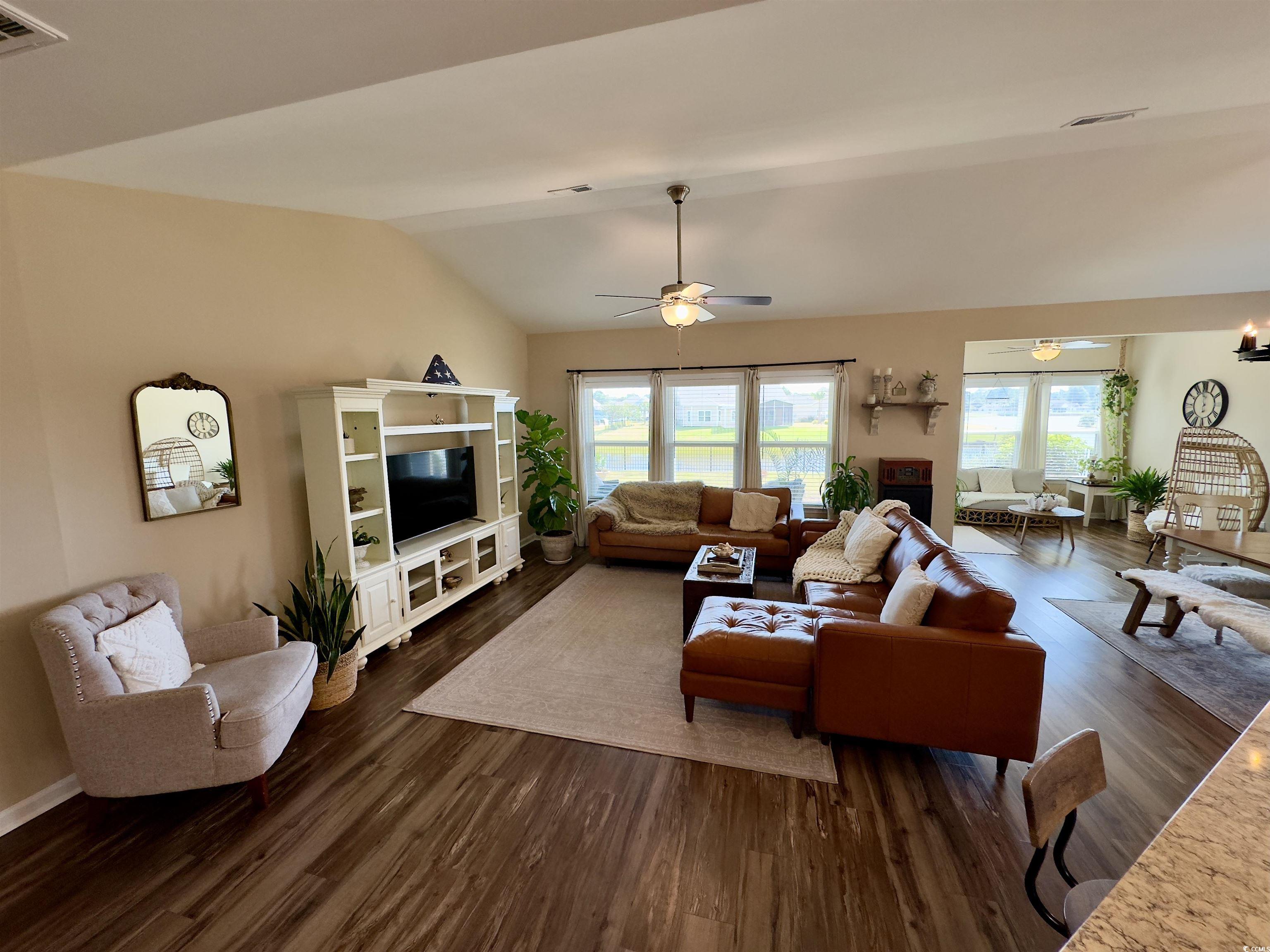 OPEN HOUSE IS CANCELLED - Discover the perfect blend of location, luxury, and lifestyle in Belle Mer, one of Surfside Beachs premier new home communities built on the former Wicked Stick Golf Course. This nearly new, single-level home showcases a modern open-concept design ideal for relaxed coastal living just 2.7 miles from the Atlantic Ocean and minutes from Market Common, Myrtle Beach State Park, and Coastal Grand Mall. At the heart of the home, the chefs kitchen features an oversized island, walk-in pantry, natural-gas range, stainless-steel appliances, and designer lighting perfect for entertaining or everyday comfort. The spacious great room and sitting area open to peaceful lake views, creating a seamless indoor-outdoor flow. The private owners suite overlooks the lake and includes a large walk-in closet, dual vanities, and a spa-inspired walk-in shower with a private water closet. Enjoy outdoor living on the covered patio and fenced backyard, ideal for dining, relaxing, or gardening. Additional highlights include energy-efficient construction, natural-gas utilities, whole-home surge protection, professional landscaping, and hurricane shutters for added peace of mind. Residents of Belle Mer enjoy resort-style amenities including a community clubhouse, pool, and fitness center all within easy reach of golf, restaurants, and entertainment. Living in Surfside Beach means enjoying a relaxed coastal lifestyle just minutes from everything the Grand Strand has to offer. Surfside combines small-town charm with easy access to shopping, dining, and entertainment. Residents love the beautiful beaches, fishing pier, and local parks all within a short drive to Market Common, Murrells Inlet, and Myrtle Beach. With its convenient location, strong community spirit, and great year-round climate, Surfside Beach is ideal for those seeking comfort, convenience, and true coastal living. Experience Coastal Living at Its Finest in Belle Mer, Surfside Beach, SC
