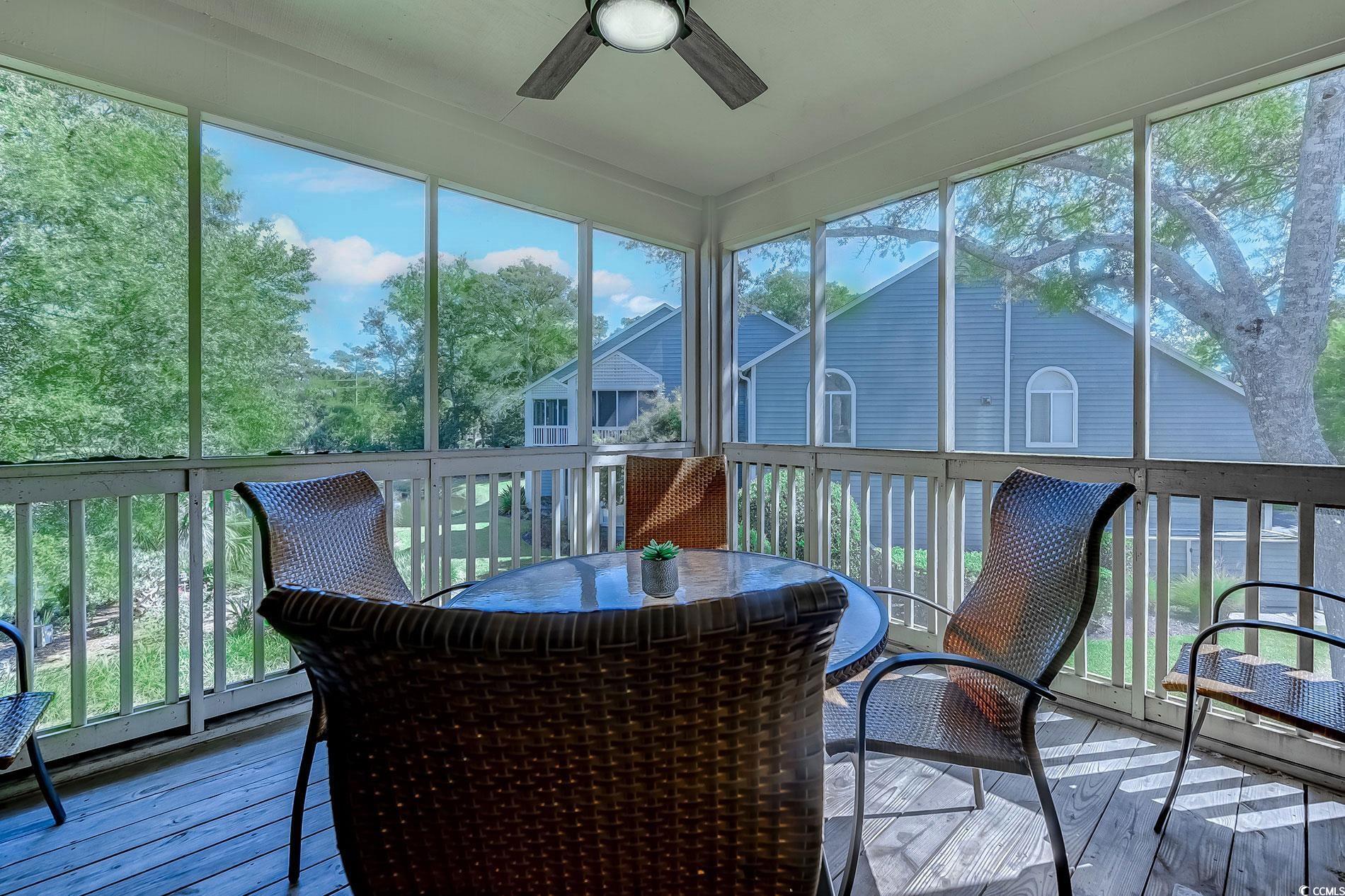 Rare three-bedroom, three-bath villa in Canterbury Court at Kingston Plantation with vaulted ceilings, a screened porch, and a private garage. This spacious residence combines an open layout with abundant natural light, making it ideal for both everyday living and entertaining. The living room flows seamlessly into the dining area and kitchen, creating a warm and inviting atmosphere, while the screened porch provides the perfect retreat for morning coffee or evening relaxation surrounded by trees. The kitchen offers ample cabinetry, solid counters, and a functional design with direct sightlines into the living and dining areas. The primary suite features vaulted ceiling details, an ensuite bath, and generous closet space. Two additional bedrooms, each with convenient bath access, provide comfort and privacy for family or guests. With three full baths, this villa delivers flexibility rarely found in Kingston Plantation. One of the most unique advantages of this property is the private garage, a feature seldom available in Kingston. It is the perfect spot to store a golf cart, bikes, or beach gear and offers quick access to the resorts entrance and exit. The golf cart is negotiable with the purchase, adding even more value for those seeking the full Kingston lifestyle. Set on 145 oceanfront acres, Kingston Plantation offers 24-hour gated security, multiple pools, walking trails, and lakes, along with an optional sports and health club featuring tennis, pickleball, fitness facilities, and a spa. On-site dining, seasonal activities, and direct access to the beach complete the resort experience. Located just minutes from Barefoot Landing, Tanger Outlets, Restaurant Row, and Hwy 22, this villa combines comfort and convenience in an unbeatable setting. This Canterbury villa is an exceptional opportunity whether you are seeking a primary residence, vacation retreat, or investment property. With its rare garage, spacious layout, and desirable location, it represents one of the most unique offerings in Kingston Plantation. Schedule your private showing today and experience coastal living at its best.