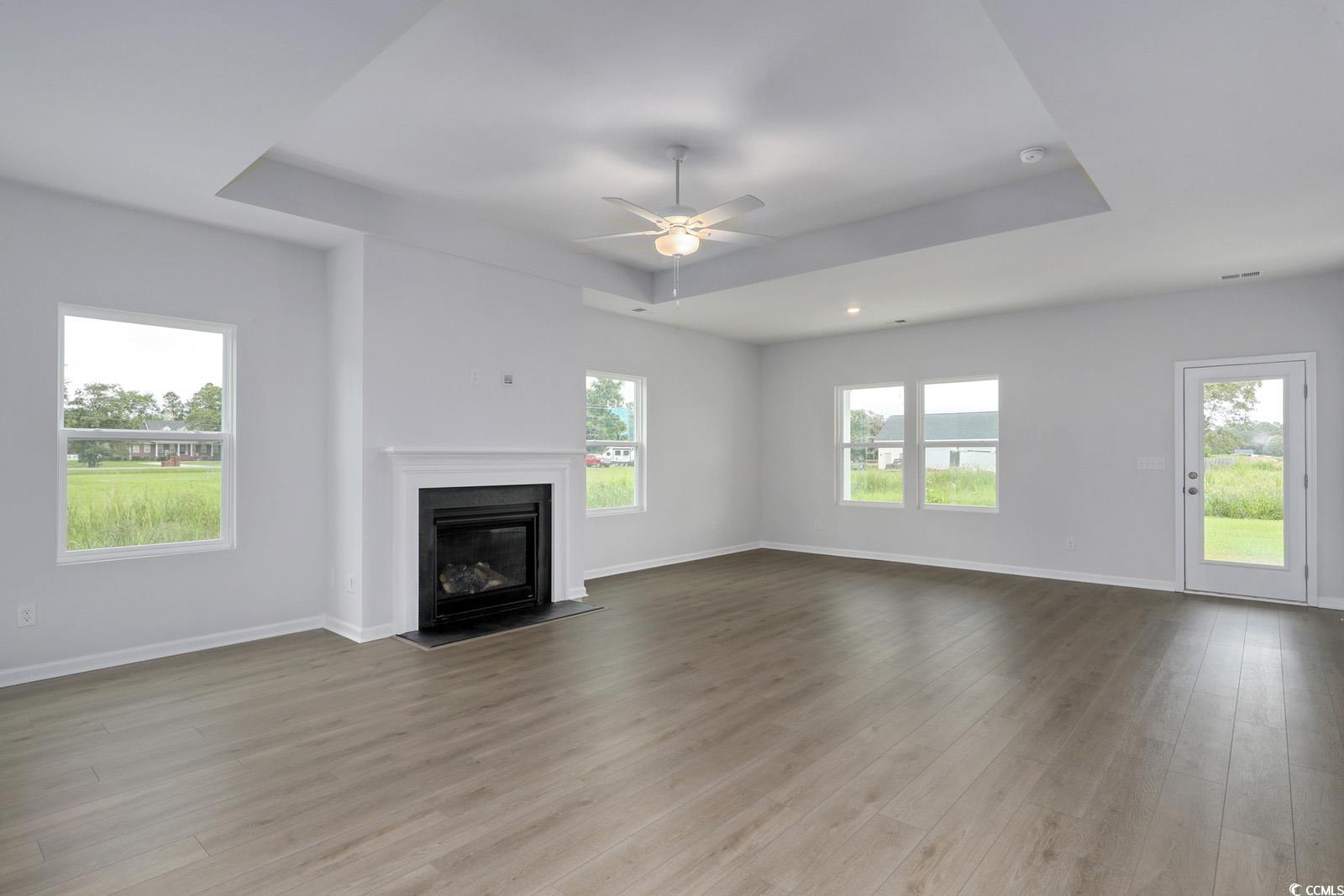 FamilyRoom: TrayCeilings, CeilingFans, Fireplace