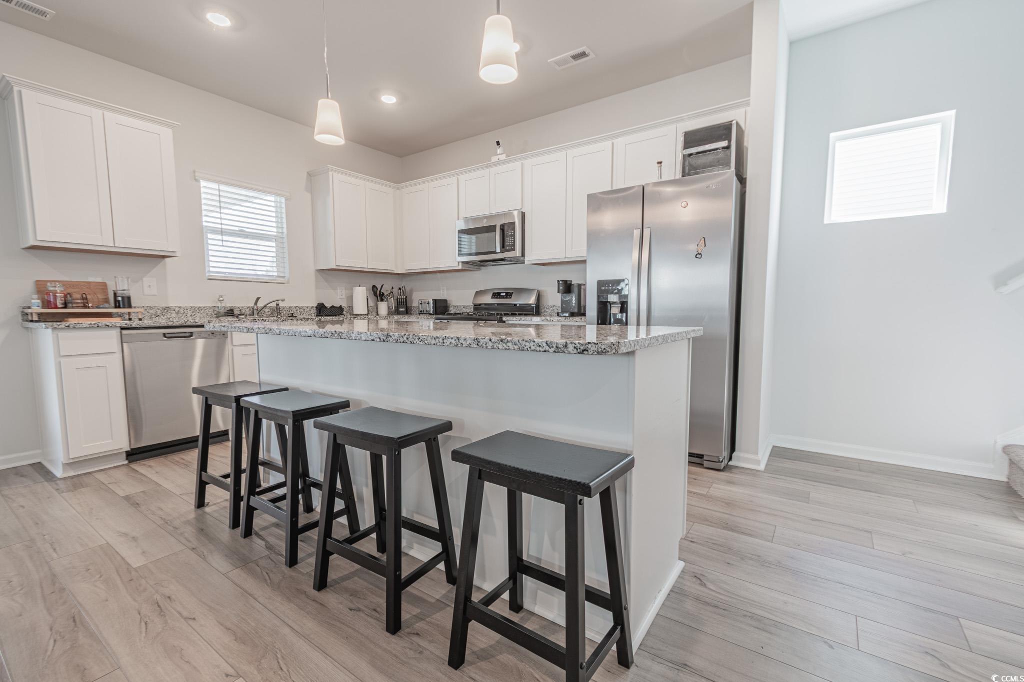 Welcome to your new home in the highly sought-after Sessions Point community! This spacious three-bedroom, two-and-a-half-bath home with a two-car garage offers the perfect blend of comfort, style, and convenience. From the inviting covered front porch to the serene pond and wetland views in the backyard, this property was designed for both relaxation and enjoyment. Inside, youll find a bright and open floor plan featuring LVP flooring throughout the main level and primary suite, tile in the bathrooms and laundry room, and plush carpet in the loft and secondary bedrooms. The gourmet kitchen is a showstopper with stainless steel appliances, granite countertops, a gas stove, pantry, work island, and breakfast bar. It flows seamlessly into the dining area and spacious living room, complete with a cozy fireplace and ceiling fanideal for entertaining or quiet nights in. A versatile flex room on the main floor provides the perfect space for a home office, study, or den. Upstairs, the primary suite offers a peaceful retreat with a tray ceiling, walk-in closet, and spa-like bath featuring dual sinks, a walk-in shower, and private water closet. The loft provides additional living space, while two guest bedrooms with ceiling fans share a full hall bath with a vanity and tub/shower combo. Step outside to the fenced backyard, where a large covered and screened porchequipped with a natural gas stub for your grillcreates the perfect setting for outdoor dining and gatherings. This home is being sold fully furnished, including furniture, dcor, linens, kitchenware, electronics, patio furniture, and grills, so you can move right in and start enjoying the lifestyle you deserve. As a resident of Sessions Point, youll also have access to the community pool and enjoy a short drive to all that Myrtle Beach has to offer. Seller say community stays high and dry during storms. Square footage is approximate and should be verified by buyers.