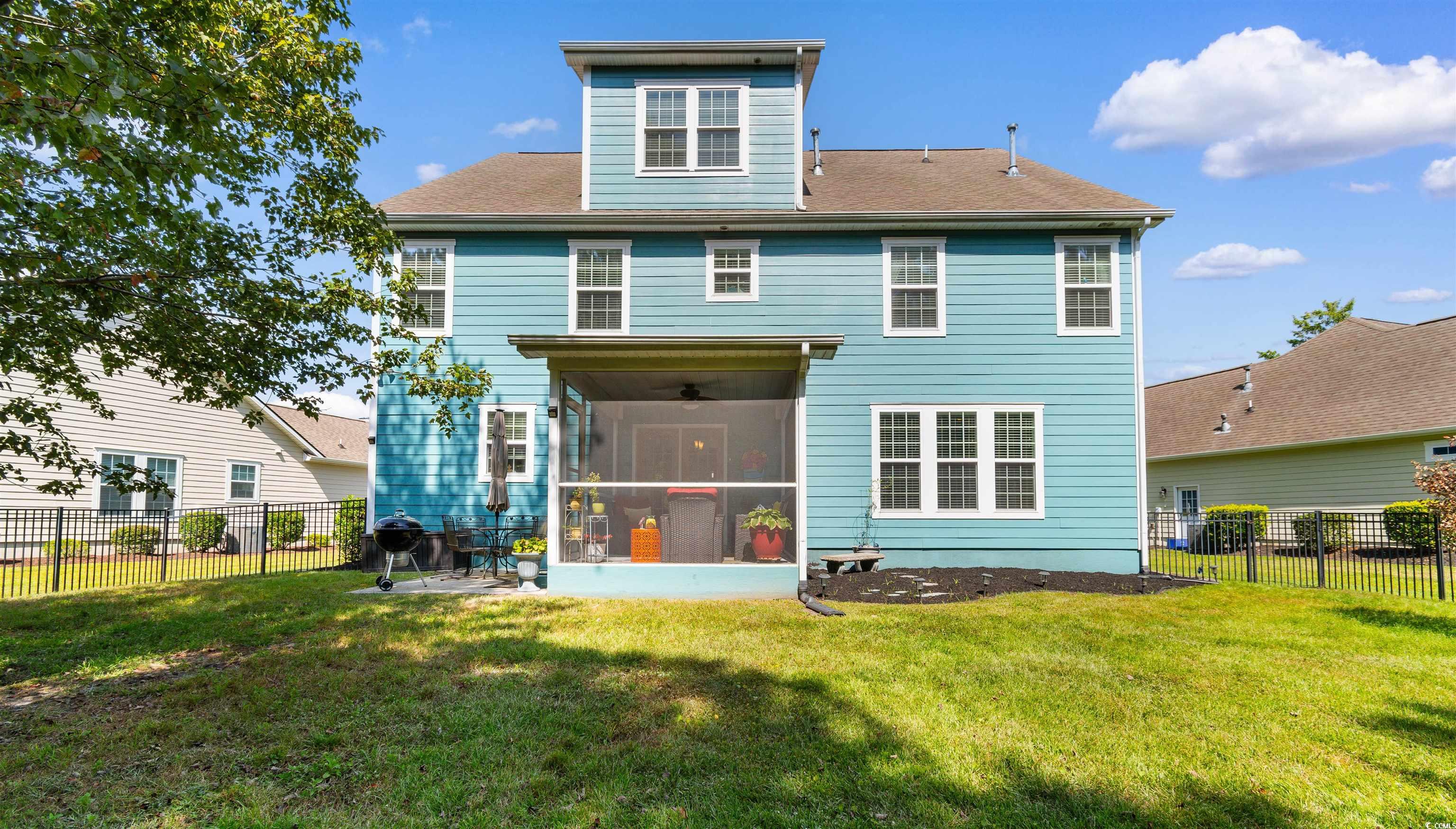 Welcome to 60 Summerlight Dr.! This stunning 3 story, 5-bedroom, 4-bathroom home is nestled within the Palm Bay community of The Bays at Prince Creek. From its charming exterior to its warm & inviting interior, this home offers an eclectic blend of elegance, space & comfort. Step inside & you will be greeted with a vibrant & bright living room which is attributed to a soaring, two-story ceiling. You'll appreciate the modern updates such as the Brazilian cherry hardwood floors throughout the main level & second floor - a chef's dream of a fully renovated kitchen comes to life with the features of solid wood, soft-close cabinets (crafted locally by a renowned artizan) granite countertops - upgraded stainless steel appliances, crown molding & so much more. There are multiple living areas throughout which make this home perfect for entertaining or simply relaxing. The formal dining room provides an exquisite & stylish setting for holiday get-togethers, dinner parties, or family gatherings. Invite guests to stay in a quiet setting on the main floor with easy access to a full bathroom just outside of their door. Go out onto the screened porch for a tranquil time to unwind & relax with a cup of coffee or tea. The fully fenced backyard ensures that either smaller children or pets remain secure while they play. Come inside & venture upstairs to the second floor to find four spacious bedrooms; two of which share a Jack & Jill bathroom. The master suite offers a spacious retreat with an en suite bathroom boasting dual vanities, a soaking tub & a separate walk-in shower. On the third floor, you will find an impressively large & open space; this area can be sectioned off in a vast array of ways. It is perfect for watching any style game, completing business projects, working out, making music & so on. With its own full bathroom, the possibilities are practically limitless. The HVAC handlers are easily accessed on this floor. There is also a convenient attic access. The floor plan's objective was to maximize space & it executes that flawlessly. This home truly encompasses all facets of finesse & functionality. Located just 5 minutes from the beach, and less than 5 miles from the famous Murrells Inlet Marshwalk, youll enjoy easy access to top-rated golf courses, dining, and coastal living. With easy access to the traffic light from TPC Blvd onto 707, or quick access to the rear gate onto Prince Creek Pkwy, you can be safely on the way to any destination. Residents of The Bays at Prince Creek enjoy unmatched amenities including a gated entrance with staffed security, a community clubhouse with gym, two resort-style pools, pickleball and volleyball courts, a playground, and more. Dont miss your opportunity to own this incredible home in one of the Grand Strands most desirable communitiesschedule your private showing today!