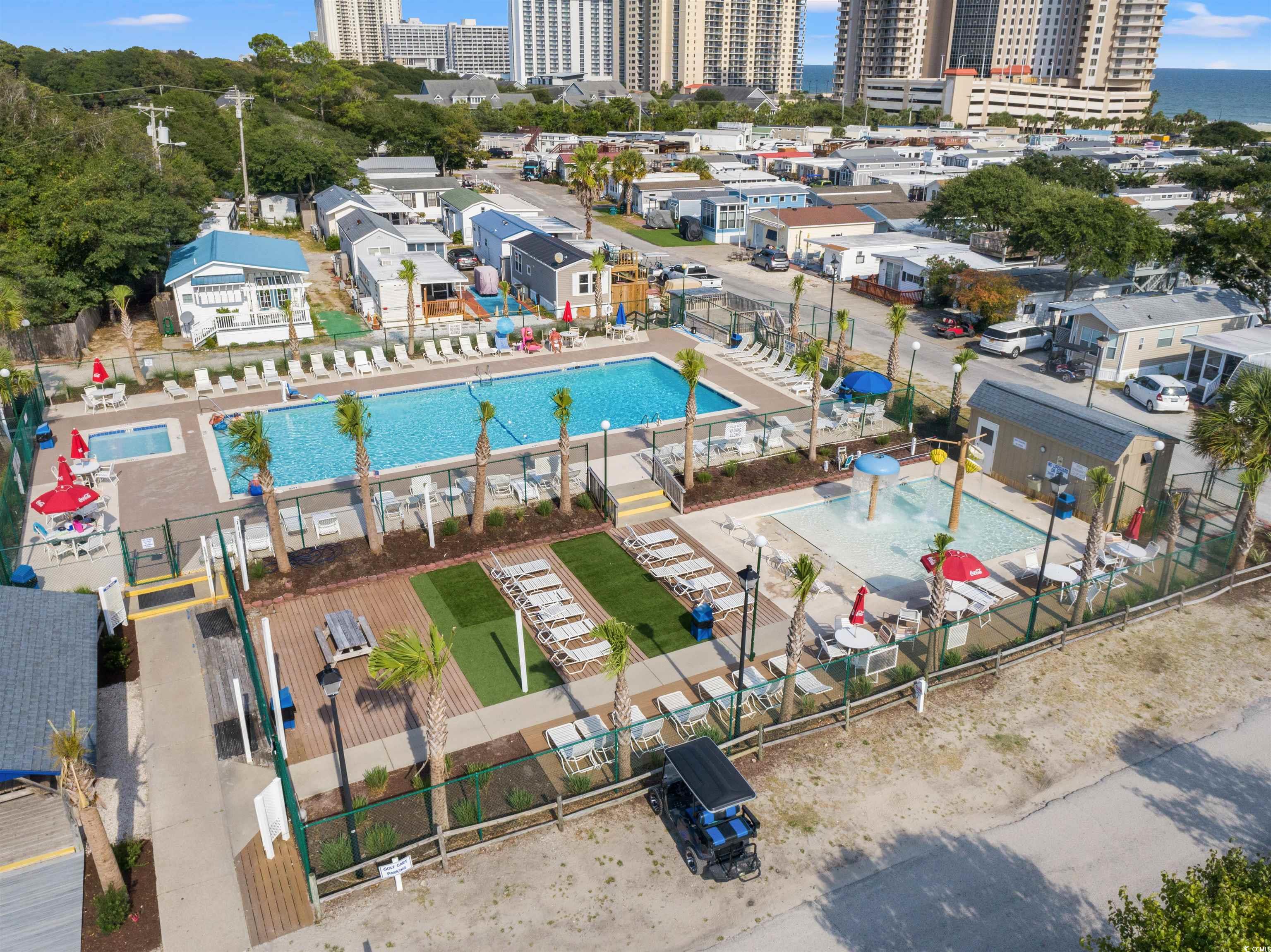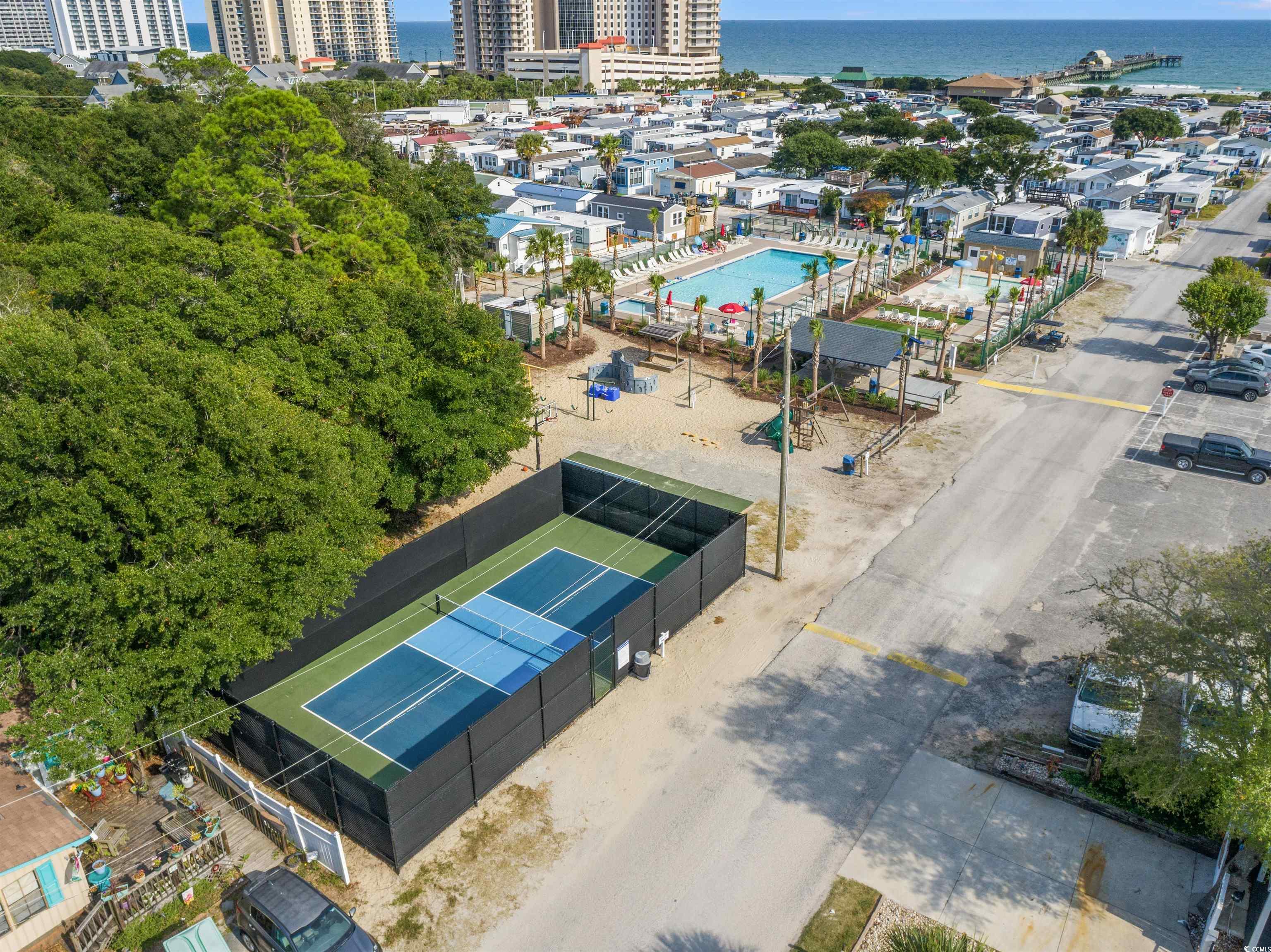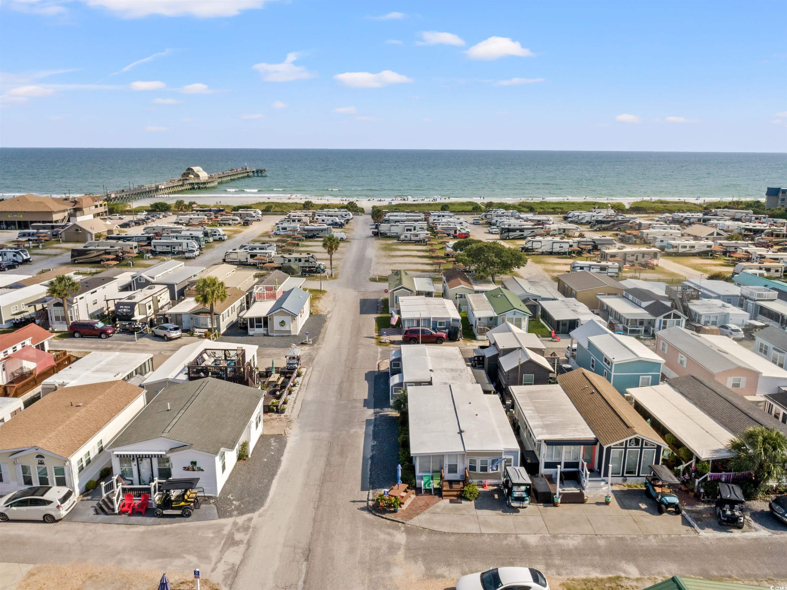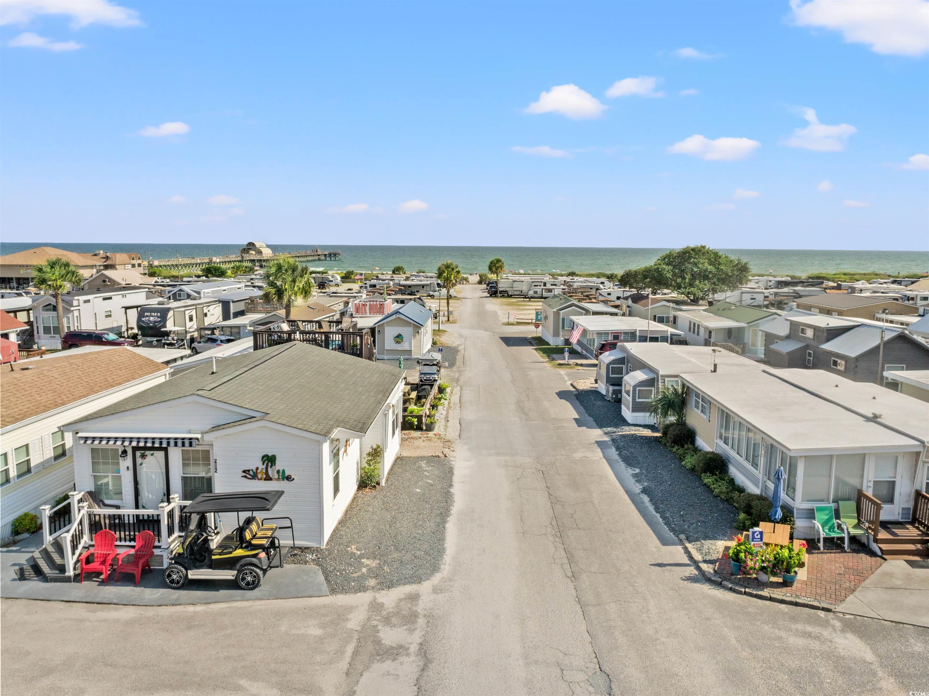 Wake up to ocean views and salty breezes! This coastal gem in Apache Campground offers the perfect mix of beachy charm, prime location, and everyday comfort. With 2 bedrooms and 1 bath, this home is filled with natural light and coastal vibes throughout. Youll love the LVP flooring, quartz countertops, spacious kitchen with a center island and flat-top range, stainless steel appliances, and beautiful backsplash. All centered around an open kitchen and dining area complete with an electric fireplace and built-in stereo system. The primary bedroom is spacious and inviting, with a beautiful bathroom featuring a walk-in shower. The secondary bedroom includes built in storage and closet space. Plantation shutters add an extra touch of charm, and the large front porch is ideal for relaxing after a day in the sun. Location is everything and this home has it all. Enjoy ocean views right from your window along with the convenience of walking to beach access, the pier, fishing, local restaurant, a convenience store and much more. You'll also have access to amazing amenities an outdoor pool, game room, pickleball and basketball courts, playground, and fun events for the whole family. Whether youre searching for a primary residence, a secondary beach escape, or an investment property, this one checks all the boxes. Dont miss your chance to own a piece of the beach life!
