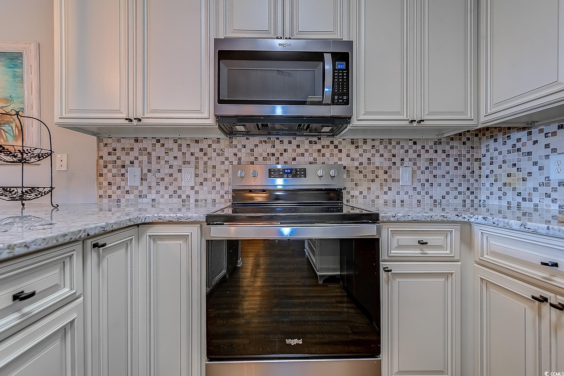 This beautiful three bedroom condo has been completely redone. Updates include: all new Whirlpool appliances including range, microwave side by side refrigerator, dishwasher in kitchen. New GE stackable washer/dryer, new granite countertops with backsplash renovation, two levels of cabinets made into one for more workspace, removed existing cabinets in kitchen and replaced with beautiful cabinets, removed cabinets under countertops facing living room and added new cabinets for extra storage, removed existing faucets and lighting in kitchen and replaced, custom pantry cabinet made in kitchen for added storage, bathroom renovations include new cabinets, granite countertops, faucets, lighting, mirrors. In master bath tub was removed and new shower with bench installed with glass doors, new cabinets, fixtures, lighting in guest bathroom, fresh interior paint in entire unit, new custom tailored window treatments for living room and master bedroom with blackout lining, new plantation shutters installed in other two bedrooms, new ceiling fan in living room, All three closets completely redone by Closets By Design for added storage and easy access. This unit is located on 4th floor with elevator building. Large screened in porch overlooking pool. This wonderful community has six pools as well as tennis and pickleball courts, fitness center, recreational center with pool table and table tennis. Make this your permanent residence, second home or investment property. It is located close to the ocean and downtown. Owner is a SC Realtor.