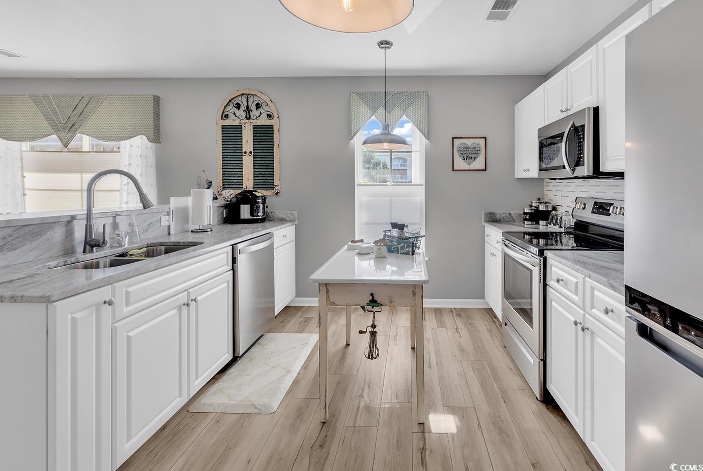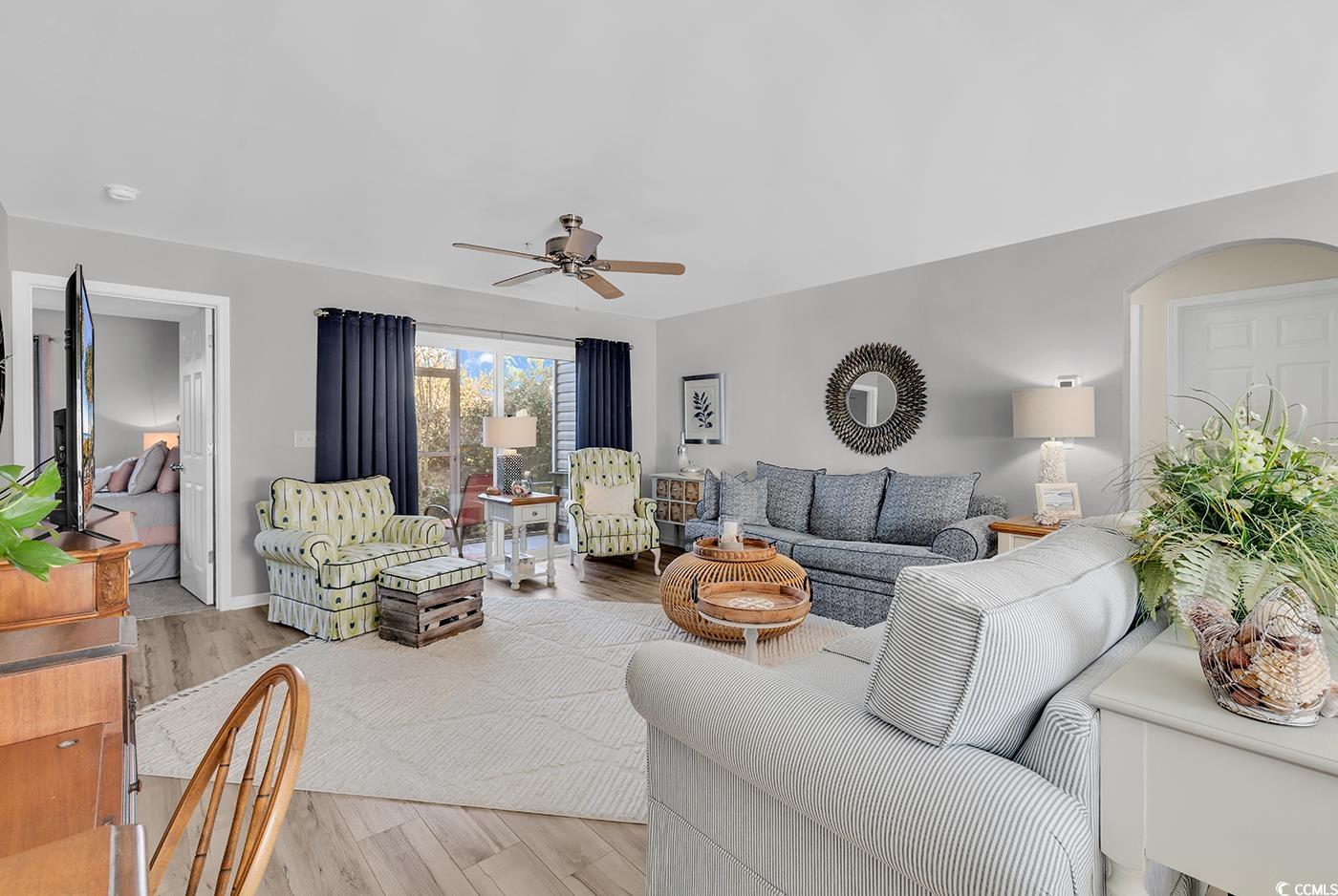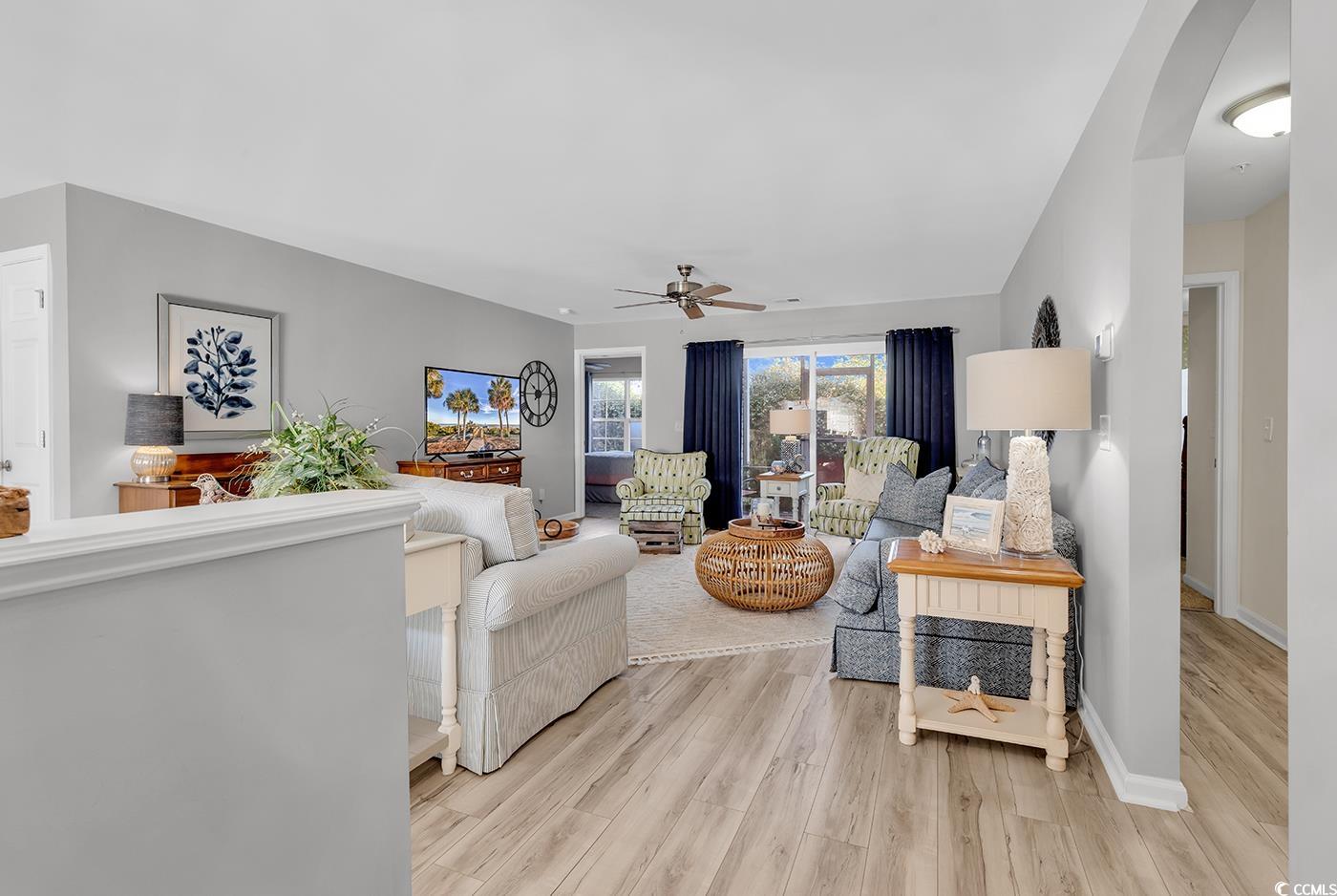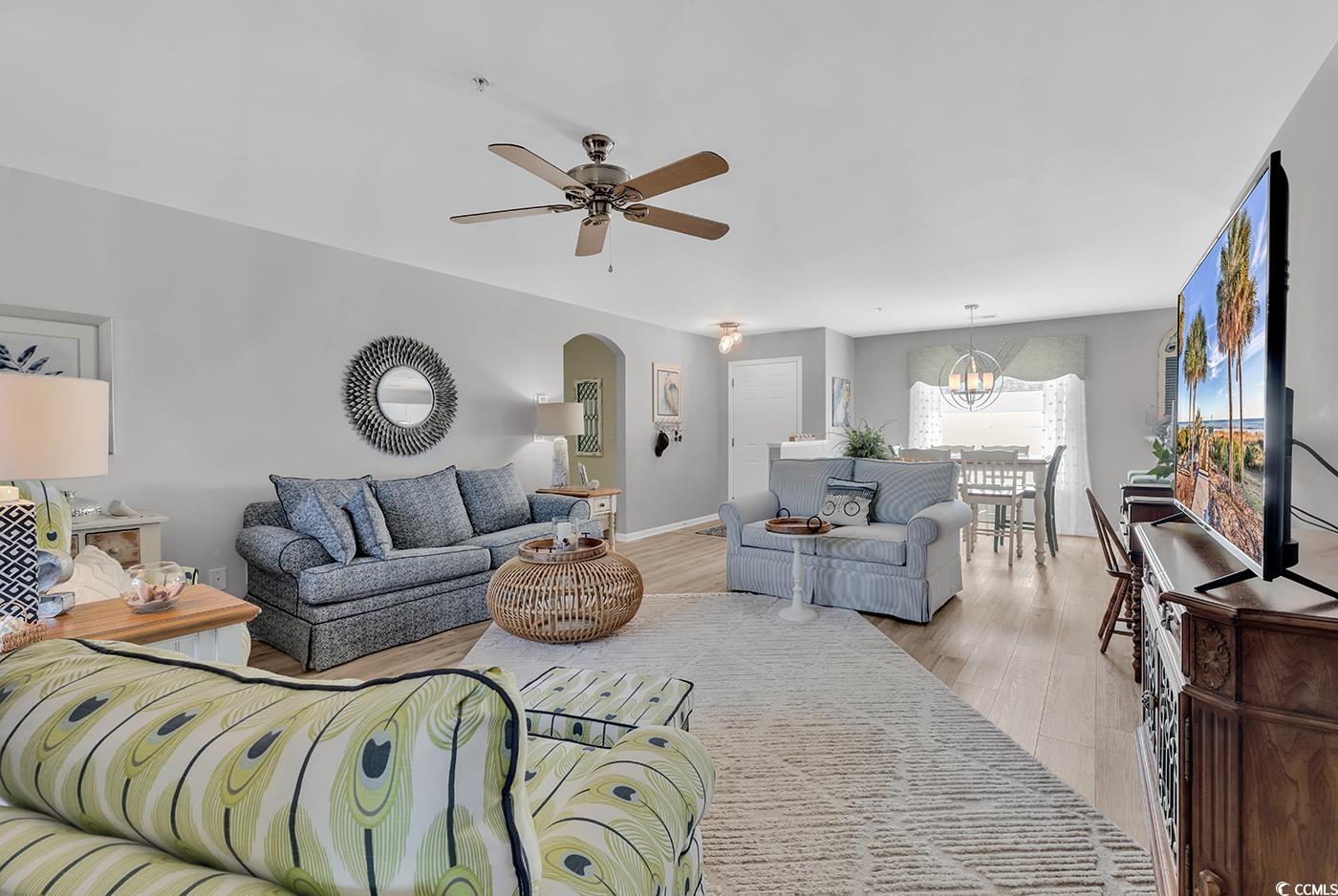 Carefully curated, impeccably decorated, fully furnished, turnkey, are just a few ways to describe this PERFECT condo, located just minutes to the beach. Almost everything included, all you will need is your suitcase! This tastefully decorated three bedroom, two bathroom condo comes fully furnished and ready to go, just bring a suitcase. From the window treatments, to the quartz countertops, no detail has gone unnoticed. The welcoming open floor plan greats guests with a spacious entryway, tastefully updated lighting and relaxing coastal dcor. The kitchen features a breakfast bar, stainless steel appliances, a tile back splash, plus an island perfect for preparing your favorite meals. The engaging living room is the perfect place to sit back and relax after a day on the beach. Open up the sliding door to the screened in private patio to enjoy the coastal breeze. The spacious primary suite features window coverings, his & hers walk in closets and an ensuite bathroom, featuring a linen closet and walk-in shower. The split bedroom floorplan has two additional guest bedrooms and an updated bathroom perfect for guests. The community also features a quaint community pool. This condo is located just minutes from Market Common, Sayebrook, and the beach! Its all about the location, location, location! Centrally located to restaurants, shopping, and all the attractions the Grand Strand has to offer. Dont miss out, schedule a showing today!