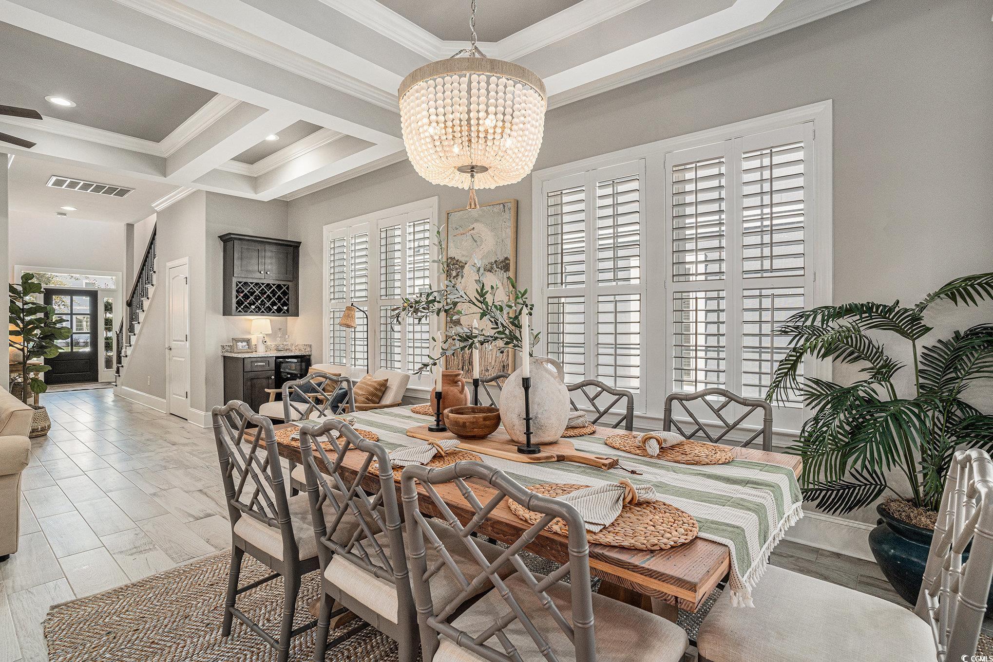 This is the home you have been waiting for!!! Beautiful Custom-Built home in Waterway Palms Plantation, this home was constructed in 2019 and has just about every custom feature imaginable! Starting with the wood look tile flooring in the entry, living and kitchen, and engineered hardwood flooring in the primary and guest bedrooms, the quality in materials is a step above today's industry standards of laminate and LVP. Custom Coffered ceilings features in the living and dining areas and a trey ceiling in the Primary suite carry this custom feel throughout the home. Matching granite counters in the kitchen and baths, custom Kitchen hood vent and premium stainless steel appliances finish it all off. Not only does the home have quality finishes but the layout will exceed your expectations for livability with the Primary Suite on the first floor yet still has plenty of room for an open concept kitchen, dining, and living room. Heading up stairs you are greeted with a large landing with seating and even a small granite counter workspace, this landing flows into two guest bedrooms sharing a jack and jill bath and then a completely separate guest bedroom with ensuite and access to the front balcony(this guest suite is currently used as an office) No expenses spared on exterior features, from the front porch entry to the large screened porch directly off the dining/living area out to a shared exterior seating area and an oversized rear entry garage. This home really does have it all. Out back is easy access to an enormous common area lawn and even walking and biking trails, Not to mention Waterway Palms Plantation's world class amenities. This incredible facility includes 2 level clubhouse, oversized swimming pool, tennis/pickleball courts, gazebos, verandas, a playground, a workout facility, common gathering areas, a common prep kitchen, boat launch on the ICW including day docks and boat storage. This home checks a lot of boxes and the neighborhood checks even more! All of this while being just a short drive to all area beaches and all the shopping and dining that Myrtle Beach has to offer. Do not delay, a home of this caliber will not last long!!!