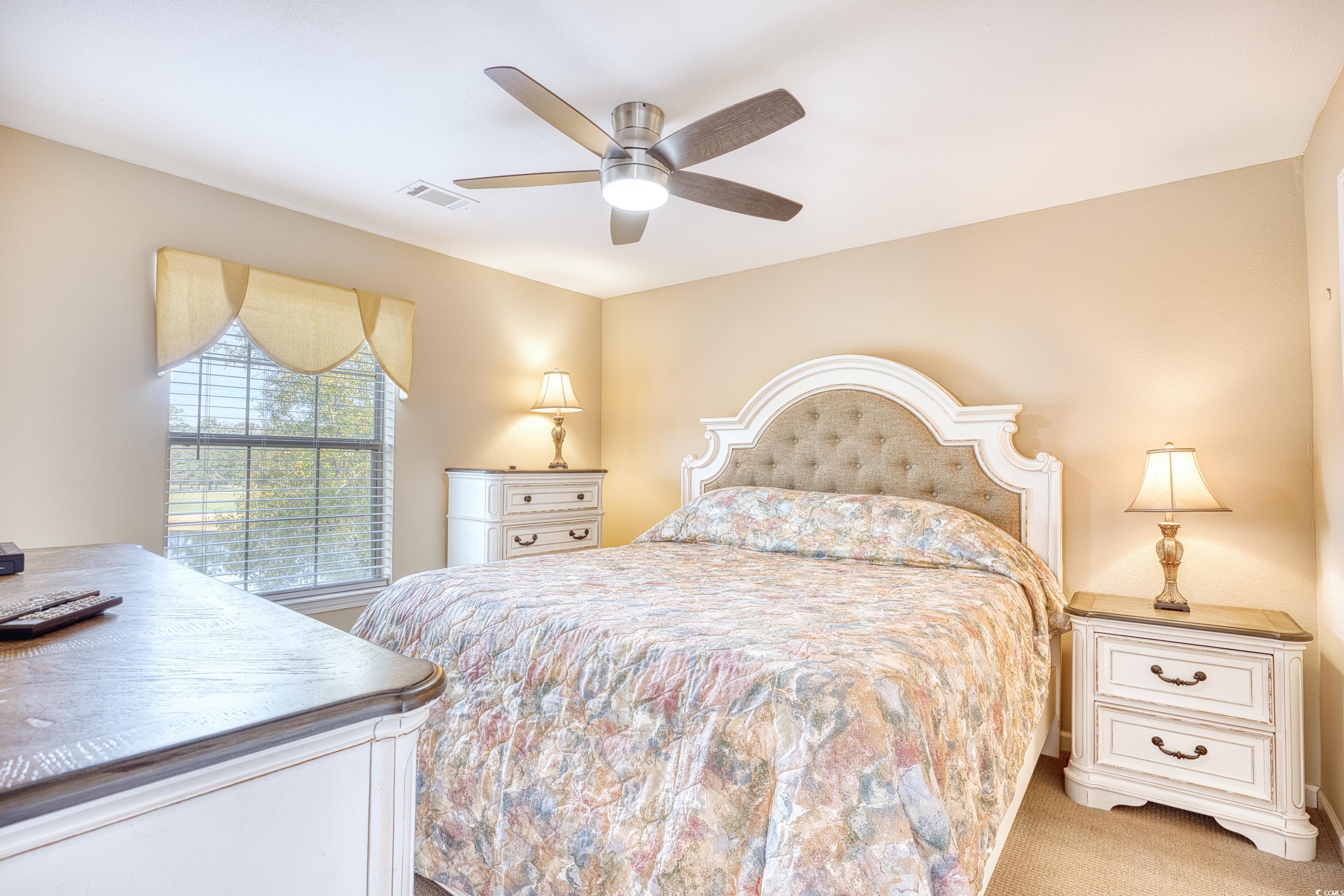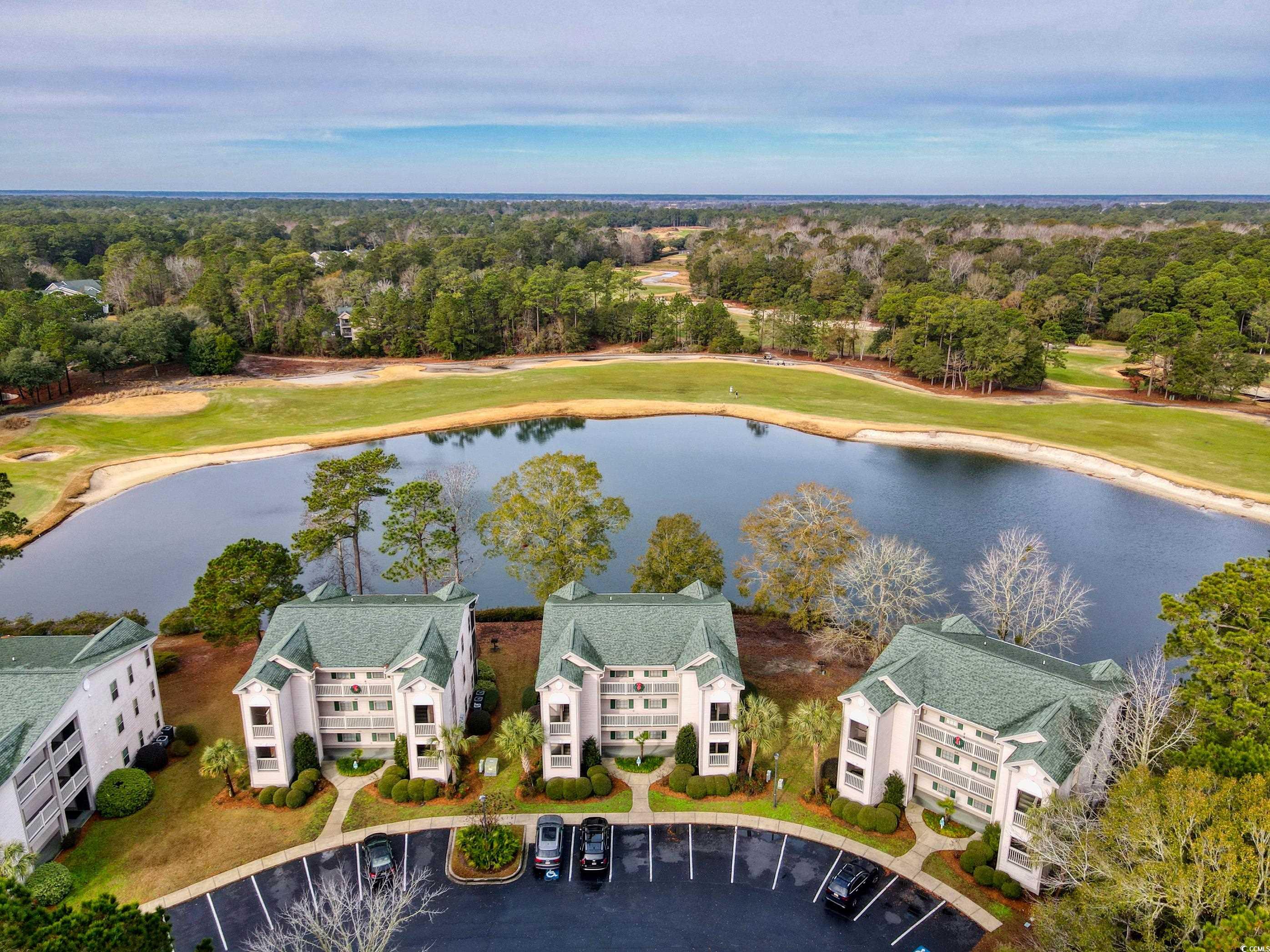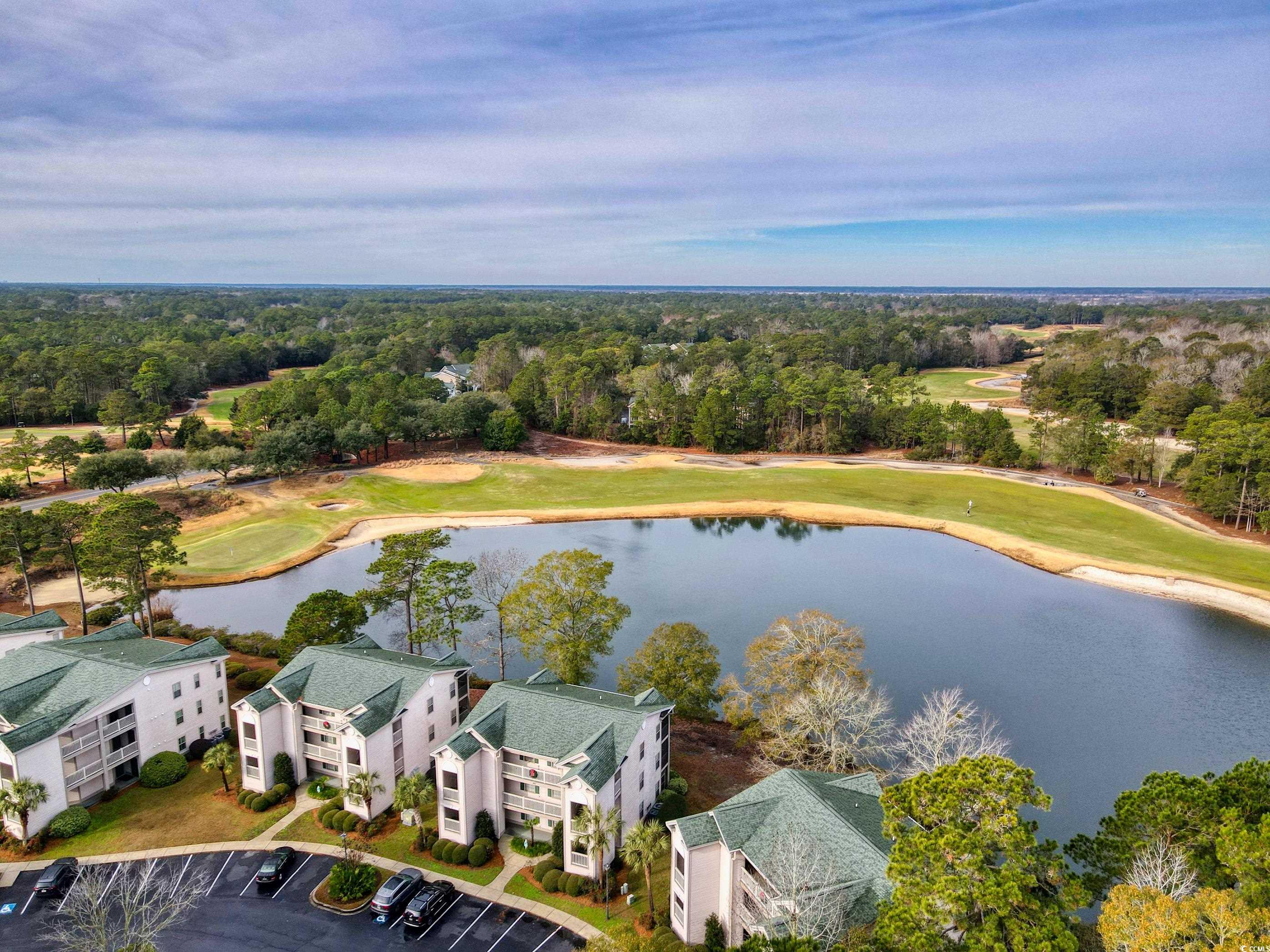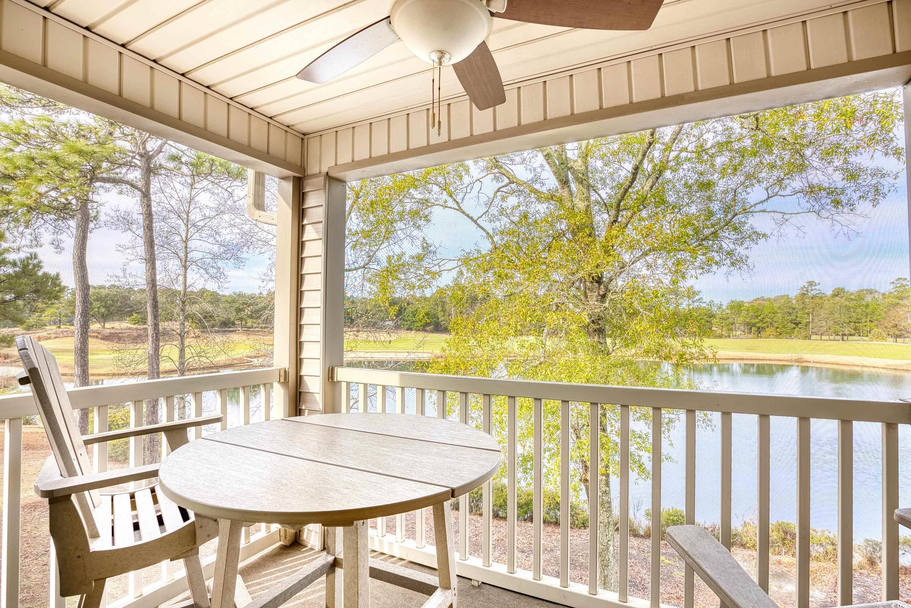 WOW! What a view! This 3rd floor True Blue II end condo offers privacy and a direct view of the beautiful golf course and large lake. Newly painted, this condo has an updated kitchen with newer appliances, quartz countertops, w/waterfall, pantry, touch lights and LED can lights. The kitchen leads into an open dining area and family room with newer carpeting, custom window treatments, vaulted ceiling and sliding doors to the screened porch with the great view. There are 2 bedroom including a master with en suite and slider to the screened porch. There is additional storage in the locked storage shed with a tiled floor located outside the front door. This condo is rented for 5 months, starting on December 15. New owner will have a tenant in place. This home is in True Blue II which is a small association within True Blue with its own pool which is located across the street from this condo. Don't miss this opportunity to live on one of the top 100 rated public courses in the country. The condo is being sold fully furnished, just bring your suitcase and start enjoying!