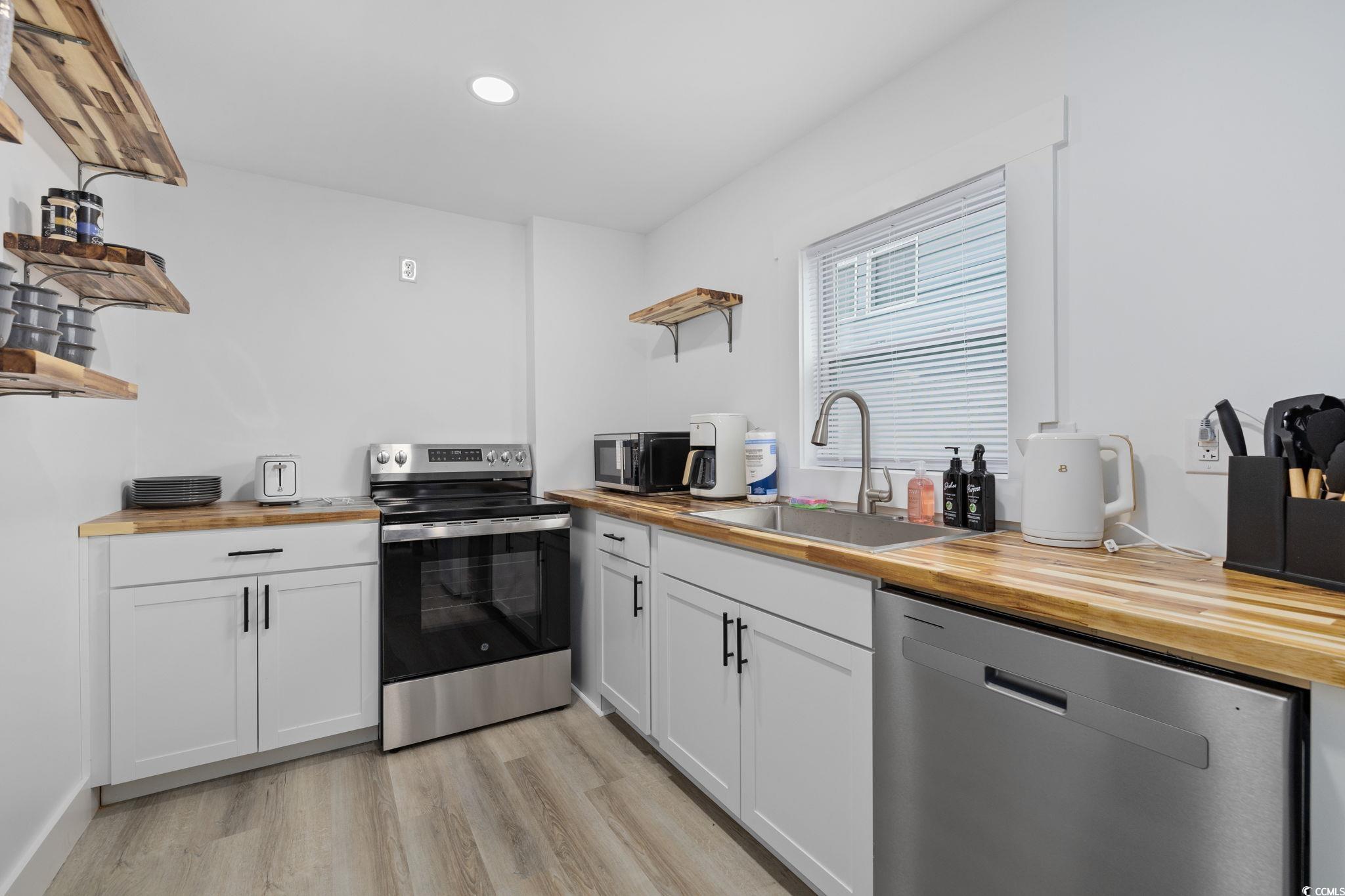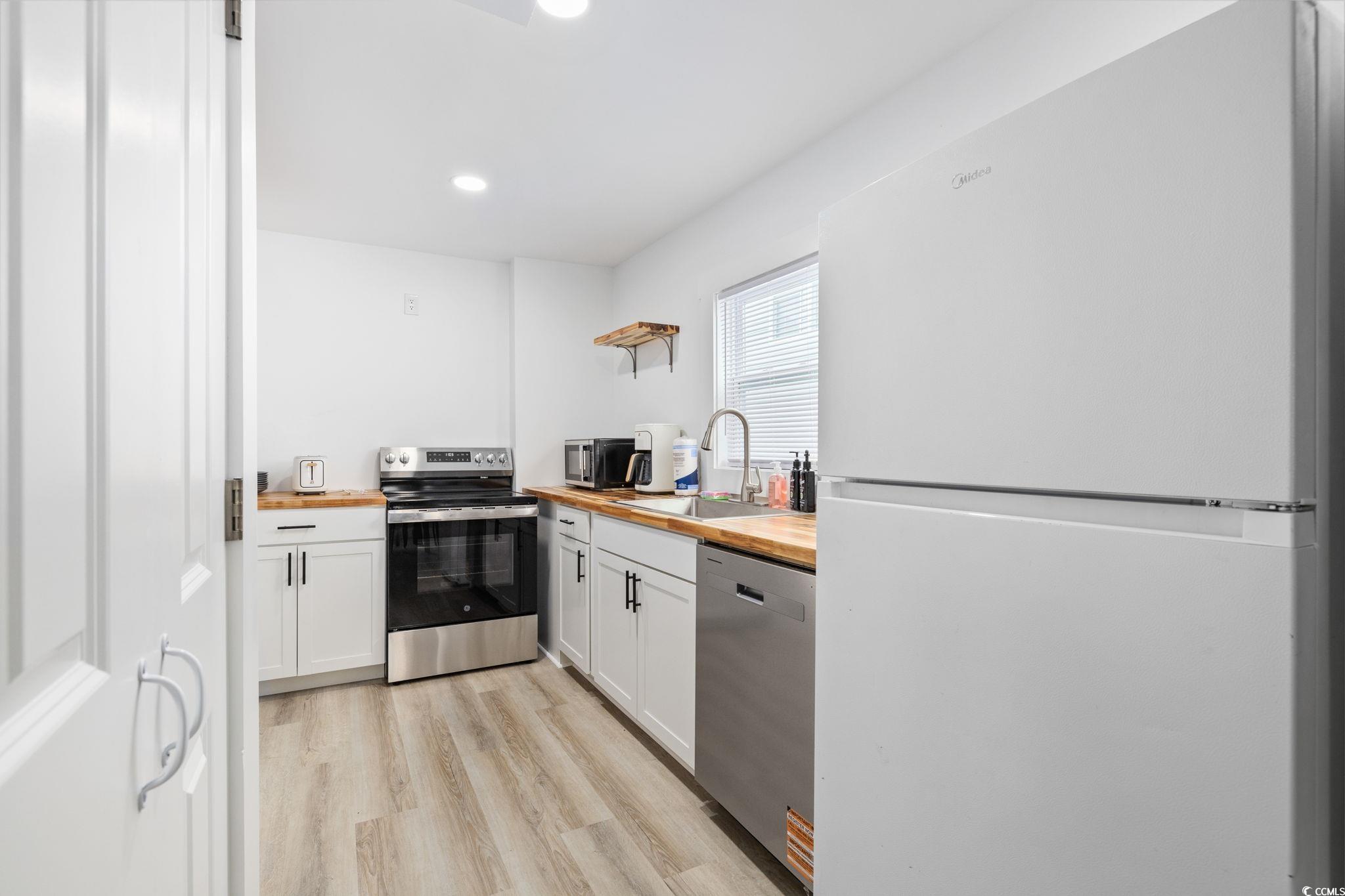 This duplex offers the perfect beachside getaway, just a short walk from the beautiful Cherry Grove Beach. Located in a prime spot, this property features two spacious units which have been fully renovated. Upstairs is 3 bedrooms 2 bathrooms and downstairs is 2 bedrooms 2 bathrooms both including full kitchens. Some of the highlight updates are brand new water heaters, first floor has been completed renovated down to the studs. Brand new floors, sheetrock, paint, bathrooms and kitchen. Upstairs has a brand new 10x20 deck, new kitchen, bathrooms, restained knotty pine walls, ship lap in kitchen and bathrooms, new windows. Roof is 2022. This property is completely turn key just bring your furniture and let it generate you revenue. Back yard big enough to complete your summertime oasis with capability of adding pool and more!