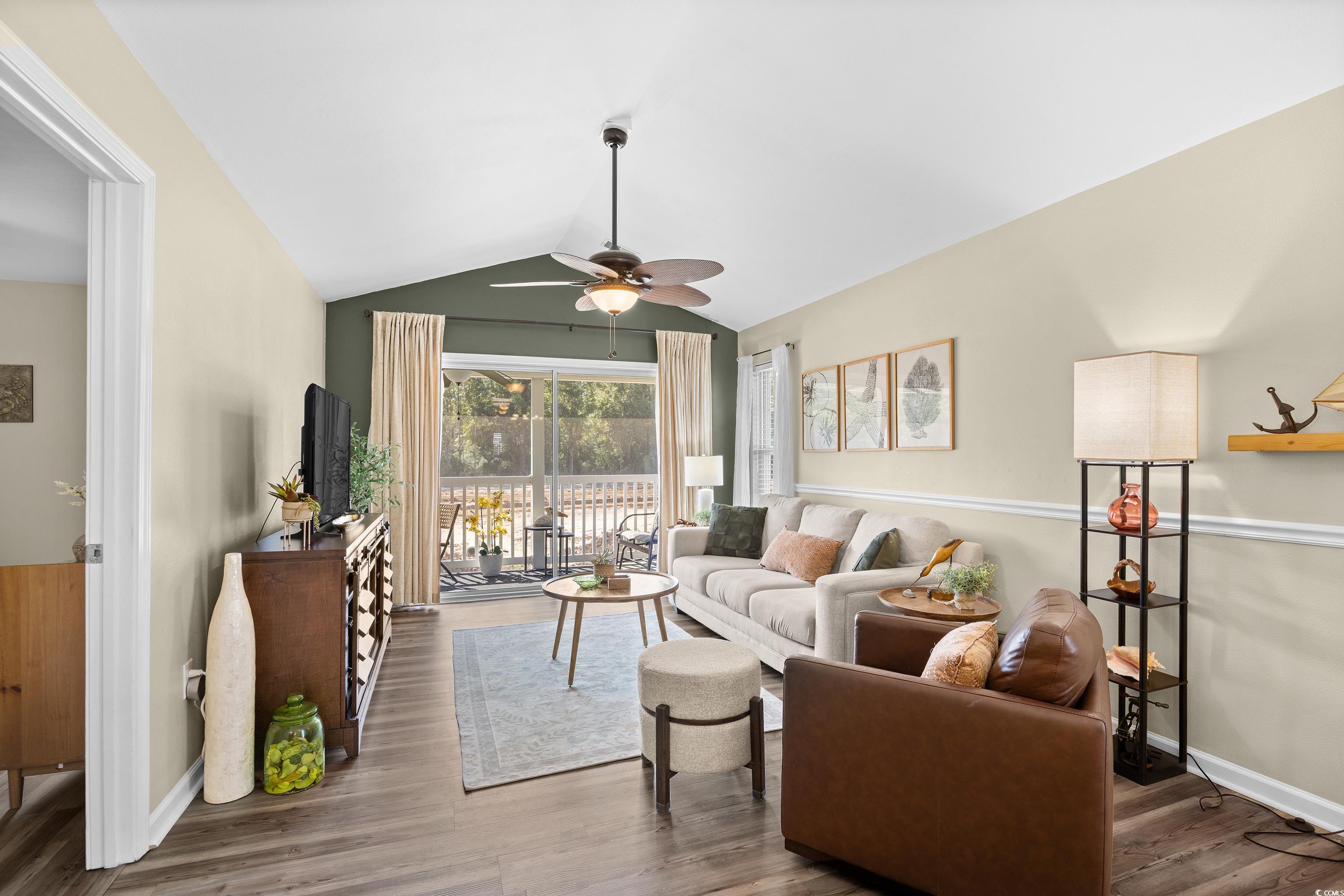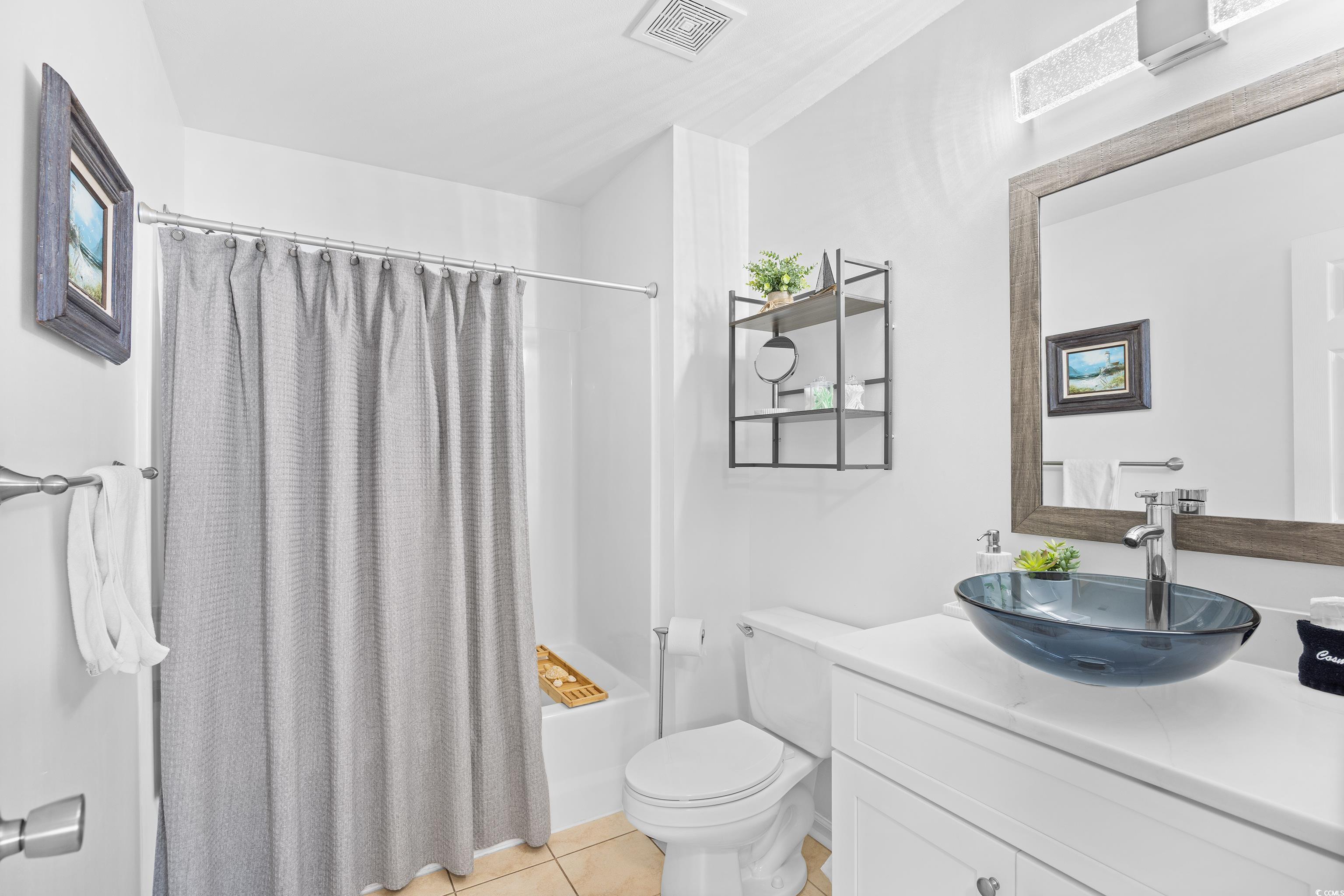 Come see this lovely remodeled end unit located in The Fairways at River Oaks! This fully-furnished condo is currently being used as a second home and a short-term rental property, but it could also make a great full-time residence. This move-in-ready unit would be a turnkey investment. This wonderful condo is on the top floor so you don't have to worry about noise or plumbing leaks coming from above. You will see a large pond with beautiful fountains as you arrive. This delightful unit has a covered entry with a front porch area. The buildings in this section are very unique and these units don't go on the market very often. As you enter through the foyer, you will notice the extra windows which provide an abundance of natural light along with upscale ceiling fans. This stunning unit has been freshly painted and luxury vinyl plank flooring has been added throughout the living room and both bedrooms. This remarkable condo has an open concept with a split floor plan. The decor is stylish and the living room features a sleeper sofa. The spacious dining area has a bar, which is perfect for entertaining. The kitchen features granite countertops, white shaker cabinets, and a custom tile backsplash along with a stainless steel farmhouse sink. There is a pantry and a laundry nook. The washer/dryer shall convey along with all of the window treatments. The large owner's suite has a private door with access to the balcony and a walk-in closet. The attached bath includes a modern vanity with quartz countertops and lots of drawers along with a big walk-in shower. The guest room has two beds, therefore, this unit can sleep a total of seven people. The guest bath features a chic vanity with a vessel sink and quartz countertops. There is a screened-in porch where you can watch the sunrise along with an attached storage closet for all of your beach and golf necessities. This exceptional unit has been very well-maintained by the current owners and they are even offering a home warranty for extra peace of mind. The HVAC was replaced last year so it's pretty much brand new and the roof was installed in 2017. This community has tropical vibes with a huge in-ground pool, hot tub, lots of palm trees, a kiddie pool, and sidewalks. Owners are allowed to have pets and motocycles can be allowed with prior approval. There are plently of parking spots. Come live the easy life at the beach and enjoy the coastal lifestyle! The hoa includes: landscaping, insurance, water/sewer, trash pickup, internet, and a nightly security guard. River Oaks is located in the award-winning Carolina Forest School District. This area is only a few minutes away from The Golden Mile Beach along with many top-notch golf courses such as World Tour and Grande Dunes. There are tons of delicious restaurants, places to shop, and fun things to do! Schedule your showing today and don't forget to check out the virtual tour! Square footage is approximate and not guaranteed. Buyers responsible for verification.