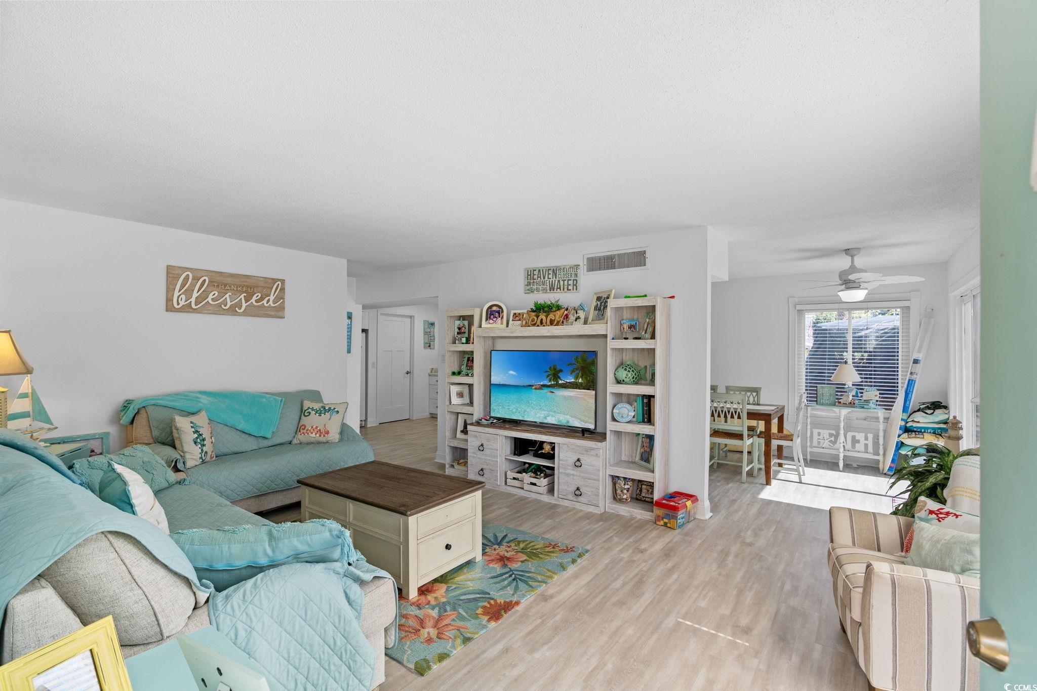 Welcome to your perfect beachside escape. This nicely updated, 3-bedroom, 2.5-bath townhouse-style condo is nestled just a short golf cart or bike ride away from the sand and surf. As you step inside, you'll find a spacious interior. The kitchen features extensive updates from 1.5 years ago, including new highend marble countertops, sink, and range, dishwasher, and microwave. The two full bathrooms and the half bath have also been completely renovated for a fresh, clean look with new toilets, vanities, tubs and tile floors. The spacious rooms are designed for relaxation and comfort, offering ample storage space throughout. Stylish upgrades include new luxury vinyl plank flooring, 4.5"" baseboards, new recessed lighting, and modern ceiling fans. A new washer and dryer are also included for your convenience. Outdoor living is a breeze with plenty of parking options. There are two assigned spots upfront, a space for your golf cart in the back, and extra guest parking available near the large community swimming pool. The back patio was extended and newly fenced last year, creating a perfect space for outdoor enjoyment. The entrance is also more appealing thanks to recent updates to the front door and patio. Enjoy the modern comfort and peace of mind with an HVAC system and water heater that were replaced 2 years ago. This home is a fantastic option for a large group or anyone seeking a move-in-ready beach retreat. You'll want to see this gem for yourself.