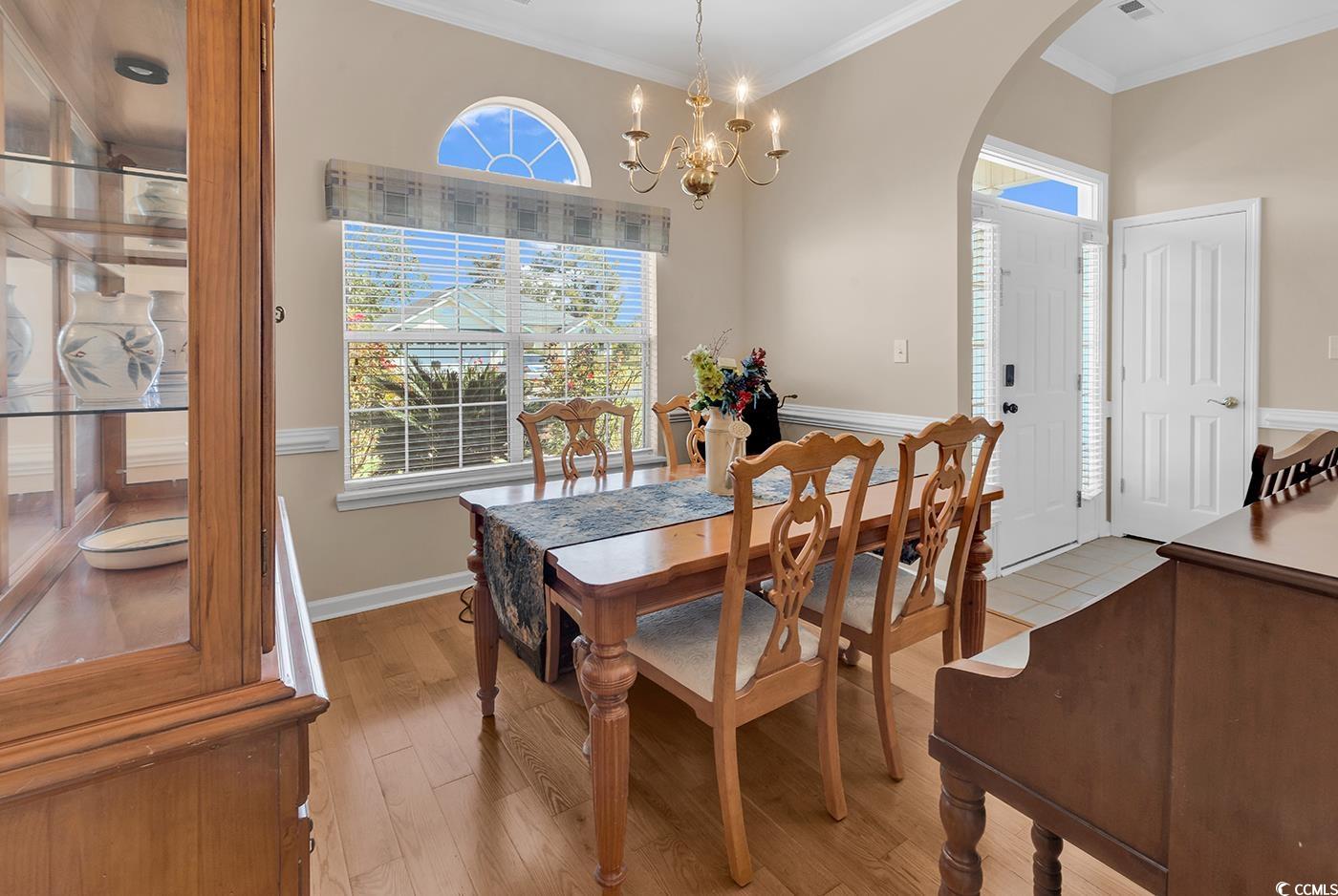 Low HOA and minutes to the Beach!! Welcome to this stunning 3-bedroom, 2-bathroom home located in the highly desirable Glenmere community. Nestled on a tranquil pond-front lot, this well-maintained home offers peaceful water views and an unbeatable location. Step through the inviting foyer into a thoughtfully designed space and take notice of the large, formal dining room with rich hardwood floors immediately to your right. The home features a freshly painted interior with an open concept layout ideal for both entertaining and everyday life. Along with a split bedroom floor plan perfect for added privacy between the primary suite and guest bedrooms, this could be your perfect home. The eat in kitchen, with the large breakfast bar, opens to the main living area, making it ideal for entertaining. The living room offers a natural wood-burning fireplace with built-in shelving, creating a cozy and functional centerpiece. Brand new sliding glass doors lead to the fully fenced backyard with serene pond views. The spacious primary suite includes an oversized walk-in closet, dual vanities, large walk-in tile shower, and a garden tub. Overlooking the pond behind the home, this could become your own private retreat. Glenmere, a well-established community conveniently located off of Hwy 544, is known for its peaceful atmosphere, convenient location, and beautifully maintained homes. The community has professionally engineered drainage ponds that keeps the water constantly flowing throughout the neighborhood. You are minutes from the beautiful beaches of the Grand Strand, the airport, restaurants and shopping. Whether you're looking for a primary residence, vacation retreat, or an investment property, this home is a must-see!