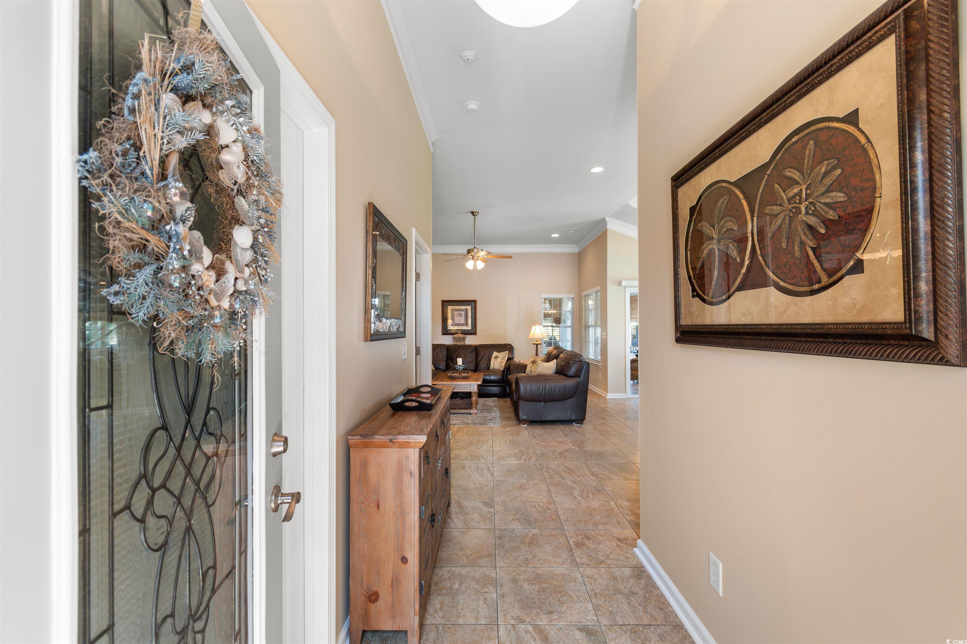 Spectacular coastal living at its finest! This meticulously maintained 3-bedroom, 2-bath home offers comfort, style, and convenience in a desirable gated community, Surfside Beach Club. The open layout is complemented by a bonus Carolina room overlooking a tranquil pond, perfect for relaxing with a view. Step outside to enjoy a beautifully landscaped yard featuring paver patio & walkway, river rock accents, lush green grass, palm trees, and a fenced backyard on a private cul-de-sac. Pride of ownership shines throughout this one-owner home, with upgrades including a new roof (2021), hurricane shutters, home generator, epoxy-coated garage floor, and copper roof accents over the front entry. Architectural touches like barrel ceilings, crown molding, and custom accent wall in the Carolina room add a touch of elegance. Enjoy resort-style amenities with access to the community pool, clubhouse, and fitness center. Enjoy a golf cart ride to the amentities or to the beach. This property blends everyday convenience with coastal charmready for its next owner to enjoy!