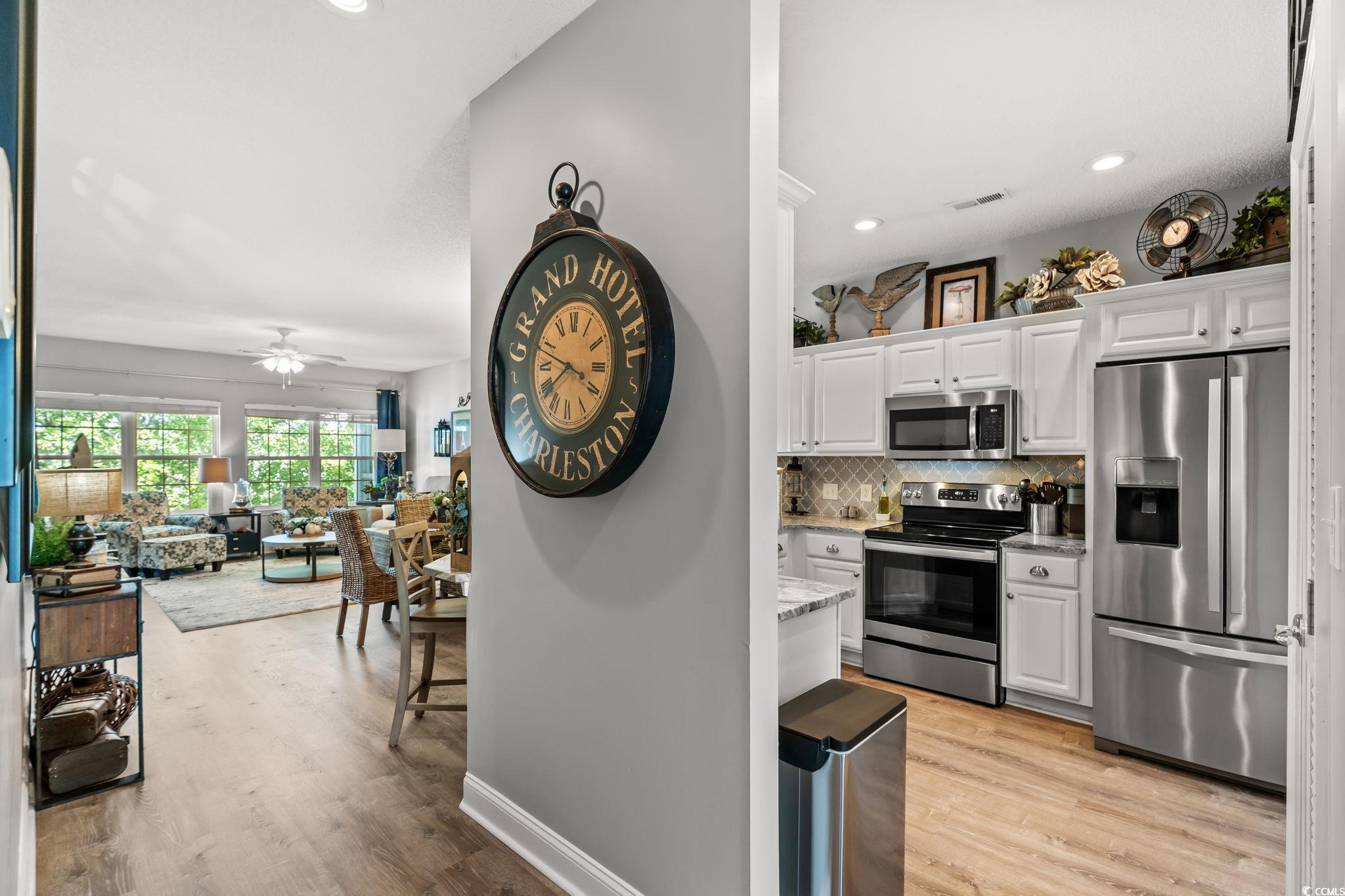 CONDO WITH A GARAGE! Gorgeous condo with a great floor plan that lives like a single family home. Bright and open with plenty of windows and has been updated with HVAC, Granite Countertops, Backsplash, Appliances, LVP Flooring, Lighting, Paint, Plumbing Fixtures, and more. Huge 12x16 screened porch with added EZ Breeze Windows and overlooks tranquil pond with fountain. Corner unit only has one common wall and is on the 2nd floor with no one above. Attached 12'x21' garage plus has an additional assigned parking space and guest parking too. Gated community with plenty of shopping, grocery store, restaurants, outlet mall, and Planet Fitness nearby. Owner is a decorator and it shows with every beautiful detail. This is a great place and a must-see! HOA dues include full homeowners insurance, security gate, cable, wifi, lawn care, monthly pest control, pool and cabana, exterior building maintenance, garbage pickup, powerwashing, gutter cleaning, dryer vents cleaned, and more.