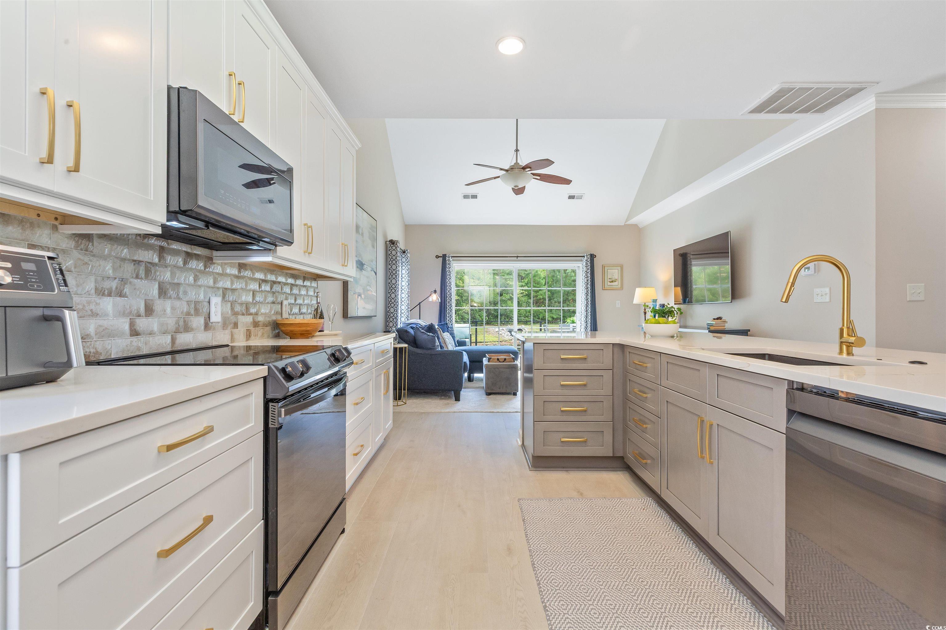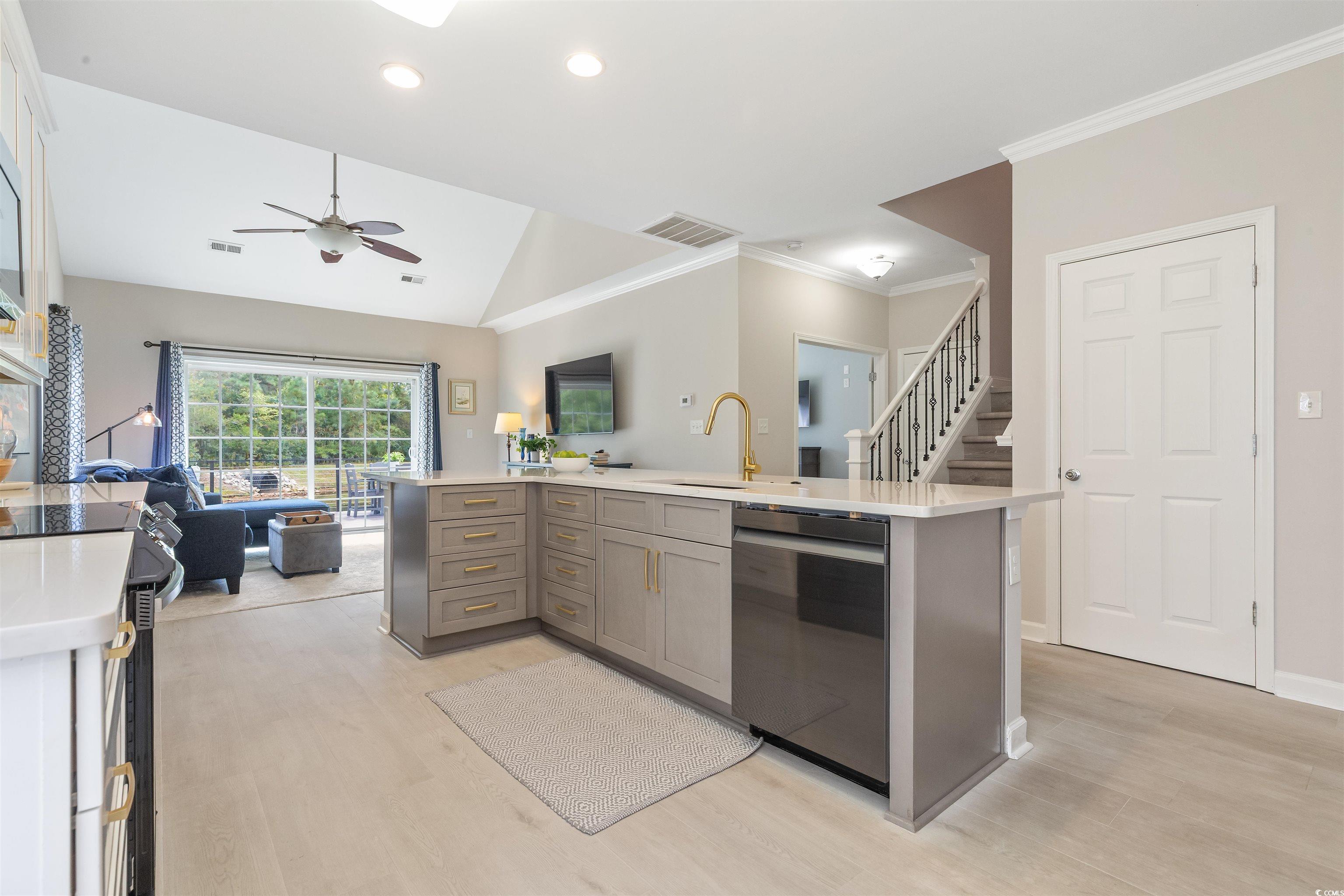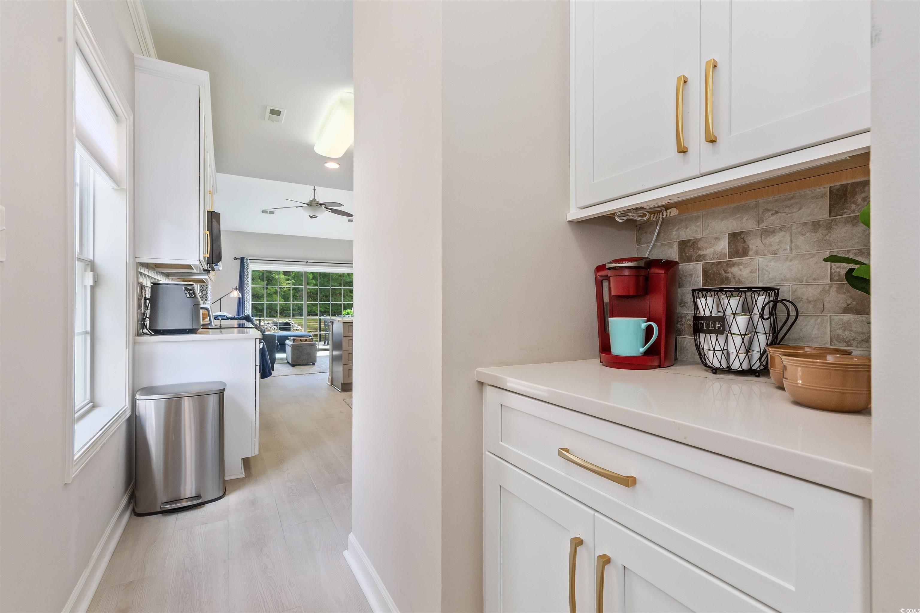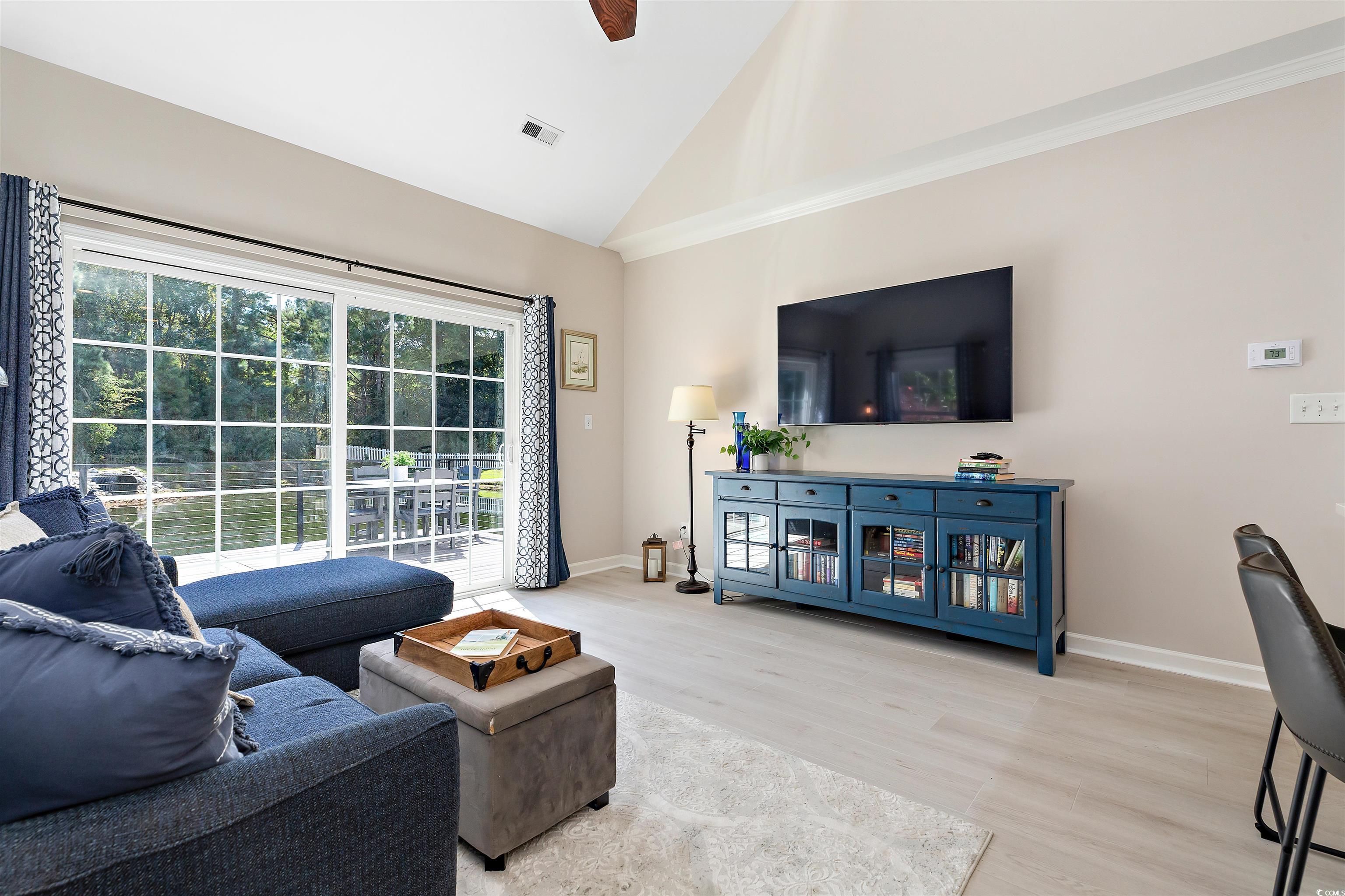 This spacious 4 bedroom 2.5 bathroom home with a bonus room offers over 2400 heated square feet and a beautiful pond view in the sought-after community of The Gates. The home has been thoughtfully maintained and updated with quality finishes that go far beyond builder grade, blending comfort with long-term durability. Inside, youll find high ceilings, tall windows, and abundant natural light. The first-floor layout is ideal for everyday living with a spacious primary suite, motorized blinds, a walk-in closet, and a spa-like bath with a soaking tub and large window that fills the space with sunshine. Renovations on the main level were completed with care, featuring upgraded materials and fixtures chosen for both style and lasting value. The kitchen offers generous storage including a pantry and a coffee nook that keeps appliances tucked away from the main cooking area. Upstairs, guest bedrooms, a full bath, and a family room create a private retreat for children, grandchildren, or visiting guests. The home is perfectly positioned on the lot to maximize privacy, with a spacious back deck overlooking the pond and woods beyond. The view is peaceful and private, with daily visits from blue herons, snowy egrets, turtles, and other wildlife. The driveway easily accommodates four to six vehicles, making it convenient when hosting guests. The Gates is known for its friendly, neighborly atmosphere. Residents enjoy optional access to a community pool, as well as year-round events including food truck Fridays, yard sales, and holiday parades. Theres also a large grassy area and basketball court behind the pool and clubhouse. Halloween is a highlight, attracting families from across Myrtle Beach for a lively night of trick-or-treating. Convenience is unmatched with Food Lion, Publix, and major retailers nearby. The community offers quick access to Highway 707, Highway 17, and Highway 31, making trips to Market Common, Surfside Pier, Murrells Inlet Marshwalk, or the beach effortless while still allowing you to retreat from the seasonal crowds when desired. Situated between Myrtle Beach, Surfside Beach, and Murrells Inlet, this home is close to top-rated schools, shopping, dining, golf, and all that coastal South Carolina living has to offer.