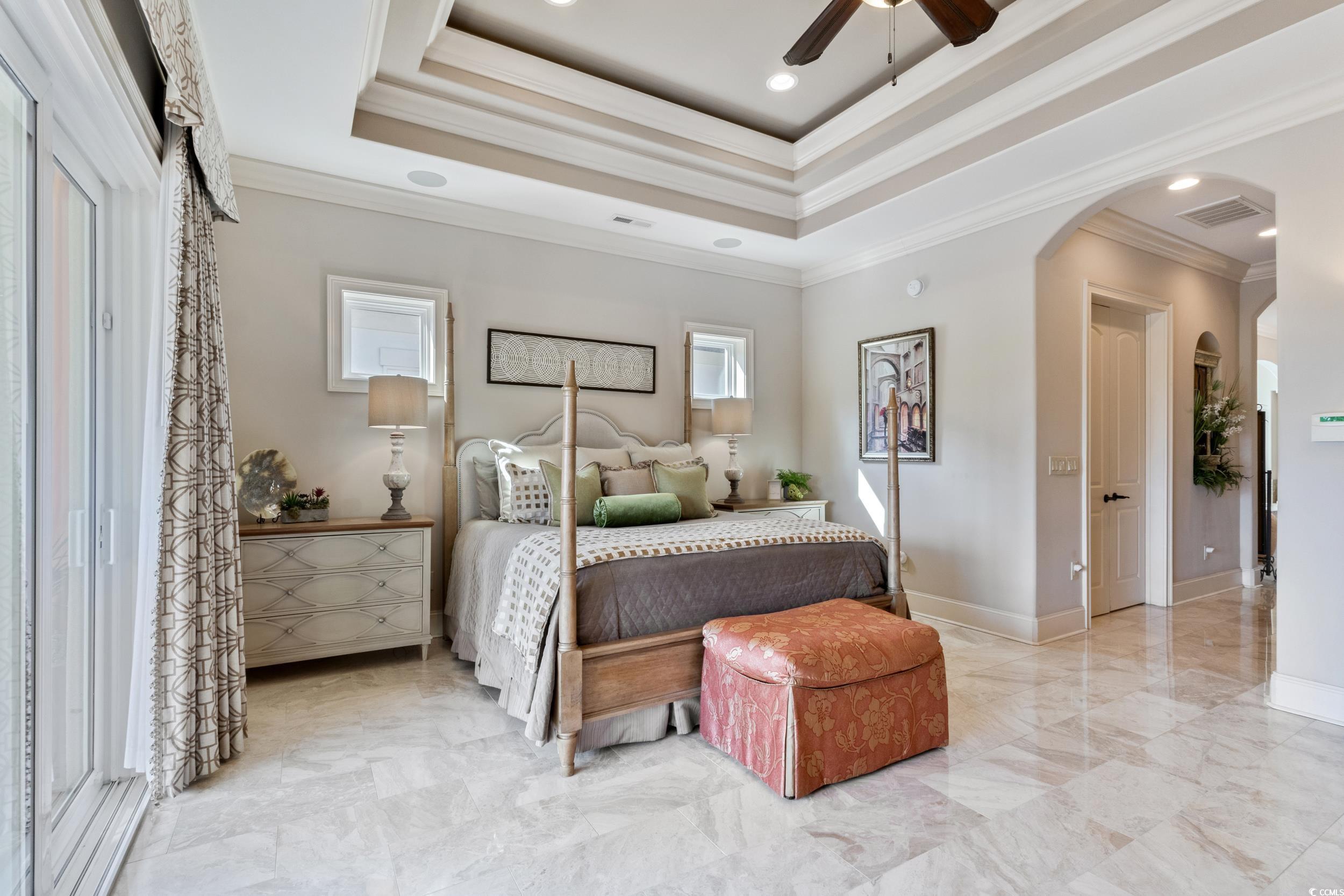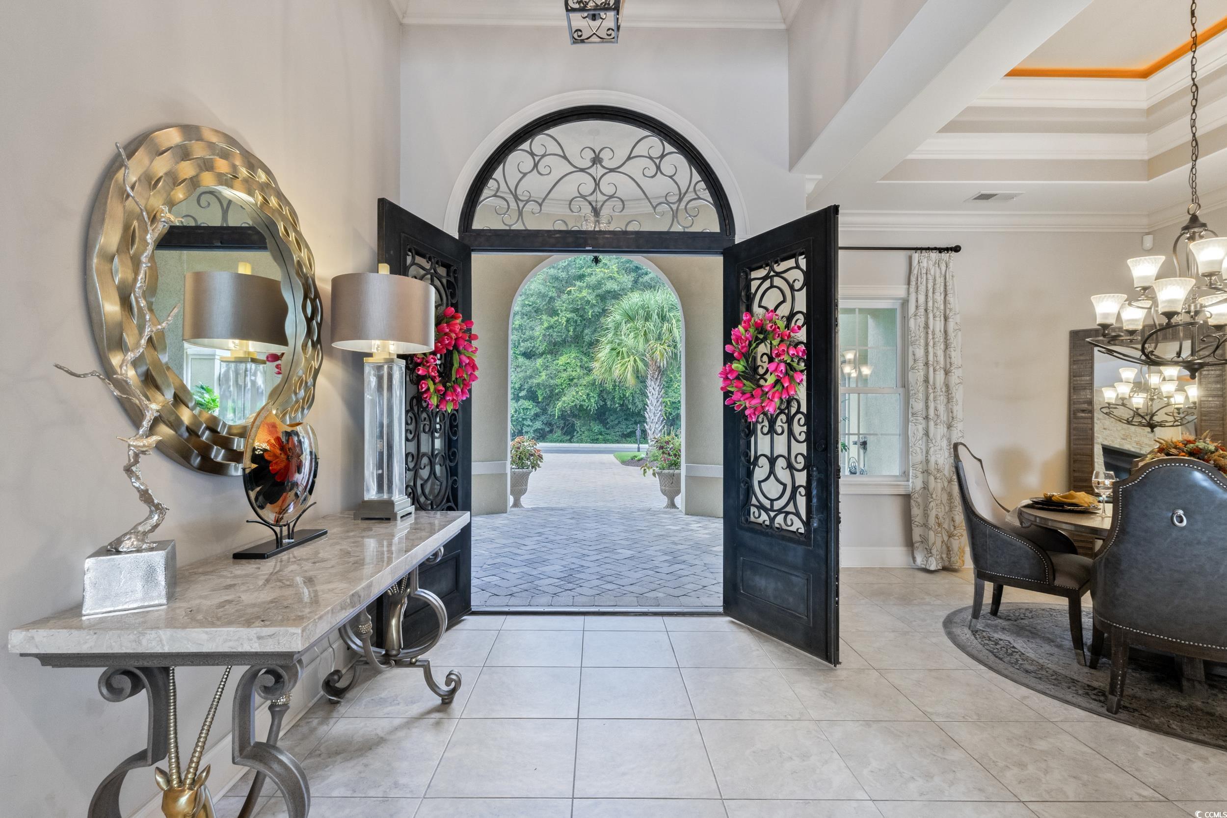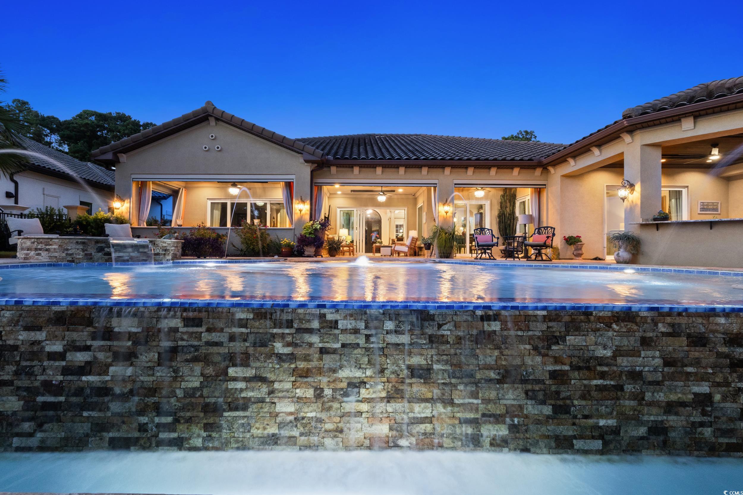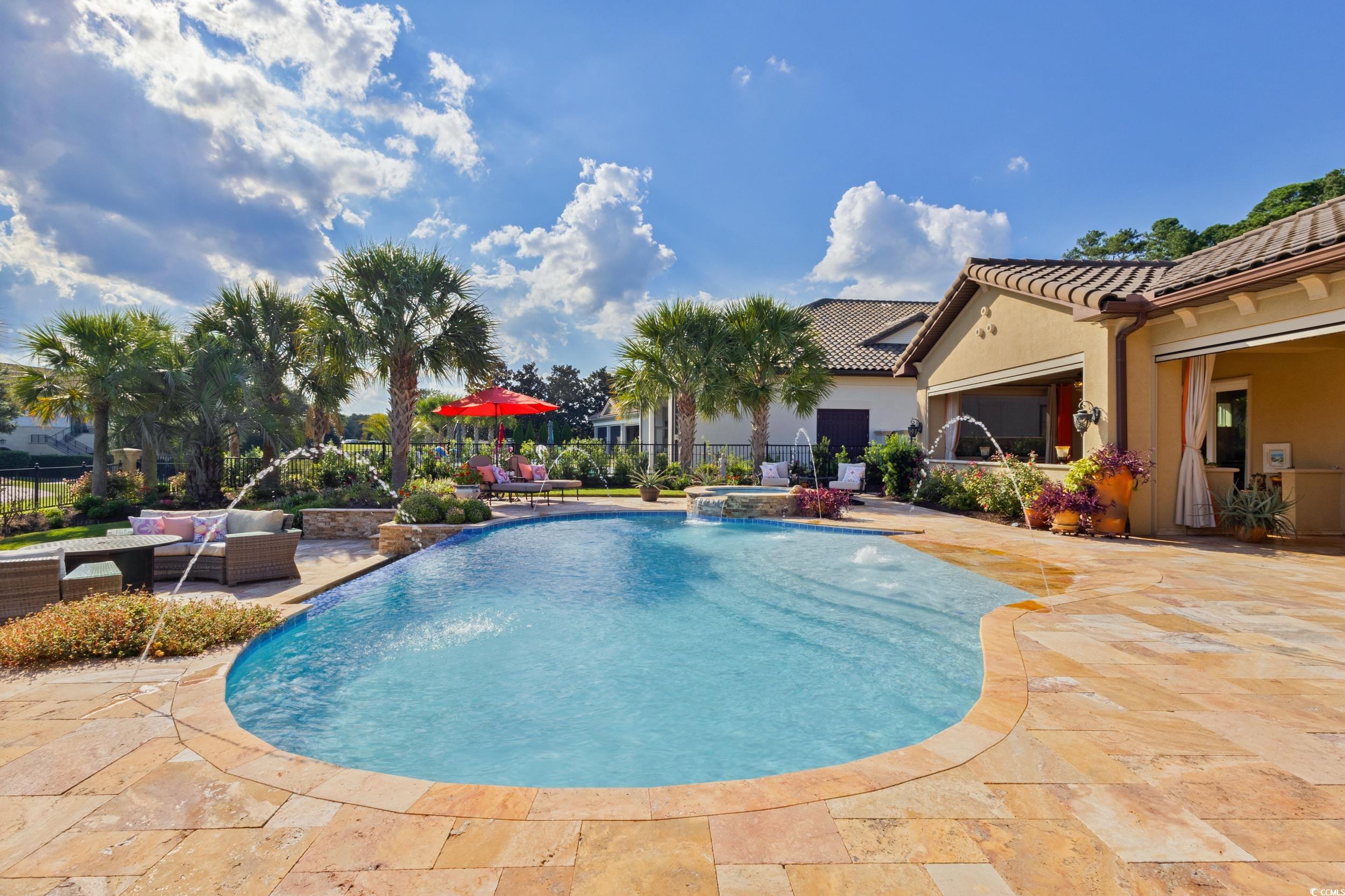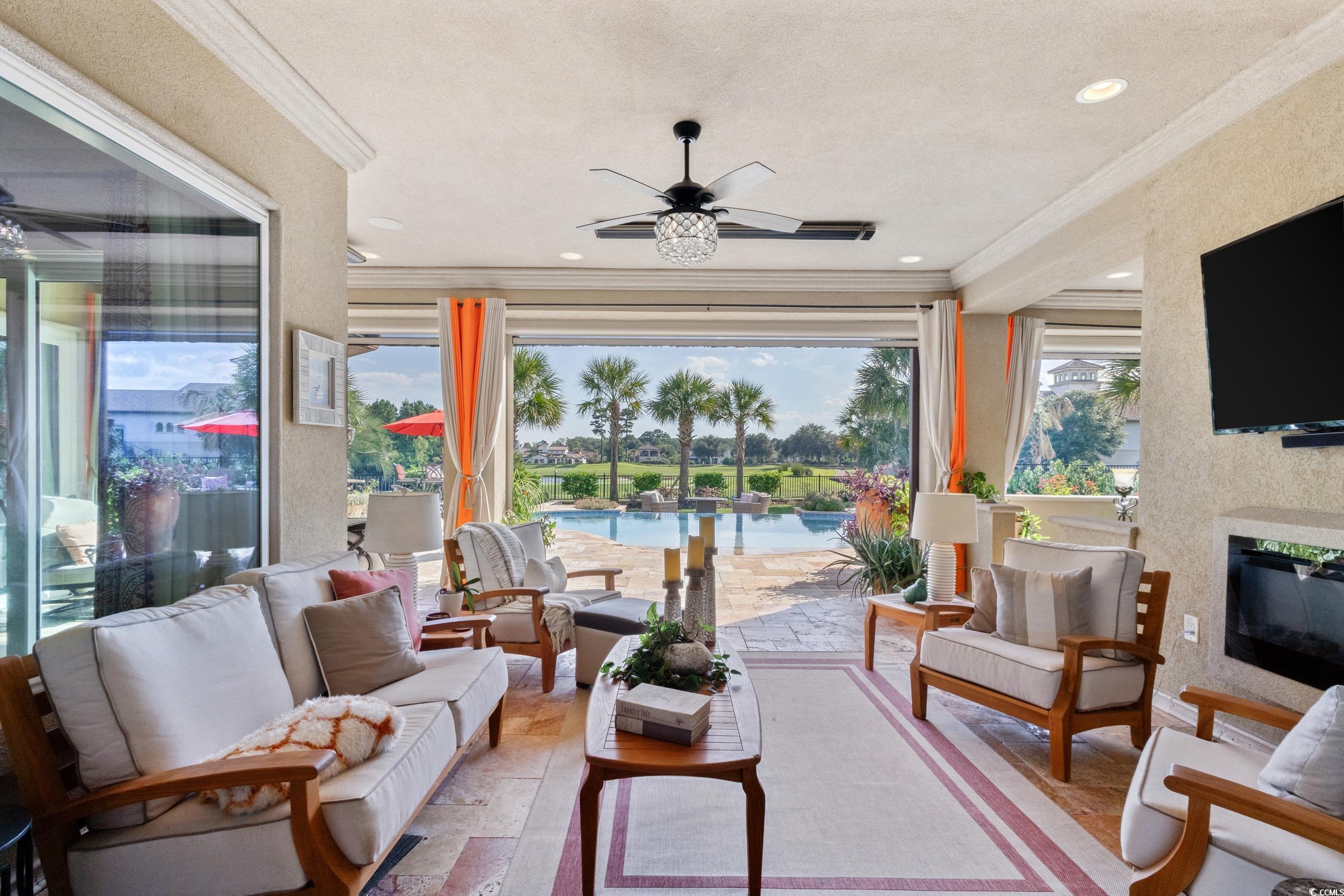 Rare opportunity in the Grande Dunes Members Club! This Mediterranean-style residence is located in the Members Club Cottagesone of the most exclusive enclaves in Grande Dunesand is the only home offering a direct view of the 18th fairway. Just a three-minute walk to the Members Club itself, the location is unmatched for convenience, privacy, and lifestyle. Step through wrought iron entry doors into an expansive living area with immediate golf course views. The open floor plan blends formal and casual living with a private dining room, an open chefs kitchen, and seamless indoor-outdoor connections. The kitchen is appointed with custom pull-out cabinetry, dual pantries, and abundant prep space, along with indoor and outdoor breakfast nooks. A coffered-ceiling office/den with closet offers flexible use for work or guest overflow. The primary suite is a true retreat, highlighted by marble flooring, an oversized jetted tub, and a dual, multi-head rain shower. Accordion glass doors open to a private covered lounge, creating a serene extension of the suite. Two additional guest bedrooms are connected by an oversized Jack-and-Jill bath, designed for comfort and privacy. The whole-home surround sound system, including the garage and outdoor living areas, allows for different music in every room, enhancing both relaxation and entertaining. Accordion glass doors extend to three separate outdoor living areas, each outfitted with powered screens and infrared heaters for year-round enjoyment. The outdoor kitchen is designed for gatherings, complete with a large cooking station, bar seating, dual refrigerators, and a sink. The resort-style outdoor space includes a heated, beach-entry saltwater pool with infinity edge overlooking the 18th fairway, spa, waterfall feature, and firepit seating area. The entire lanai and pool deck have been newly finished in travertine tile for timeless elegance. This home runs on natural gas throughout, powering the pool heater and multiple systems for efficiency and convenience. Professionally designed landscaping includes 21 palms that frame the property, while a self-watering fountain in the front yard sets a warm, welcoming tone each time you arrive. An oversized 2.5-car garage with epoxy flooring, built-in cabinetry, and abundant storage completes the property. All furnishings are optional, offering flexibility for a buyer to move right in or personalize the residence to their own taste. The original owners of this residence made sure every detail of this home included luxury craftsmanship both indoor and outdoor living. It is located in one of the most desirable golf course views in Grande Dunesa rare chance to own in the Members Club Cottages, the most exclusive enclave of the community.