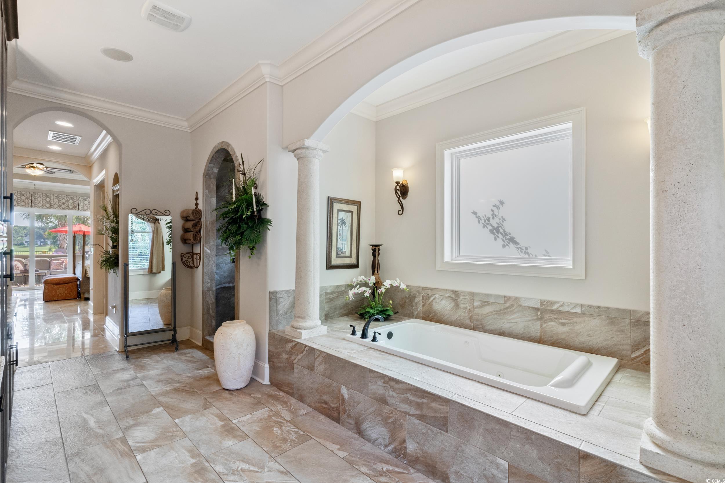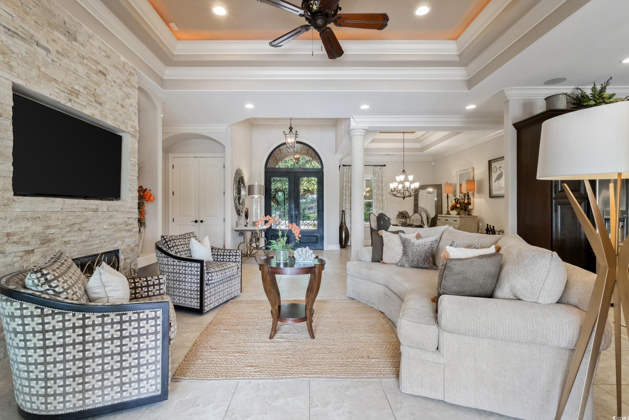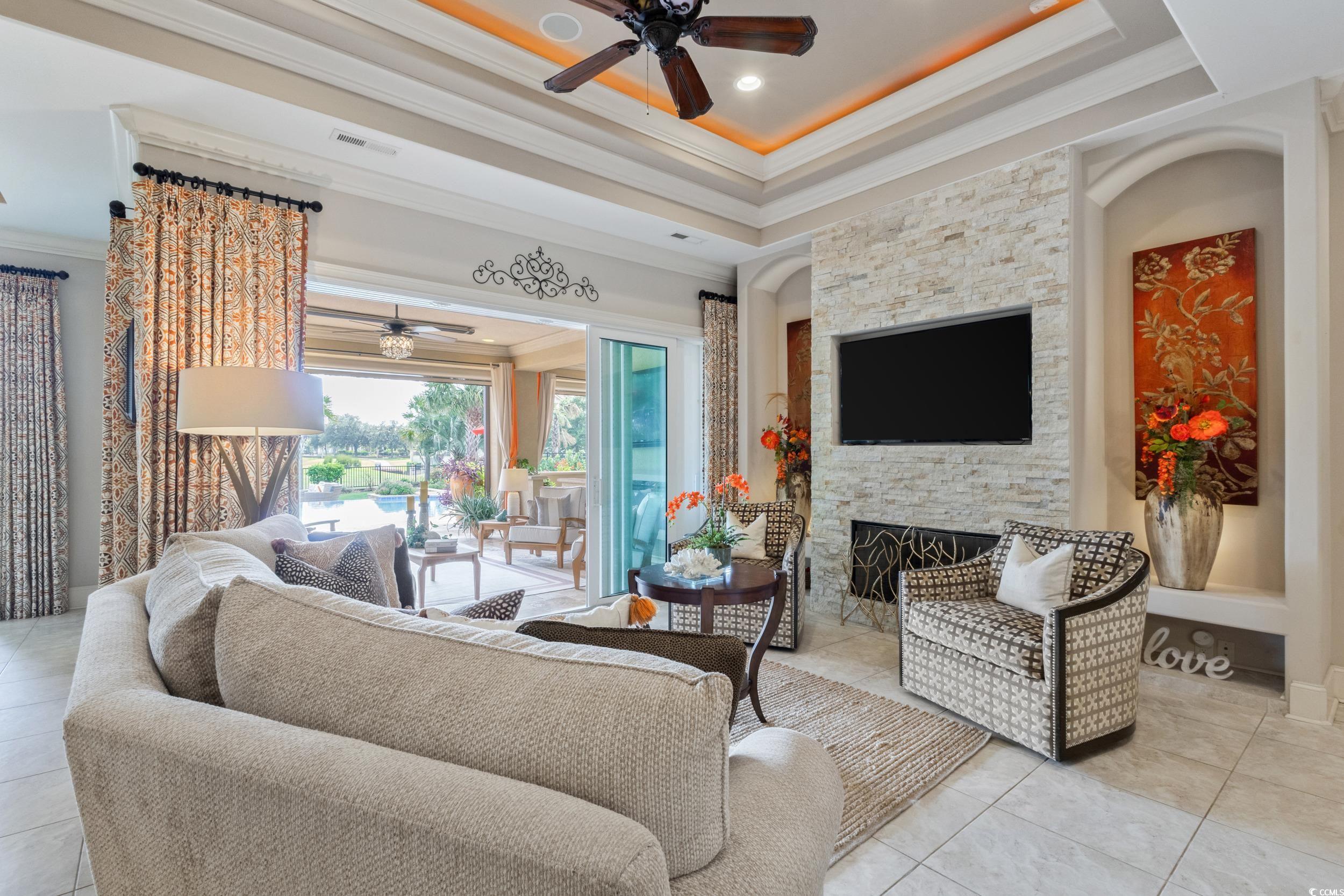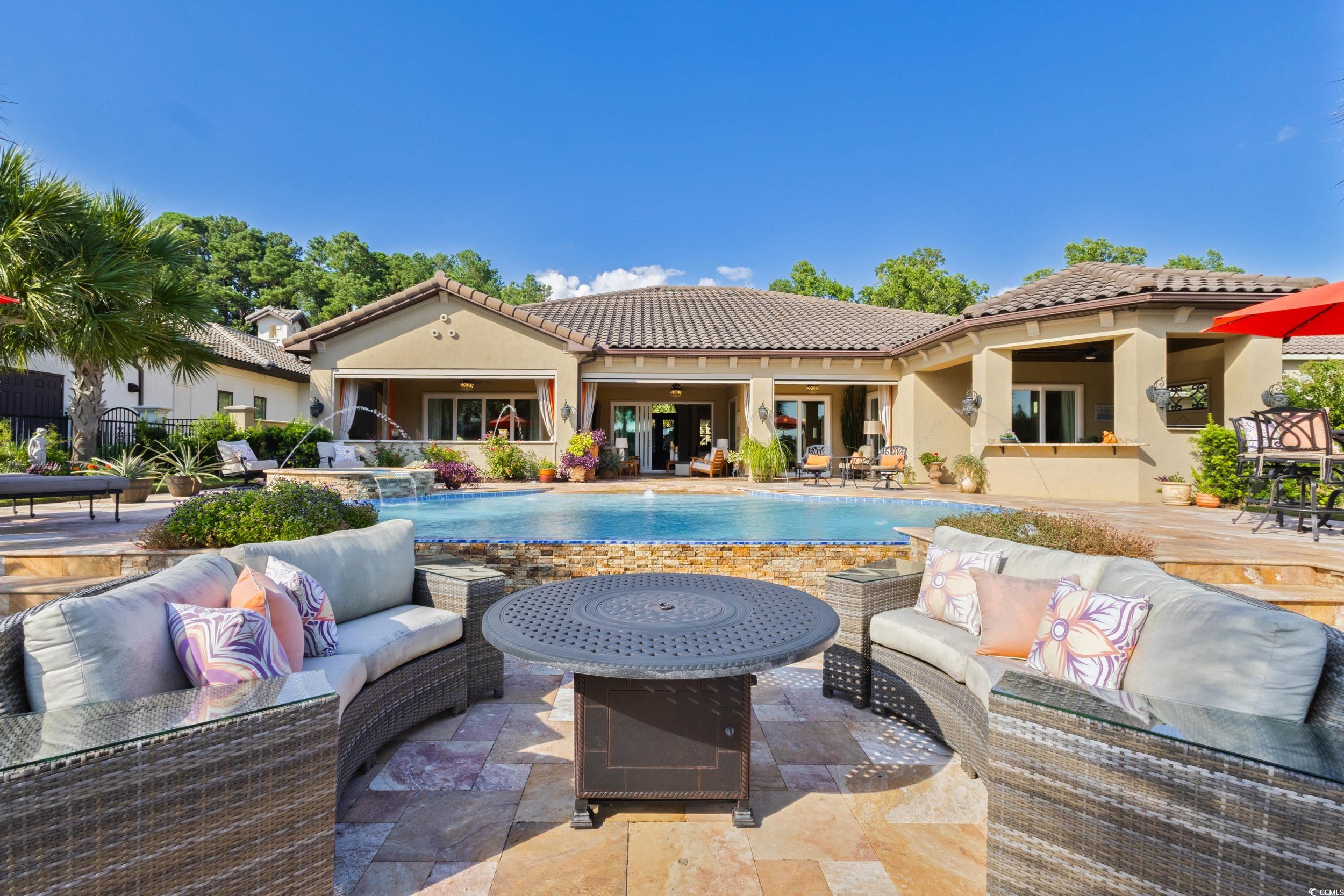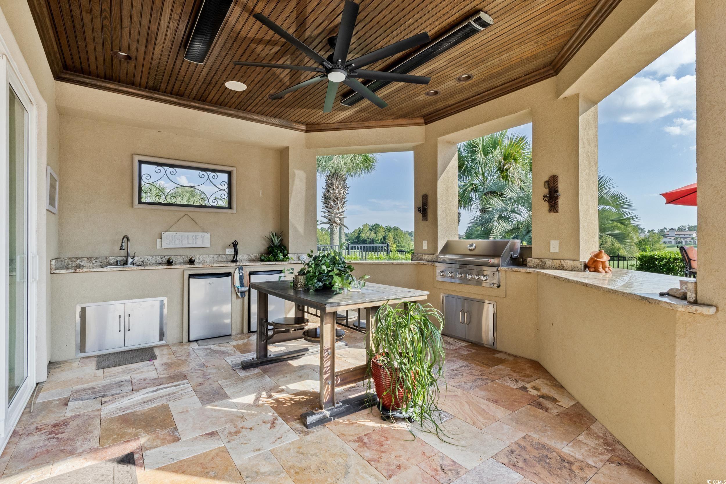 Rare opportunity in the Grande Dunes Members Club! This Mediterranean-style residence is located in the Members Club Cottagesone of the most exclusive enclaves in Grande Dunesand is the only home offering a direct view of the 18th fairway. Just a three-minute walk to the Members Club itself, the location is unmatched for convenience, privacy, and lifestyle. Step through wrought iron entry doors into an expansive living area with immediate golf course views. The open floor plan blends formal and casual living with a private dining room, an open chefs kitchen, and seamless indoor-outdoor connections. The kitchen is appointed with custom pull-out cabinetry, dual pantries, and abundant prep space, along with indoor and outdoor breakfast nooks. A coffered-ceiling office/den with closet offers flexible use for work or guest overflow. The primary suite is a true retreat, highlighted by marble flooring, an oversized jetted tub, and a dual, multi-head rain shower. Accordion glass doors open to a private covered lounge, creating a serene extension of the suite. Two additional guest bedrooms are connected by an oversized Jack-and-Jill bath, designed for comfort and privacy. The whole-home surround sound system, including the garage and outdoor living areas, allows for different music in every room, enhancing both relaxation and entertaining. Accordion glass doors extend to three separate outdoor living areas, each outfitted with powered screens and infrared heaters for year-round enjoyment. The outdoor kitchen is designed for gatherings, complete with a large cooking station, bar seating, dual refrigerators, and a sink. The resort-style outdoor space includes a heated, beach-entry saltwater pool with infinity edge overlooking the 18th fairway, spa, waterfall feature, and firepit seating area. The entire lanai and pool deck have been newly finished in travertine tile for timeless elegance. This home runs on natural gas throughout, powering the pool heater and multiple systems for efficiency and convenience. Professionally designed landscaping includes 21 palms that frame the property, while a self-watering fountain in the front yard sets a warm, welcoming tone each time you arrive. An oversized 2.5-car garage with epoxy flooring, built-in cabinetry, and abundant storage completes the property. All furnishings are optional, offering flexibility for a buyer to move right in or personalize the residence to their own taste. The original owners of this residence made sure every detail of this home included luxury craftsmanship both indoor and outdoor living. It is located in one of the most desirable golf course views in Grande Dunesa rare chance to own in the Members Club Cottages, the most exclusive enclave of the community.