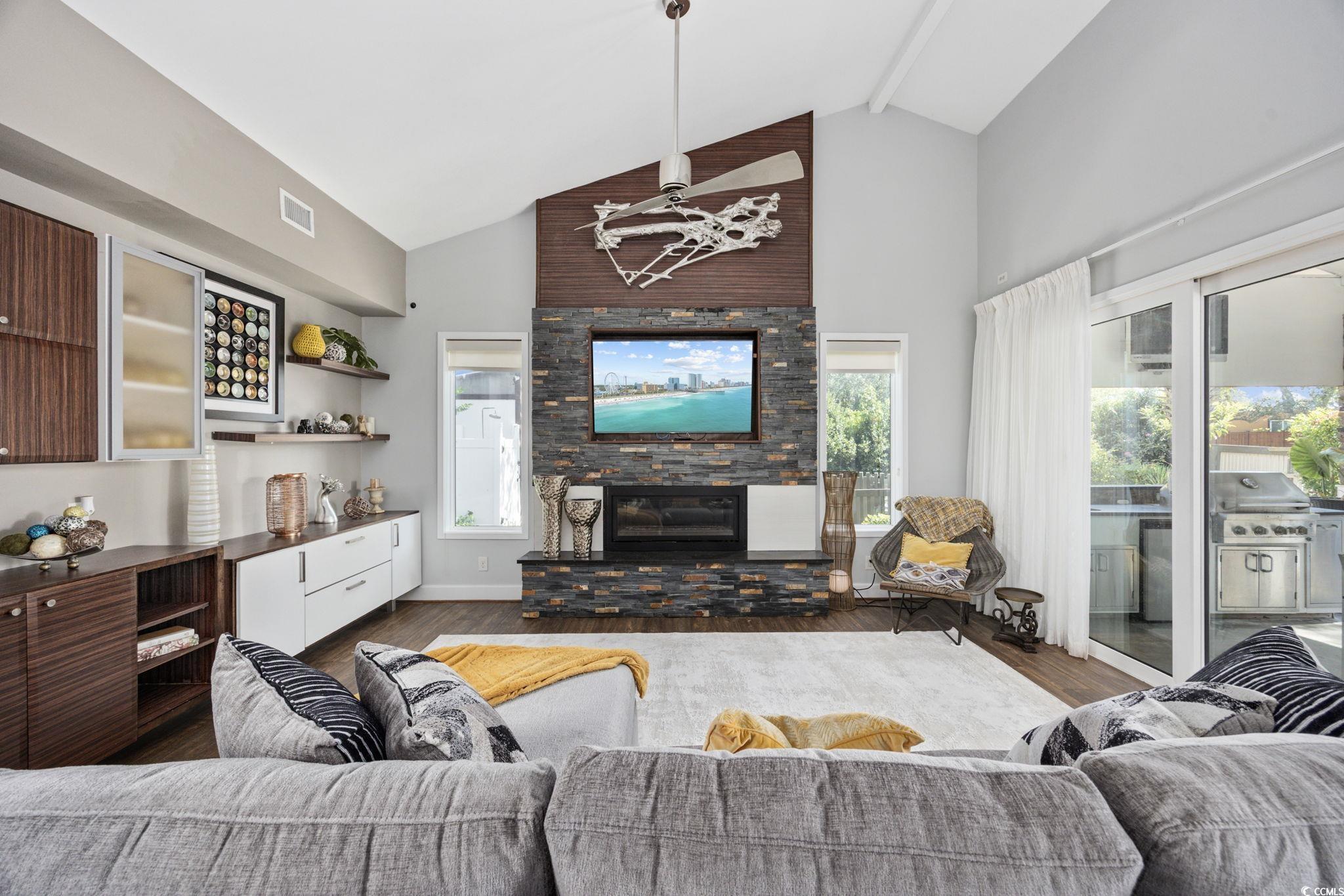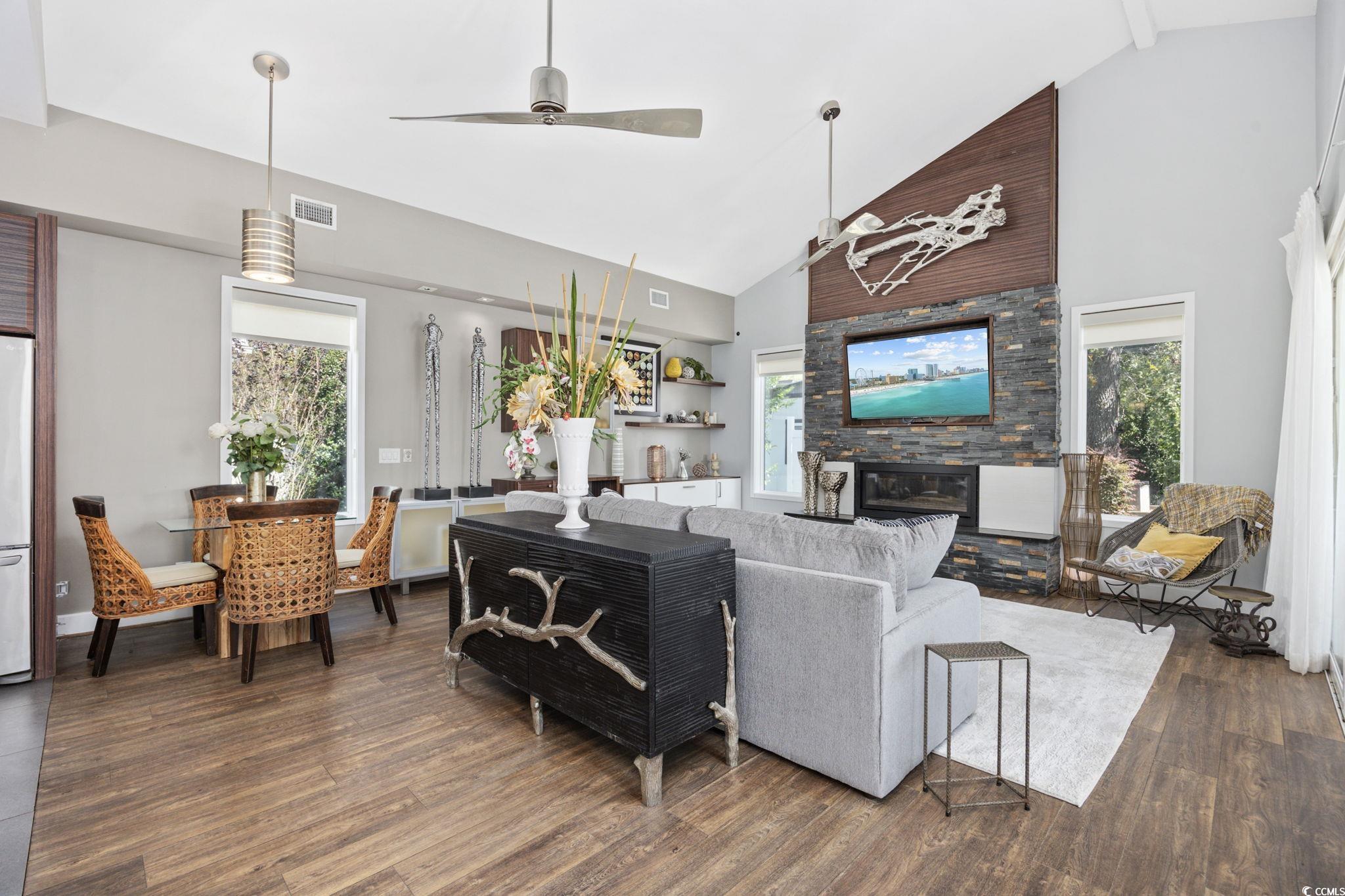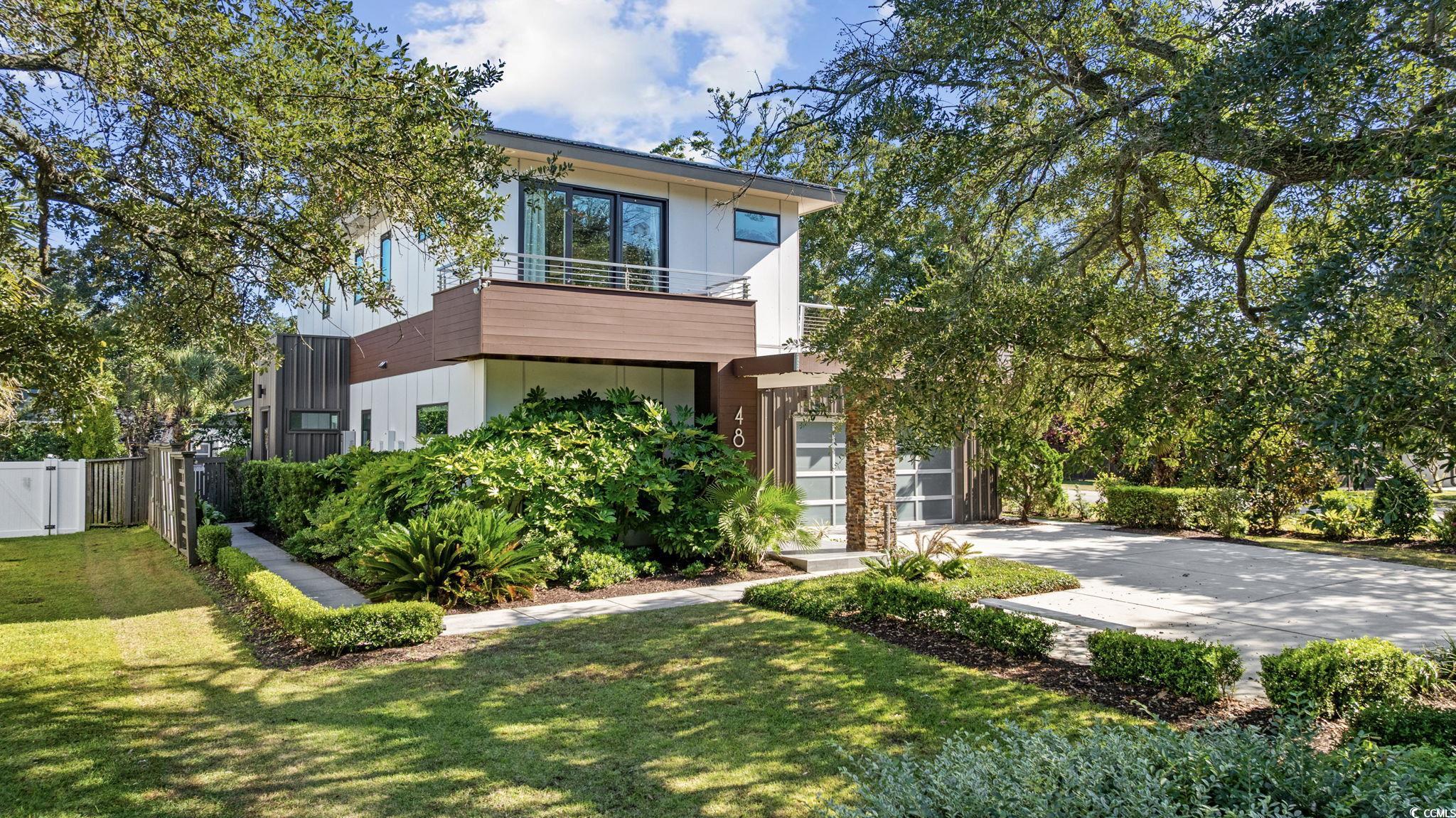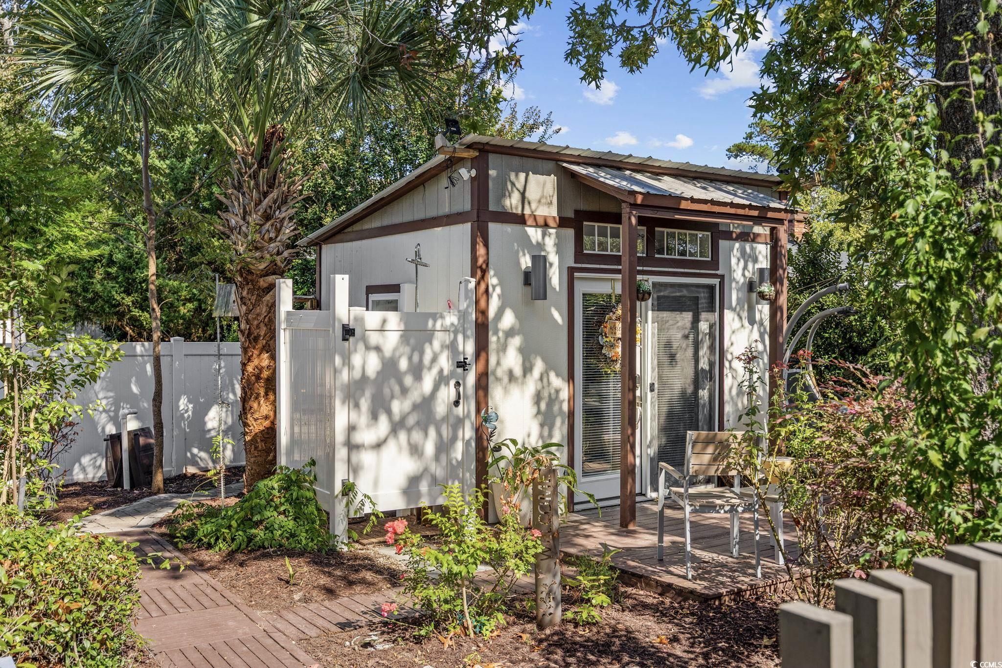 Experience the pinnacle of luxury in this stunning coastal modern 3-bedroom, 3.5-bath home located in the desirable Pine Lakes community that is just .20 of a mile to the beach! This property combines elegant design with stacked stone and rosewood toned Brazilian Ipe hardwood, a metal roof, and high-end features, offering a sophisticated and comfortable lifestyle. The heart of the home is the chef's kitchen, which boasts a natural gas cooktop, top-of-the-line appliances, and ample counter space. The kitchen seamlessly flows into the spacious living area, highlighted by a cozy gas fireplace and 8 foot sliding doors. The first floor is designed for convenience and privacy, by also featuring the primary master suite, a serene retreat complete with a luxurious bathroom. A floating staircase leads to the second floor, which offers a thoughtful layout with an additional primary suite, a comfortable guest bedroom, and a versatile sitting/office area. The exterior is a private outdoor oasis. The private in ground pool, fire pit, and outdoor kitchen are perfect for entertaining, or you can enjoy the beautiful views and oak trees from the expansive upper deck. The cozy detached cottage is heated and cooled and features a green house, kitchenette, and outdoor shower. This home is truly more than just a place to liveit's a lifestyle. All furnishings are negotiable. You don't want to miss the opportunity to own this unique property!