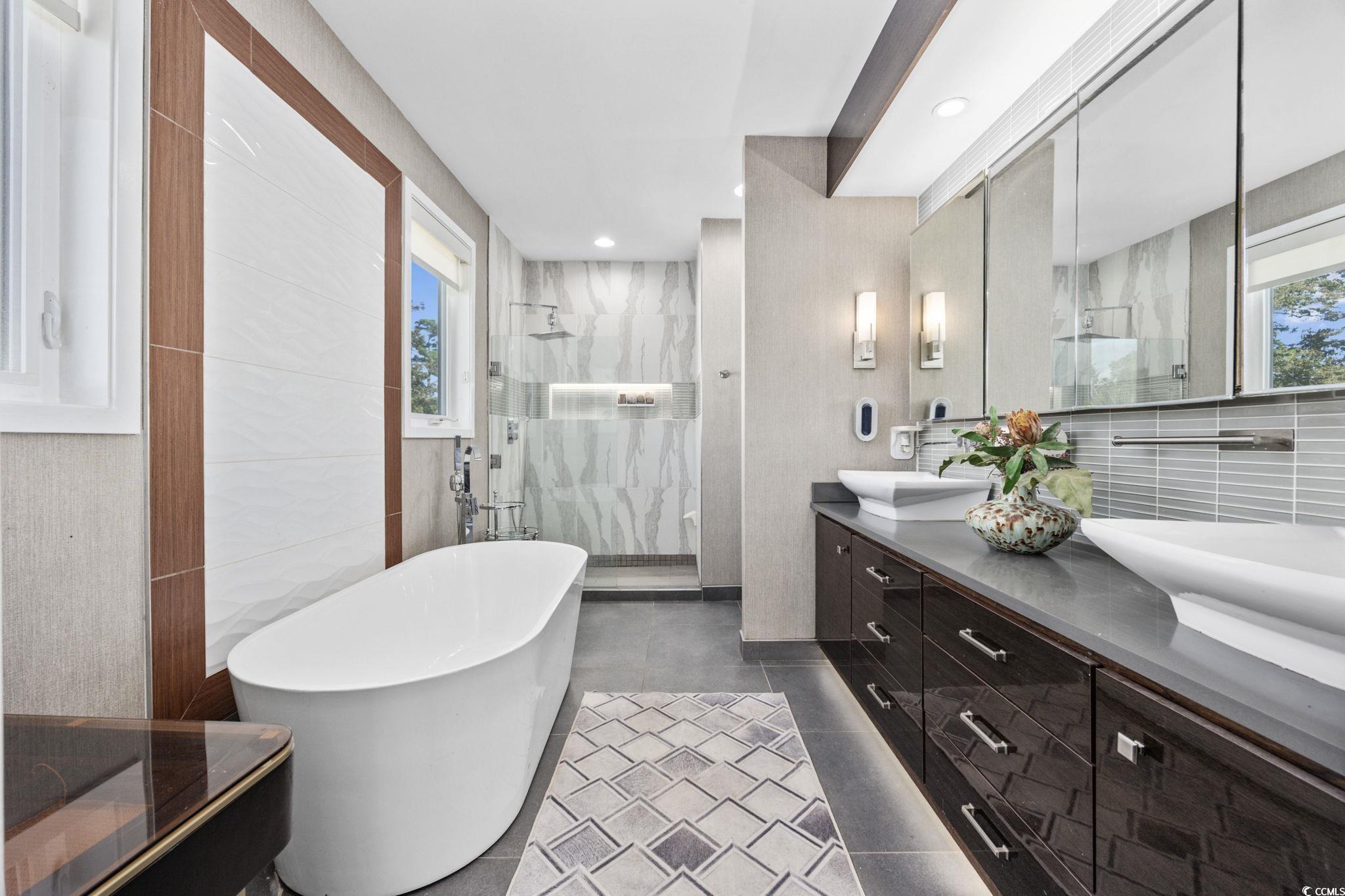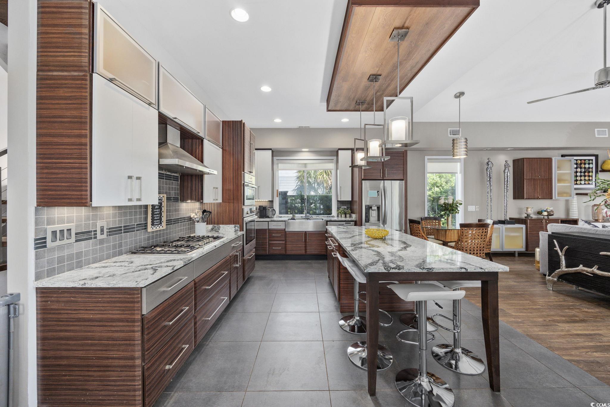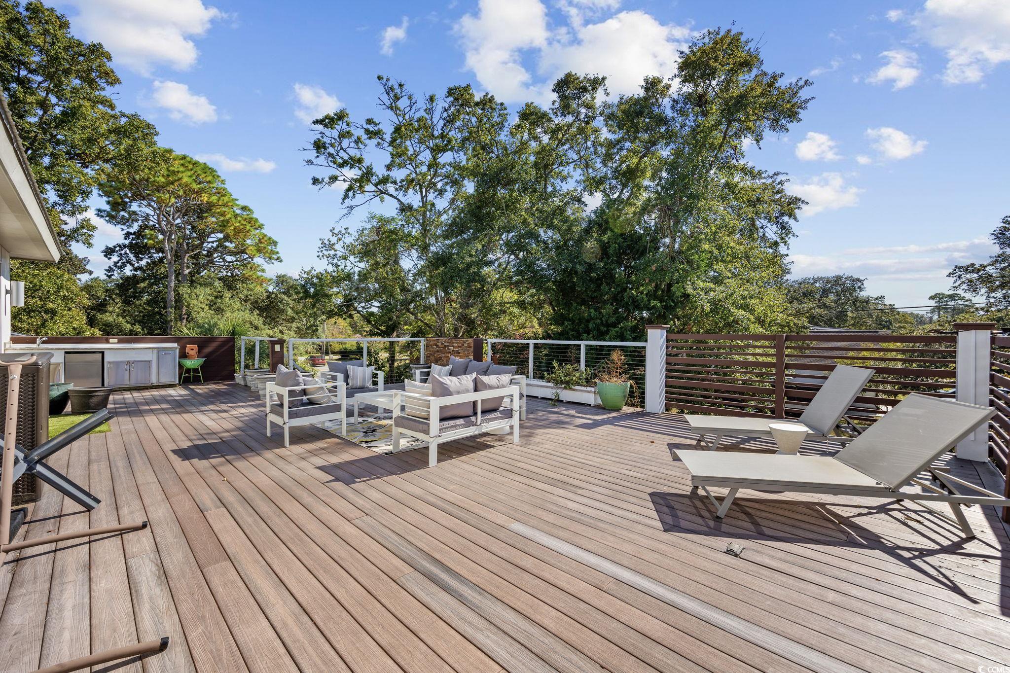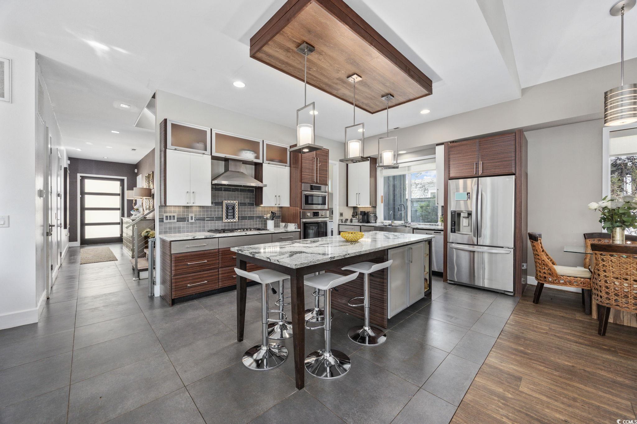 Experience the pinnacle of luxury in this stunning coastal modern 3-bedroom, 3.5-bath home located in the desirable Pine Lakes community that is just .20 of a mile to the beach! This property combines elegant design with stacked stone and rosewood toned Brazilian Ipe hardwood, a metal roof, and high-end features, offering a sophisticated and comfortable lifestyle. The heart of the home is the chef's kitchen, which boasts a natural gas cooktop, top-of-the-line appliances, and ample counter space. The kitchen seamlessly flows into the spacious living area, highlighted by a cozy gas fireplace and 8 foot sliding doors. The first floor is designed for convenience and privacy, by also featuring the primary master suite, a serene retreat complete with a luxurious bathroom. A floating staircase leads to the second floor, which offers a thoughtful layout with an additional primary suite, a comfortable guest bedroom, and a versatile sitting/office area. The exterior is a private outdoor oasis. The private in ground pool, fire pit, and outdoor kitchen are perfect for entertaining, or you can enjoy the beautiful views and oak trees from the expansive upper deck. The cozy detached cottage is heated and cooled and features a green house, kitchenette, and outdoor shower. This home is truly more than just a place to liveit's a lifestyle. All furnishings are negotiable. You don't want to miss the opportunity to own this unique property!