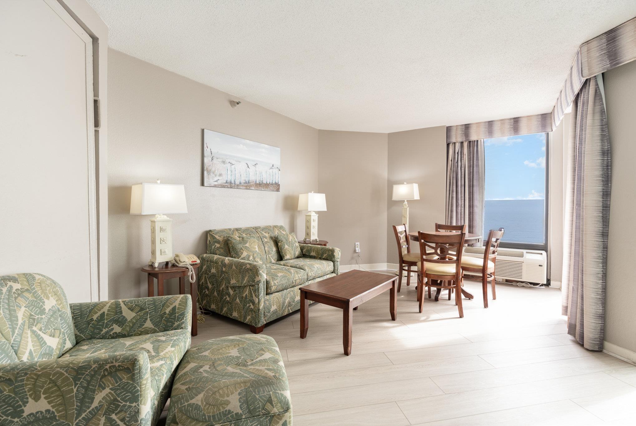 FABULOUS Floor to Ceiling Windows make this Spacious True 1 Bedroom Condo in Patricia Grand an Absolute Dream! One of the Most Desired Floor Plans- a Private Bedroom with Incredible Oceanfront Views including Balcony Access in Addition to the Living Area with Oceanfront Views and Balcony Access too WOW- OCEANFRONT VISIBILITY FROM EVERY ROOM! Condo Features and Updates include Gorgeous Luxury Vinyl Plank and Tile Throughout, Updated Kitchen Appliances, High Quality Glass Replacement for Balcony Doors, Window/Wall Units, Updated Bathroom Fixtures, Freshly Painted Walls, Artwork, TVs, conveniently appointed Wall/Murphy Bed in the Living Area for Guests (advantage for rental opportunities), Additional Closet to Easily Convert into an Owners Closet Option, and more! Patricia Grand Offers an Array of Amenities from the Starbucks coffee bar, Indoor and Outdoor Pools, Hot Tub, Lazy River, Exercise Facility, Summer Tiki Bar, Dining Options, and Gift Shop. Patricia Grand is the Premier Place to Own a Vacation Place at the Beach or an Impressive Investment Property. Don't Miss Out, Call Today!