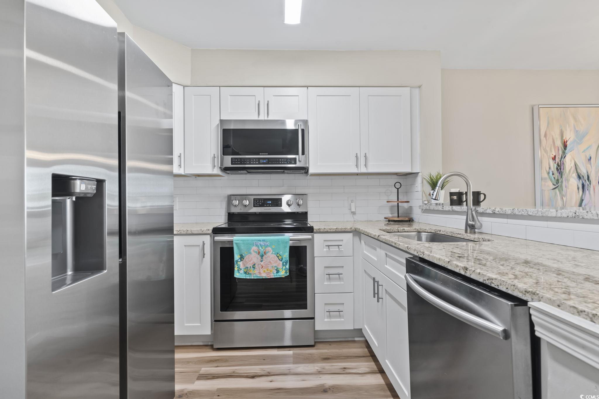 Welcome to Unit H-234 in the sought-after North Myrtle Beach Golf & Tennis community-an updated, move-in ready beach condo just a short stroll from the Atlantic. As you enter, you'll be greeted by beautiful LVP flooring that flows seamlessly through the open living areas, creating a crisp, modern and low-maintenance ambiance. The kitchen is a showstopper: gleaming granite countertops, a stylish tile backsplash, new cabinetry, and stainless steel appliances make this space as functional as it is elegant. This two-bedroom, two-bathroom home is designed for comfort and convenience. The primary suite offers a relaxing retreat, complete with a private vanity and roomy walk-in shower-your personal sanctuary after a busy day. A ceiling fan keeps the space light and airy, while an adjacent second bedroom and full bath offer versatility for guests, family, or a home office. One of the highlights is the private balcony-your perfect perch for morning coffee, sunset unwinding, or social evenings with friends. Living here means access to community amenities that feel like a resort: take a refreshing dip in the outdoor pool, challenge neighbors to a match on the tennis courts, or stroll through the beautifully maintained grounds. Situated just off Highway 17, this prime location offers golf-cart accessibility to the beach and is only minutes from popular shopping, dining, and entertainment destinations. You're close to Barefoot Landing, local boutiques, fresh seafood restaurants, and seasonal festivals-everything you want in coastal living. Don't miss your opportunity to own a stylish, turnkey condo in a premier North Myrtle Beach neighborhood. Schedule your showing today and experience the best of beachside living at H-234! Schedule your showing today!