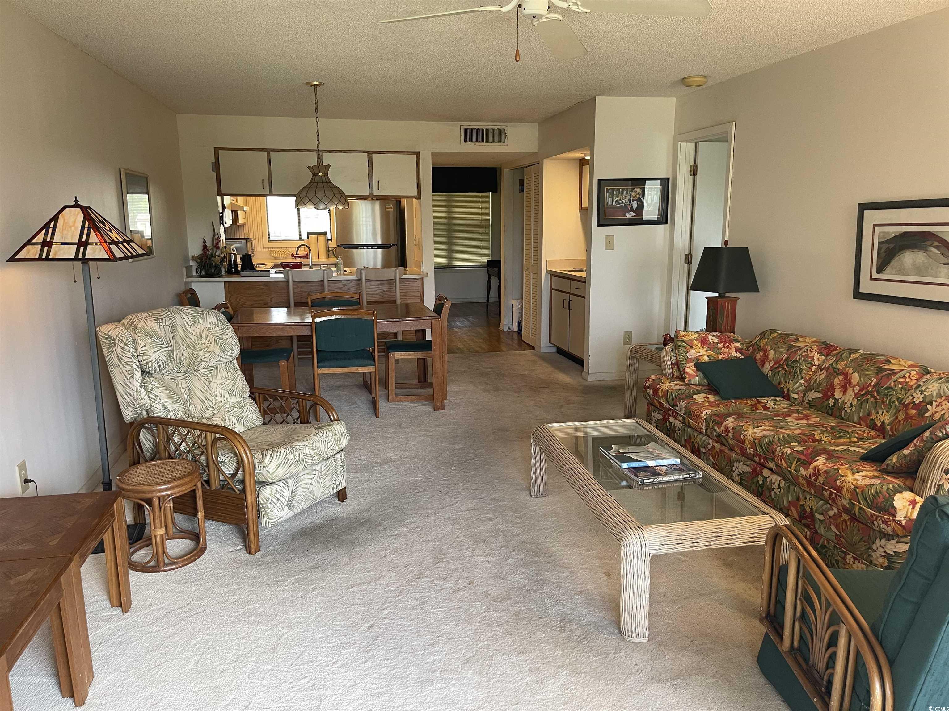 Great opportunity to make this two bedroom two bath condo your dream home! With some TLC, you can discover the great potential of this unit by adding your own personal touch. Located in the Dunes Pointe community in Myrtle Beach close to Shore Drive, this condo overlooks the pond and Dunes Golf Course where you can sit and relax on the wrap-around screened in back porch enjoying your morning coffee or beautiful afternoon sunsets. This unit offers a split floor plan, large living and dining area with beautiful views, and a master suite with sliders leading out onto the screened in porch. The community has an outdoor pool, an indoor pool, tennis courts and pickleball courts plus golf cart storage and other vehicle storage. Close to the beach, restaurants, shopping and golfing. With some TLC this can be an escape to the Beach life you've always dreamed of. Perfect as a full time residence, second home or investment property!