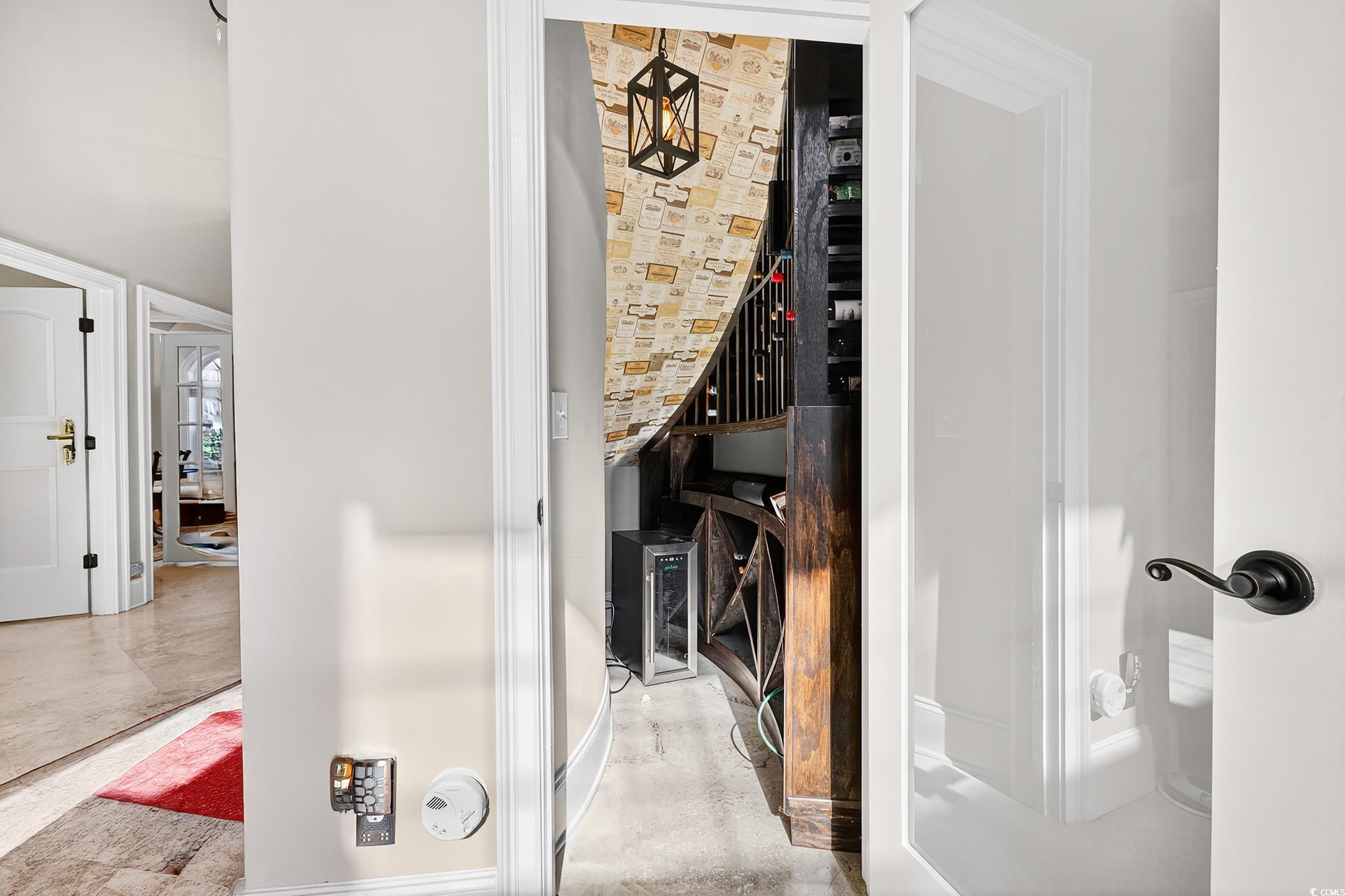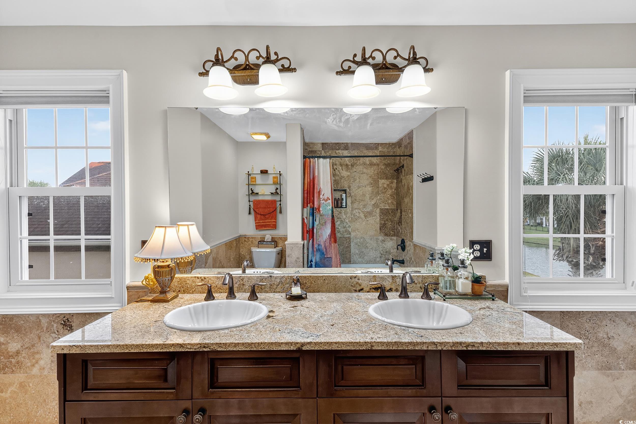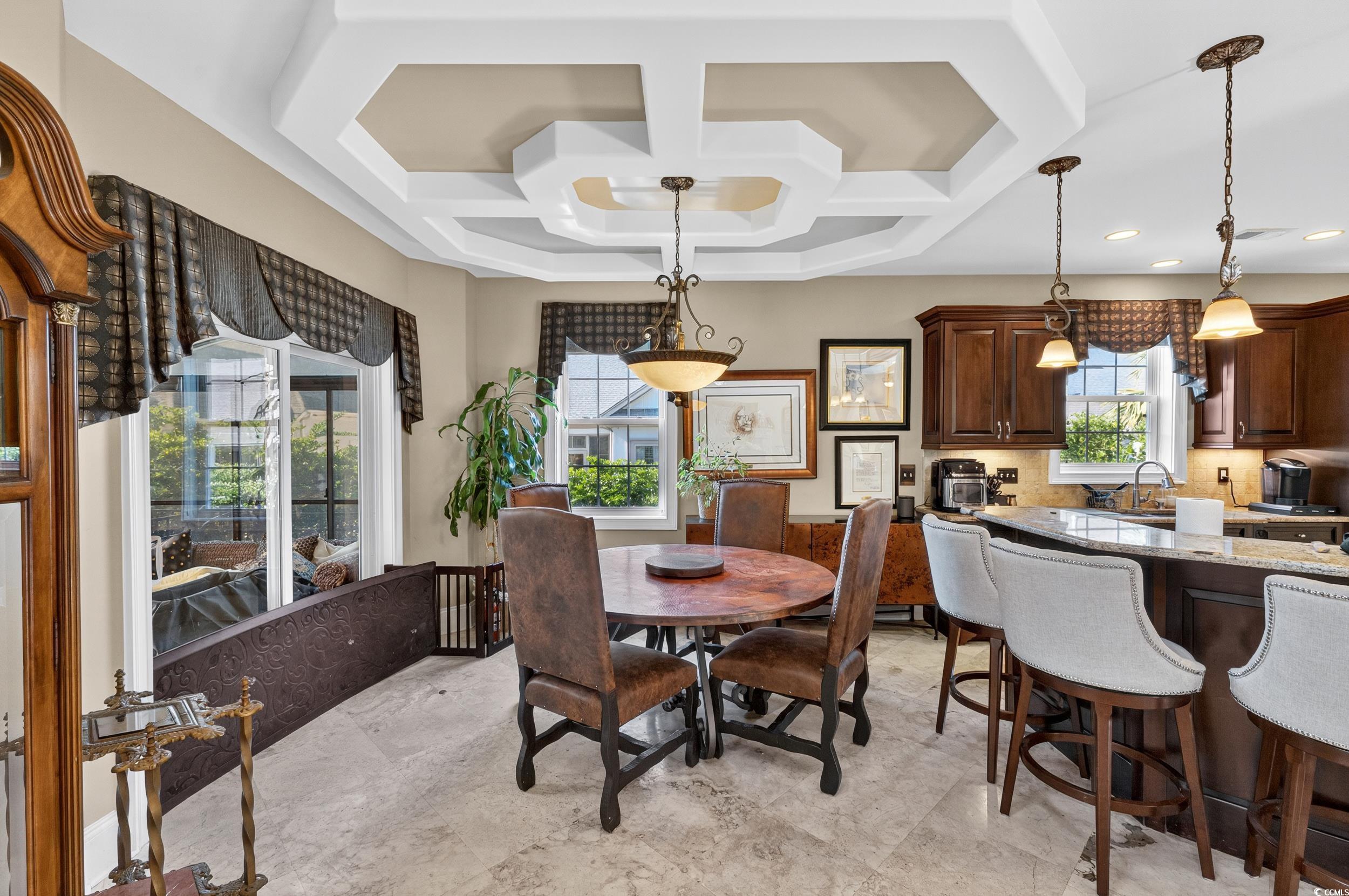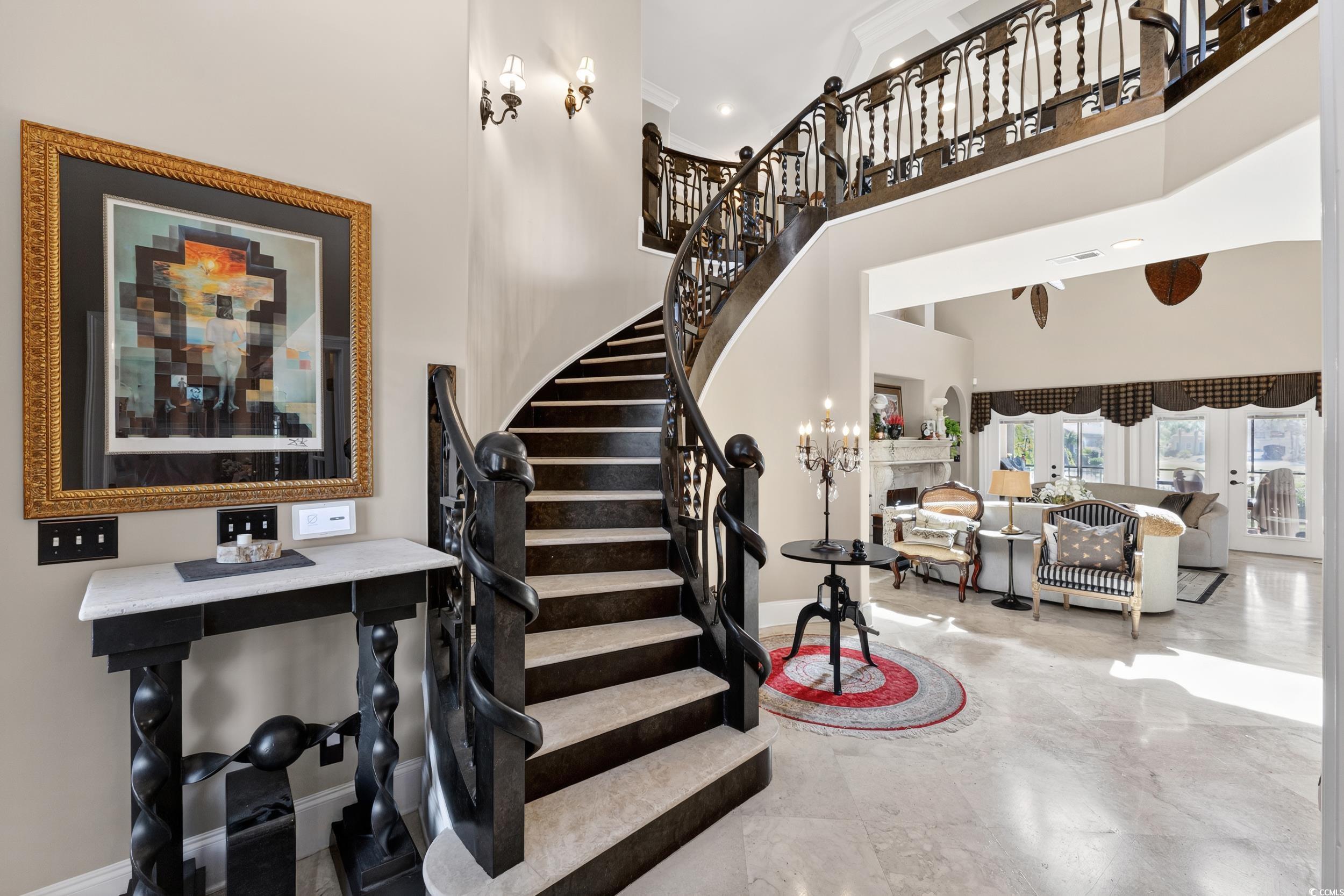 Exquisite Coastal Retreat in Bluffs on the Waterway! Luxury, Comfort, and Convenience in a Prestigious Gated Community Welcome to your dream home in the prestigious gated community of Bluffs on the Waterwaywhere luxury, comfort, and convenience meet the serene beauty of coastal living. This remarkable 5-bedroom, 3.5-bath residence was extensively updated in 2023 and features stunning upgrades and one-of-a-kind details throughout. Step into a grand interior with a breathtaking custom-designed metal and stone staircase and matching foyer table, both handcrafted by renowned artist Robert Sadlemire. The living room exudes elegance with soaring coffered ceilings and a beautiful stone fireplace, while the formal dining room impresses with its own coffered ceiling and built-in storage. Just off the foyer, a stylish powder room adds function and flair. For those who love to cook and entertain, the gourmet kitchen is a chefs delight, featuring dual sinks, double ovens, a gas cooktop, granite countertops, and high-end stainless steel appliances. The open layout connects seamlessly to the living area, perfect for gatherings with family and friends. Retreat to your private master suite on the main floor, complete with a cozy fireplace and a custom walk-in closet designed like a boutiquecomplete with floor-to-ceiling shelving, a center island with seating, and a chandelier overhead. Indulge in the spa-inspired master bath, which boasts a stand-alone copper soaking tub, copper tile inlays, and luxurious copper sinks and faucets. Quartzite countertops are featured throughout the master closet and bath. Enjoy peaceful mornings or relaxing evenings on the screened-in porch overlooking a tranquil pond and fountain. Additional highlights include an ice maker, dedicated wine closet, fully insulated interior walls for enhanced privacy and efficiency, and an oversized 2+ car garage with space for three vehicles and two tankless water heaters. The spacious laundry room features custom floor-to-ceiling cabinetry for maximum organization. Upstairs, youll find four generous bedroomstwo sharing a Jack-and-Jill bath, and two with access to a full bathroom. The walkway between two separate wings overlooks the magnificent living room below. A versatile bonus room offers the ideal space for games, entertaining, or family movie nights. Recent replacement of carpeting throughout the 2nd floor. As a resident of The Bluffs, youll enjoy amenities including a resort-style clubhouse, swimming pool, tennis courts, playground, private boat ramp, and secure boat storage along the scenic Intracoastal Waterway. Located in the coveted Carolina Forest school district, youll benefit from easy access to International Drive, Highway 31, and be just seven minutes from Myrtle Beach International Airport. This extraordinary home is the perfect blend of sophistication and comfortready to welcome its next owner. Dont miss your chance to own a piece of paradise in Bluffs on the Waterway. Contact your Realtor today to schedule a private showing. Check out the virtual tour!