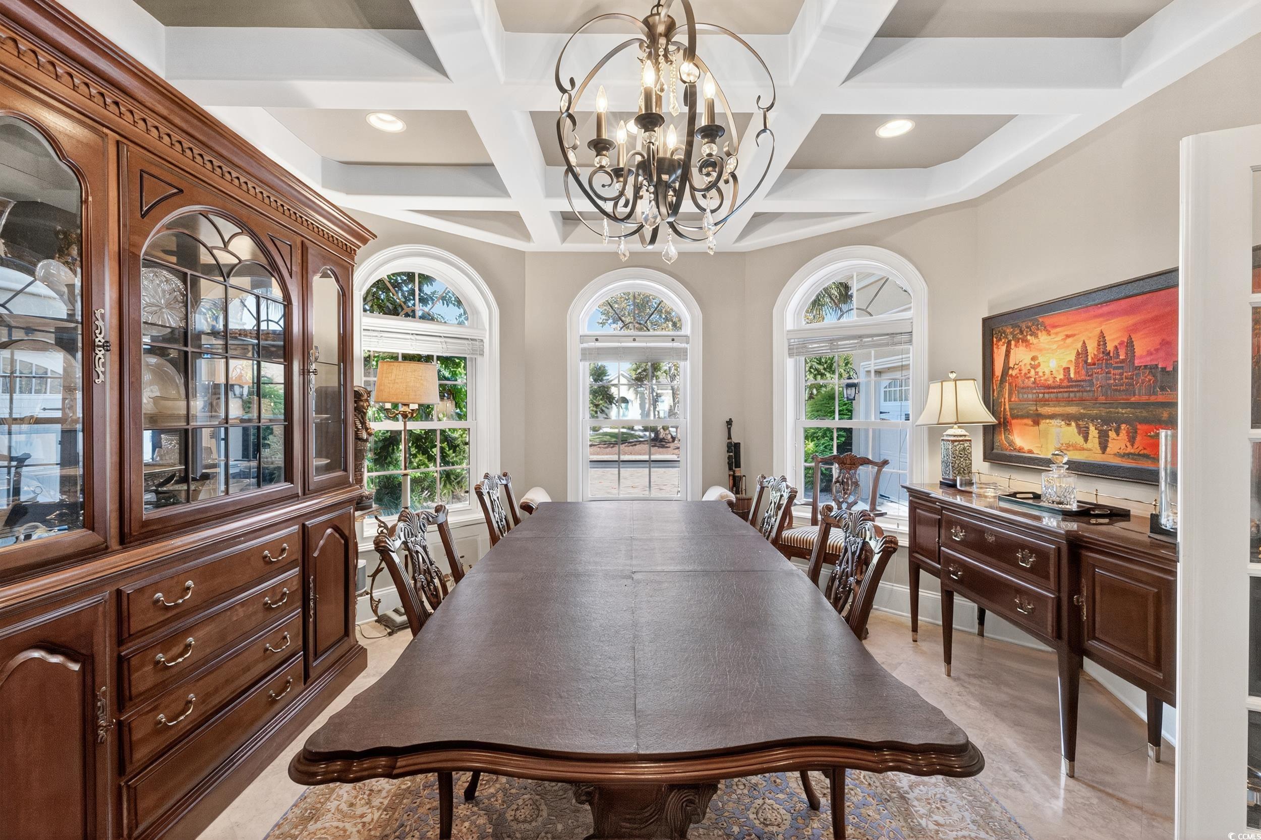 Indulge in sophisticated coastal living in this true 5-bedroom, 3.5-bath home located in the prestigious gated community - Bluffs on the Waterway. Extensively remodeled in 2023, this home is enhanced with numerous upgrades and thoughtful features. Upon entry there is a one-of-a-kind, custom stairway crafted by Robert Sadlemire. Further inside you'll find soaring coffered ceilings, a formal dining room, and a spacious bonus room offering flexibility for entertaining or family living. The gourmet kitchen features 2 sinks, a double oven, gas cooktop, granite countertops, stainless steel appliances, and flows seamlessly into the open living area highlighted by a gas fireplace. The master suite, conveniently located on the main floor, boasts its own private fireplace, a massive walk-in closet and a spa-inspired custom shower. Enjoy peaceful evenings or morning coffee on the screened-in porch overlooking the pond and fountain. Additional highlights include a wine closet, an oversized garage and fully insulated wallsboth interior and exteriorfor exceptional efficiency and privacy. Community amenities elevate the lifestyle even further, with a resort-style clubhouse, swimming pool, tennis courts, playground, private boat ramp, and secured boat storage along the scenic Intracoastal Waterway. Perfectly situated within the award-winning Carolina Forest school district, The Bluffs offers easy access to International Drive, Highway 31, and is only 7 minutes from Myrtle Beach International Airport. Dont delaycontact your Realtor TODAY to schedule your private showing!