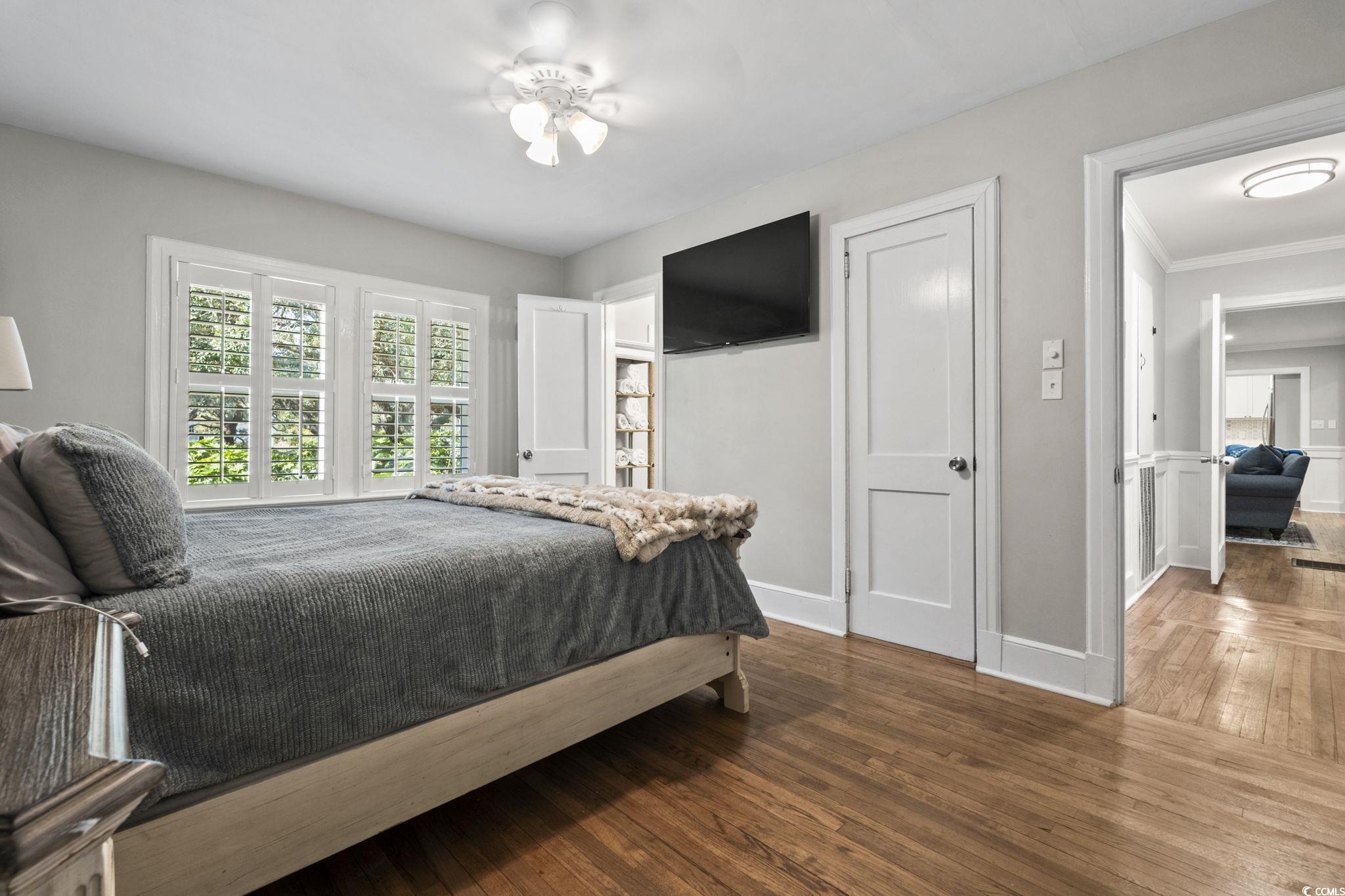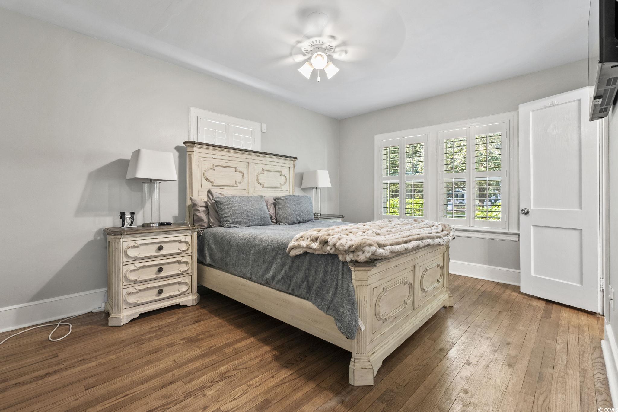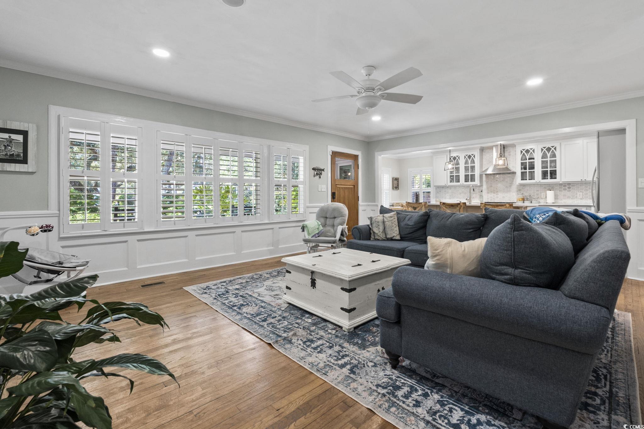 OPEN HOUSE - NOV 8, 12-3pm. Here is the one youve been searching for! Oceanside of Hwy 17 Business in Myrtle Beach, totally renovated, mother-in-law suite, screened porch, oak trees, and a short flip flop walk to the beach. This nostalgic yet modernized 4-bedroom, 4-bath property (which includes a newly added 1-bedroom, 1-bath mother-in-law suite) perfectly blends timeless charm with todays comforts. Originally built in 1946 and fully renovated from the ground up in 2019, the home offers peace of mind with extensive updates including all-new plumbing, electrical, sewer/electrical mains to the street, premium-grade shingles with structural roof reinforcements, Low-E impact-rated windows, updated insulation in both attic and crawlspace, and a high-efficiency 18 SEER HVAC system with variable speed air handler. Interior finishes showcase quartz and marble details, refinished original hardwood floors, plantation shutters, crown molding, wainscoting, and custom architectural woodworking that honor the homes history while delivering modern luxury. Additional upgrades include a natural gas tankless water heater, whole-home water filtration with booster pump, circular driveway, 8-zone irrigation, and custom fencing with gated golf cart access. In 2021, a rear building was added featuring spray foam insulation, impact-rated windows and doors, Cat 6 internet, generator transfer switch, mini-split HVAC, and its own tankless water heaterdesigned to serve as a hurricane-ready lifeboat or versatile bonus space. Outside, the fenced yard includes Astroturf play areas, pet/child-friendly zones, and a movable golf cart deck. Perfectly located just minutes from the beach, shopping, restaurants, and entertainment, this property offers not only a beautiful home but also a lifestyle in the heart of Myrtle Beach. Dont miss your chance to make this rare find your own!