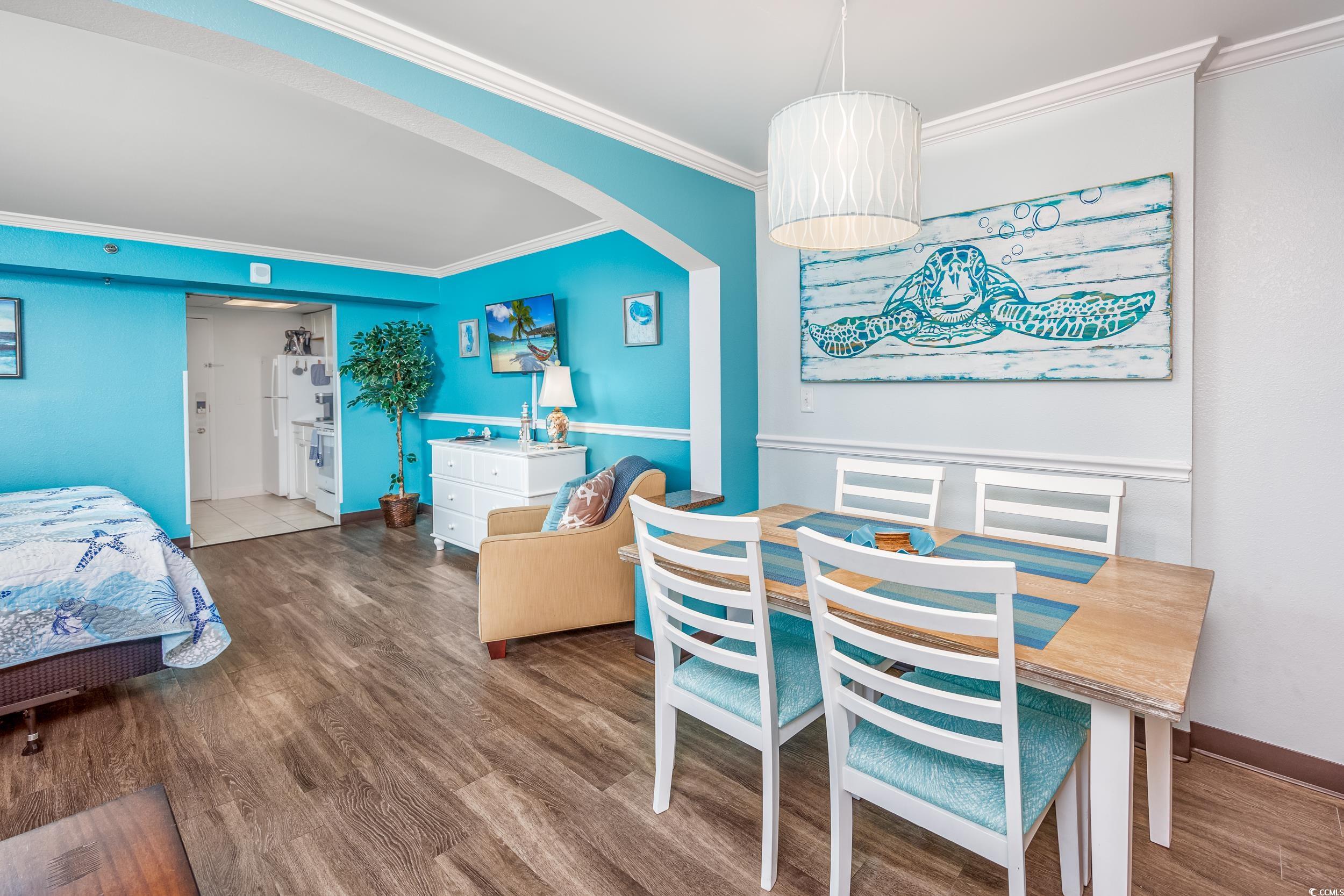 Wake up to breathtaking ocean views from this oversized studio in the highly sought-after Caravelle Resort! Perfectly positioned on the south side of the resort, this spacious 4th-floor efficiency offers a prime vantage point overlooking the pools and resort amenities. Featuring a king sized bed, a cozy sitting area with a couch, and a dining table for four, this unit is designed for comfort and convenience. The well-appointed kitchen makes vacation living a breeze. The Caravelle Resort is a full-service oceanfront destination with top-tier amenities, including a lazy river, multiple indoor and outdoor pools, a fitness center, an arcade, an on-site restaurant and bar, a tiki bar, and even an ice cream shop! Plus, enjoy the convenience of attached parking - right on the same floor as this condo for easy access. Located on the northern end of Myrtle Beach on 69th Ave N, you're just minutes from premier dining, shopping, entertainment, and the vibrant attractions of the Grand Strand. Whether you're looking for a personal beach retreat or a lucrative short-term rental investment, this ocean-view studio is a fantastic opportunity. Don't miss your chance to own a slice of paradise - schedule your showing today! Measurements are not guaranteed. Buyer is responsible for verifying. Please ask your agent about lender closing costs incentives for this property.