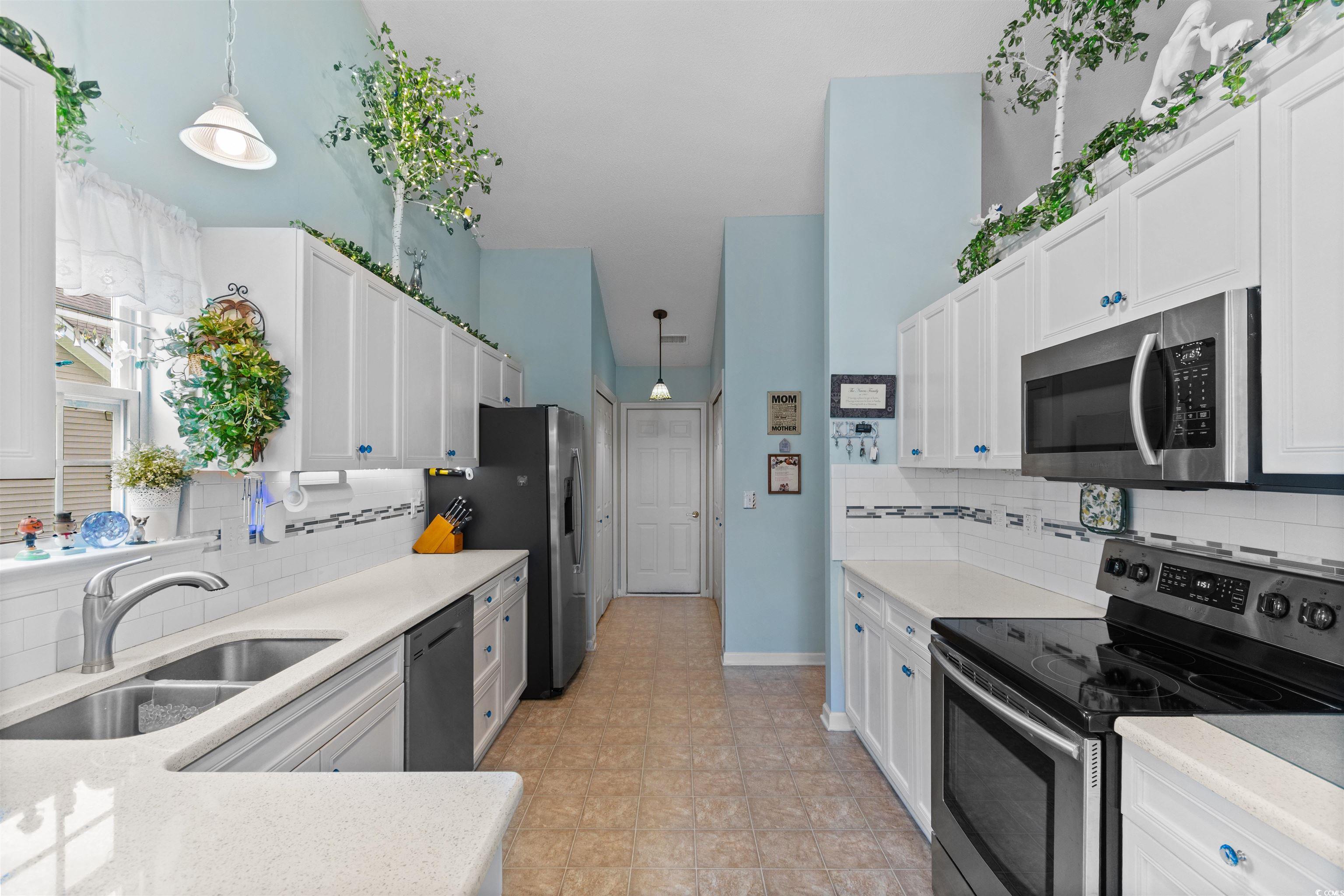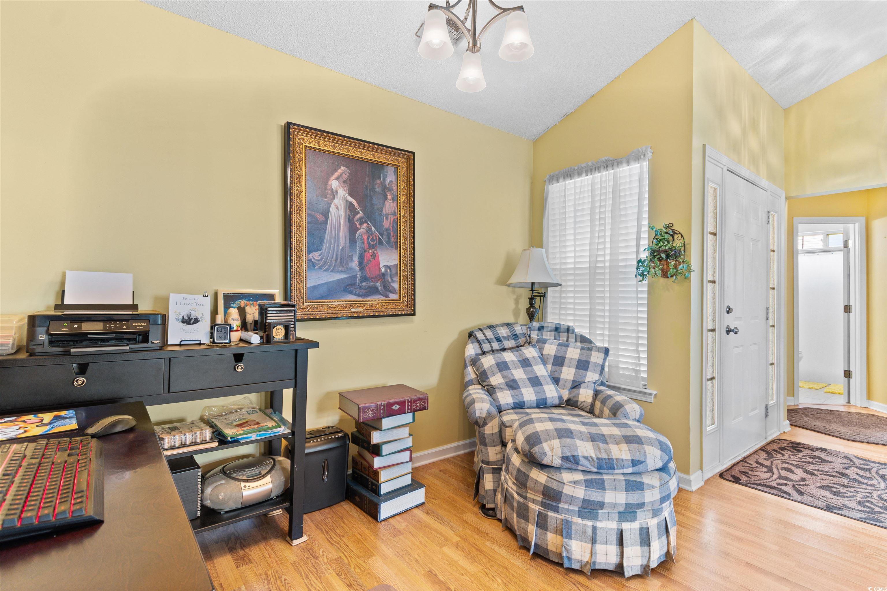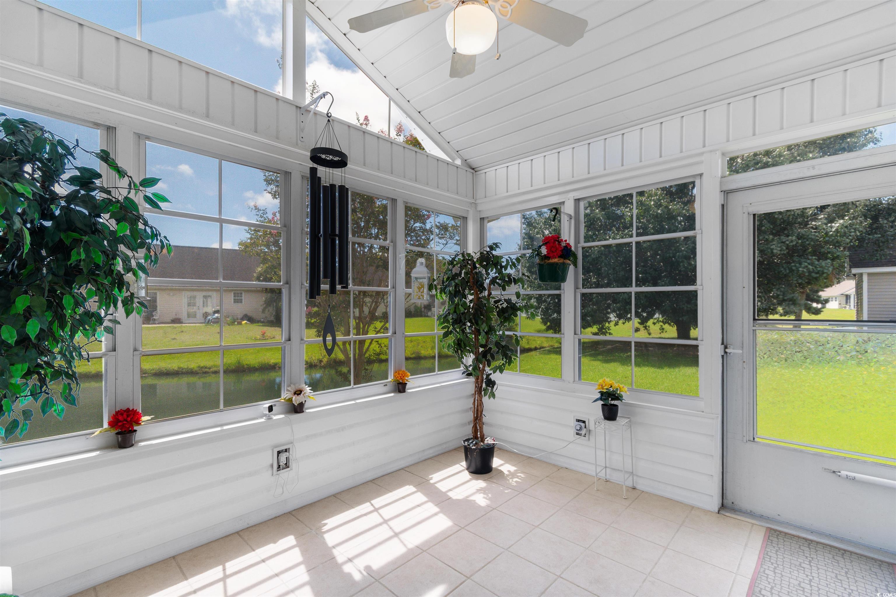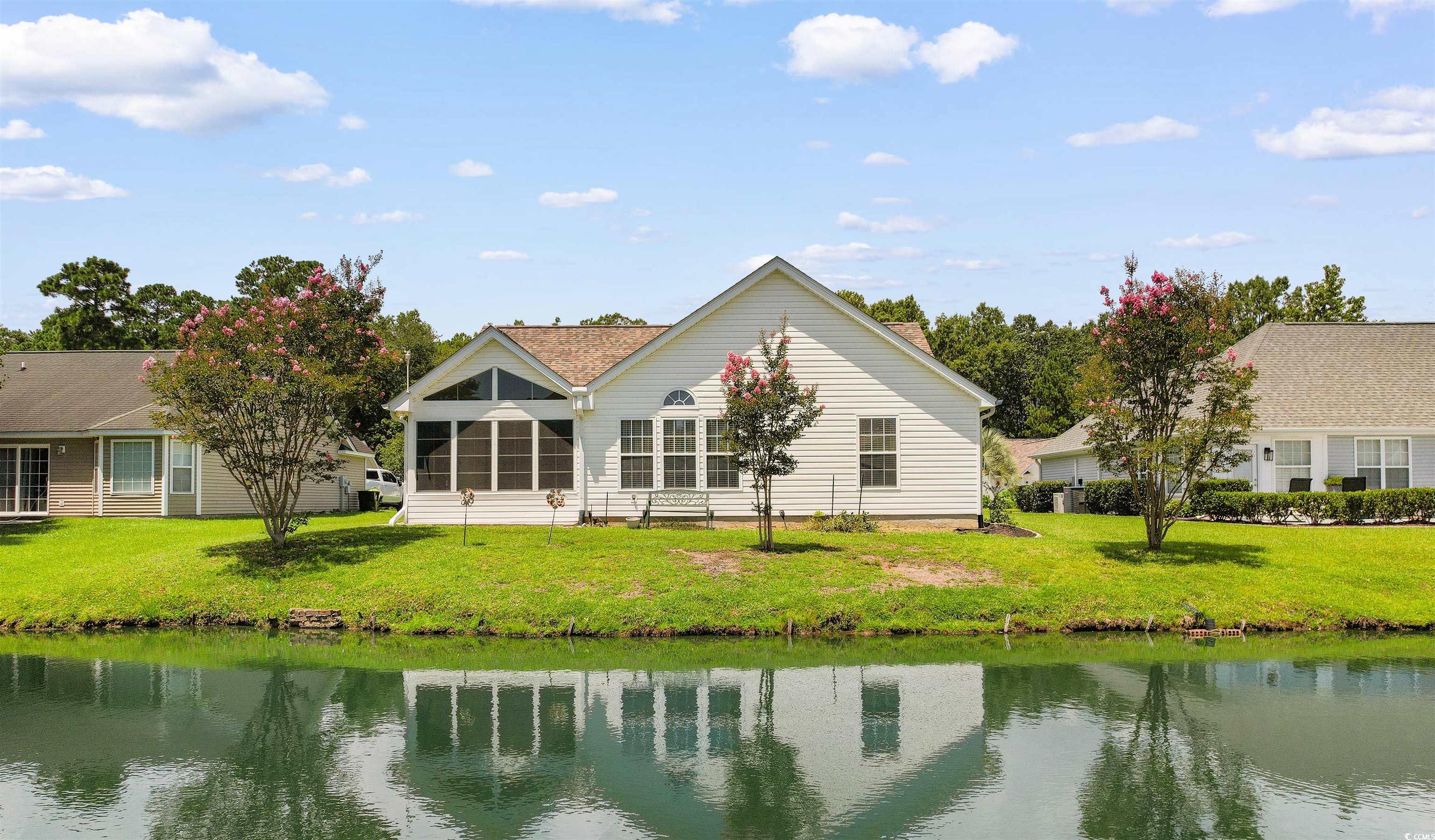This charming 3-bedroom, 2-bath home offers the perfect blend of comfort, thoughtful updates, and a peaceful pondside settingjust minutes from the beach, Market Common, and a wide range of shopping and dining. Inside, vaulted ceilings and engineered hardwood floors in the main living areas create a warm, open feel, while the kitchen features ample cabinetry and counter space, under-cabinet lighting, a new GE stainless steel refrigerator (12/2023), and a sunlit eat-in dining area. A formal dining room adds even more flexibility for entertaining. The primary suite is a true retreat, featuring vaulted ceilings, a large walk-in closet with attic storage access, and a private en suite bath with a soaking tub. Two additional bedrooms share a second full bathroom with a walk-in shower. These rooms offer flexible space for hosting guests or setting up a home office or hobby area. The enclosed sunroom, overlooking the pond, is perfect for relaxing or entertaining year-round and features new porch screens and tinting (4/2024). Additional highlights include a new roof (10/2021), new AC unit (3/2020), Air Scrubber by ActivePure (2/2025), new washing machine (7/2025), updated fire alarms (2017, with annual battery replacement), fresh air filter (2/2025), and a two-car garage with overhead attic storage. Located in the desirable Peninsula at Palmetto Pointe, this home combines peace, convenience, and pride of ownershipideal as a full-time residence or coastal retreat.