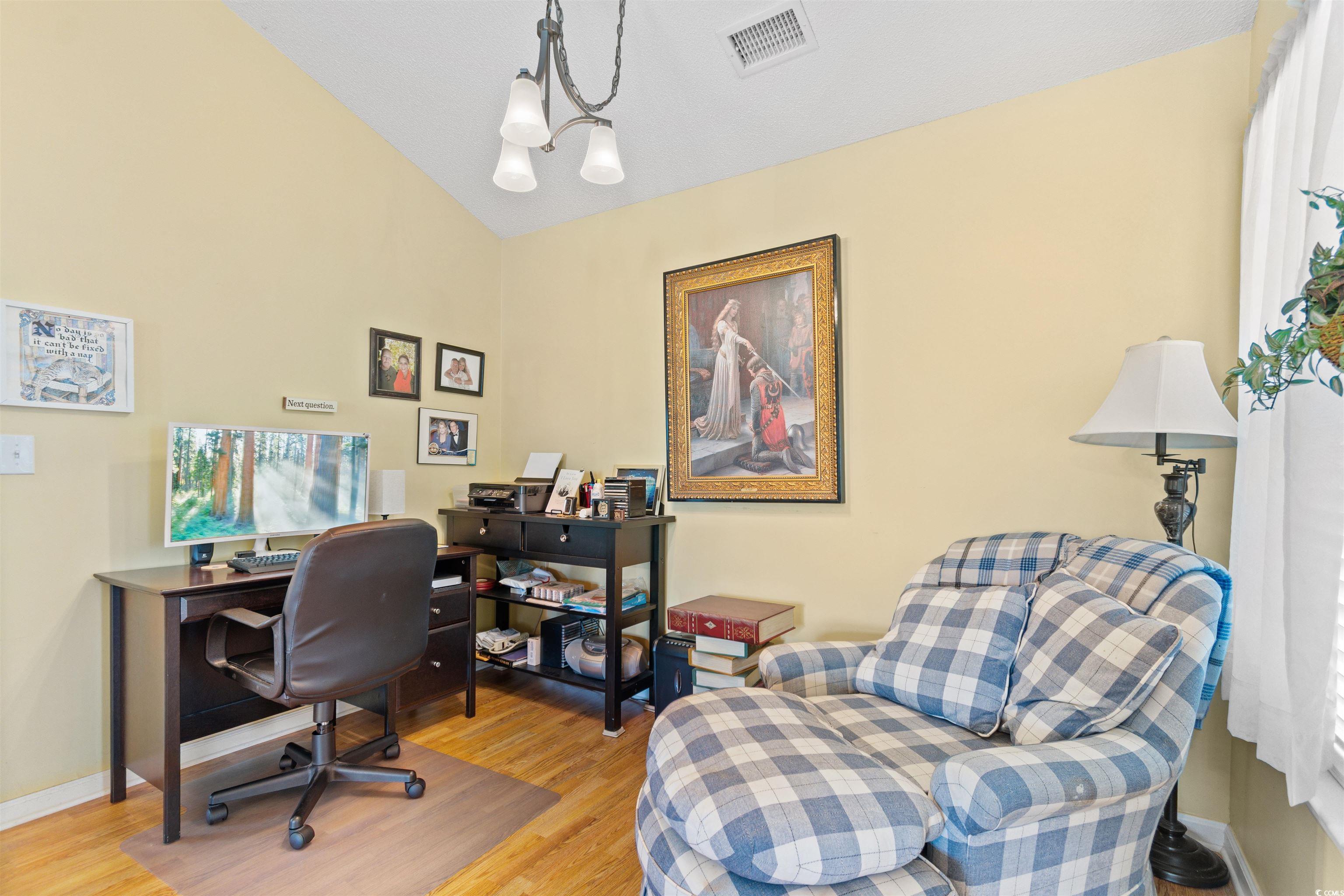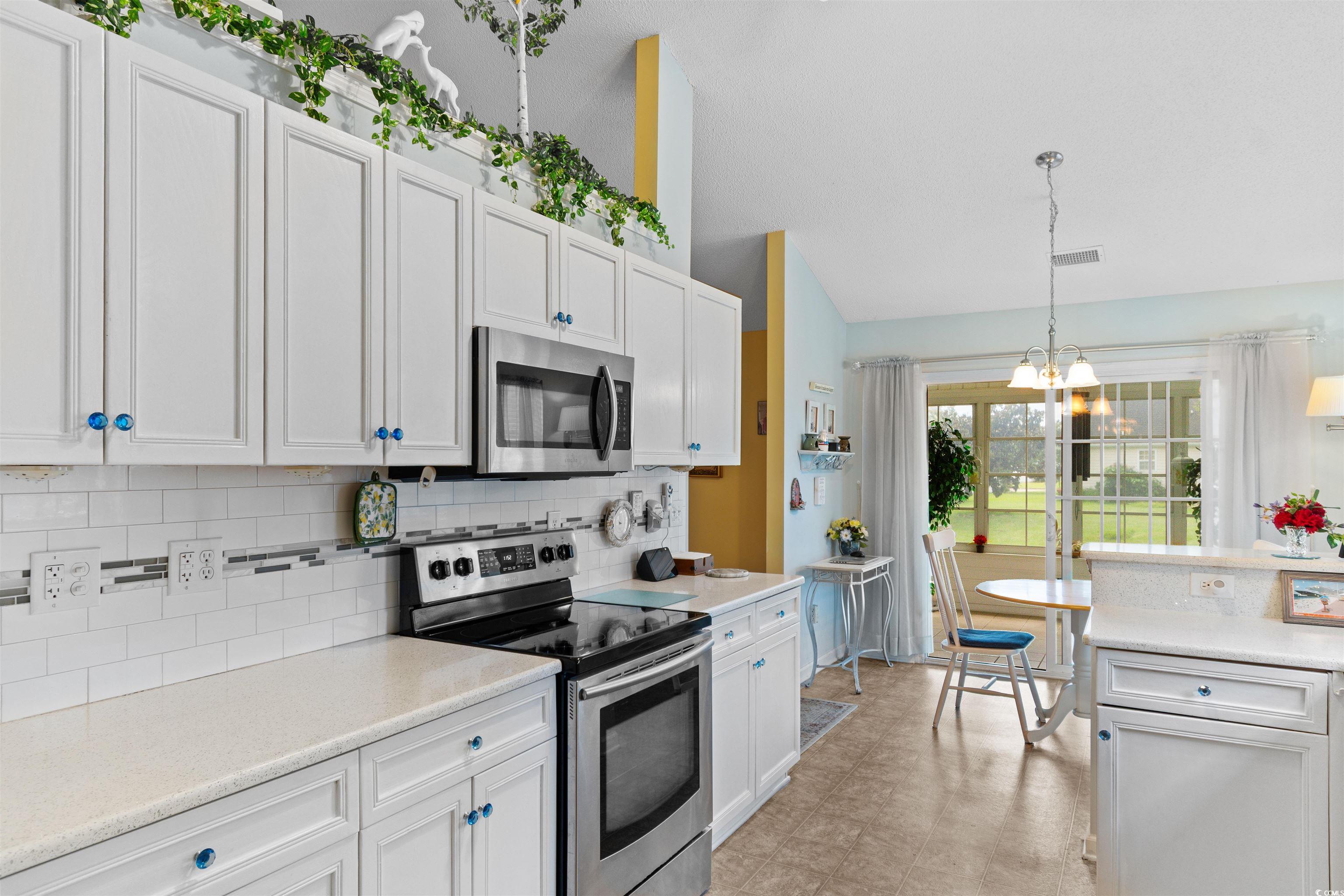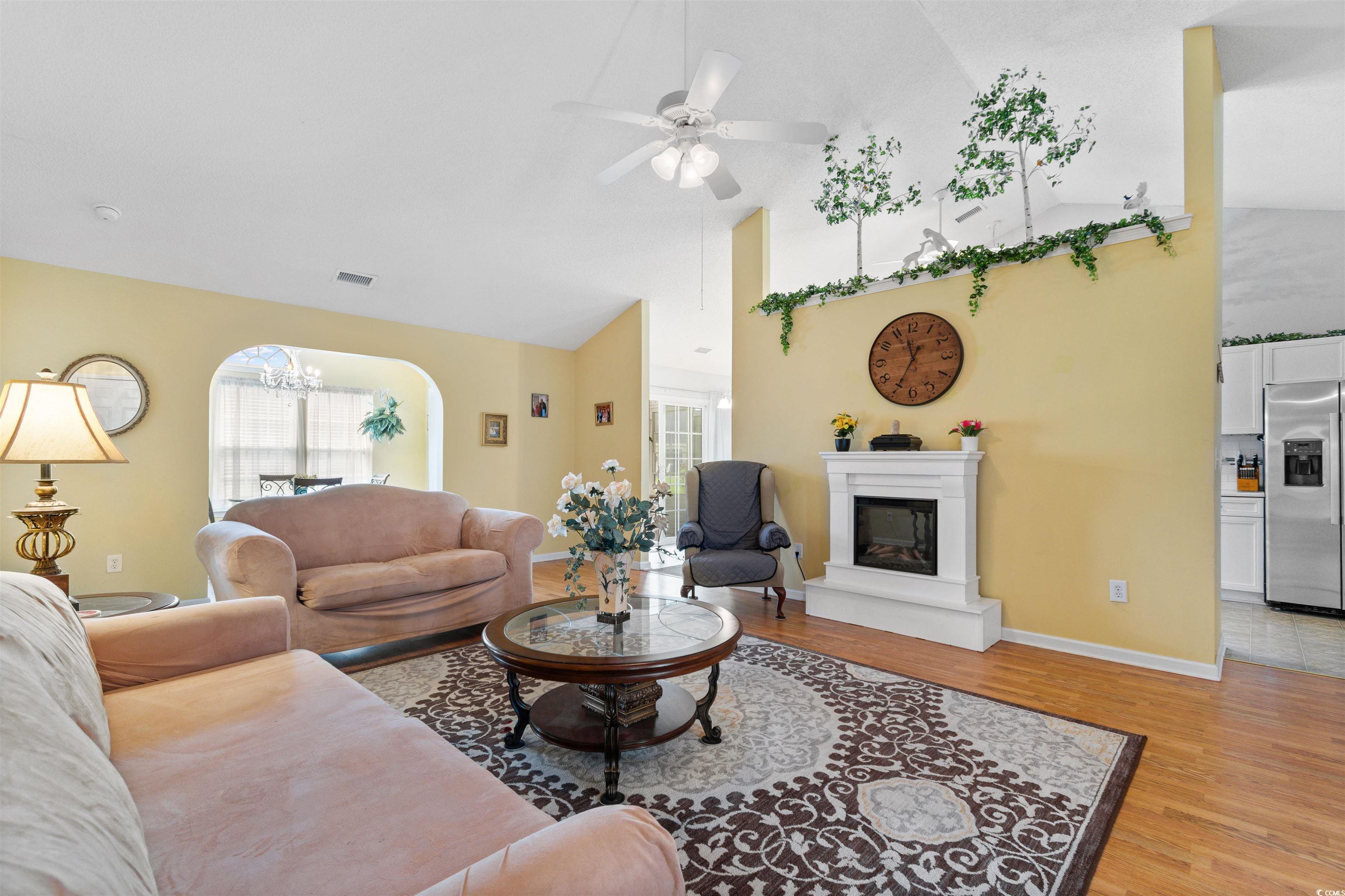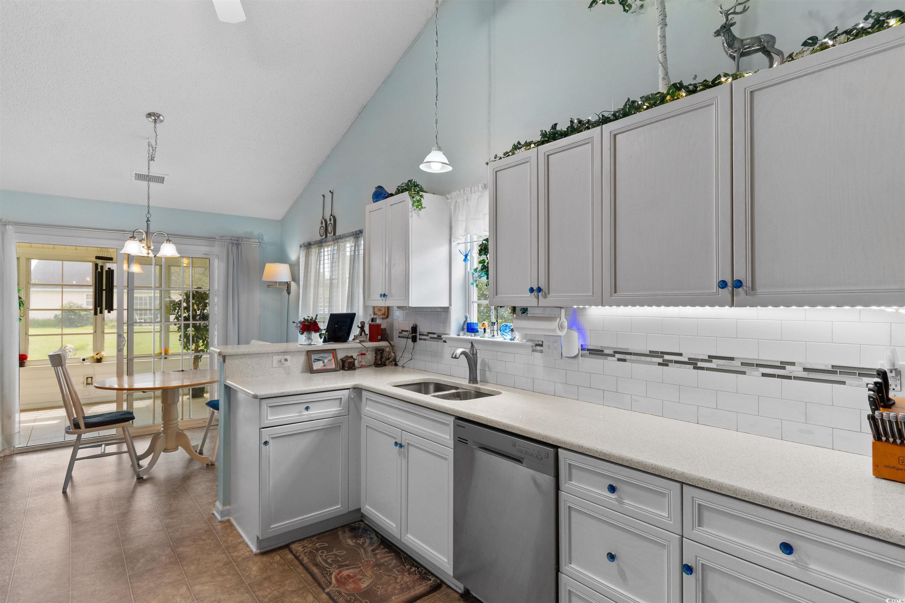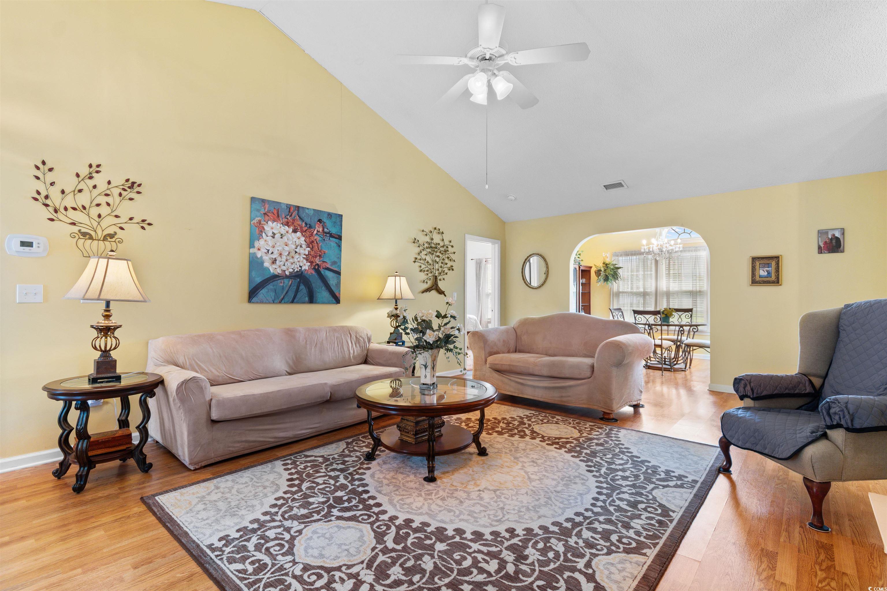 This charming 3-bedroom, 2-bath home offers the perfect blend of comfort, thoughtful updates, and a peaceful pondside settingjust minutes from the beach, Market Common, and a wide range of shopping and dining. Inside, vaulted ceilings and engineered hardwood floors in the main living areas create a warm, open feel, while the kitchen features ample cabinetry and counter space, under-cabinet lighting, a new GE stainless steel refrigerator (12/2023), and a sunlit eat-in dining area. A formal dining room adds even more flexibility for entertaining. The primary suite is a true retreat, featuring vaulted ceilings, a large walk-in closet with attic storage access, and a private en suite bath with a soaking tub. Two additional bedrooms share a second full bathroom with a walk-in shower. These rooms offer flexible space for hosting guests or setting up a home office or hobby area. The enclosed sunroom, overlooking the pond, is perfect for relaxing or entertaining year-round and features new porch screens and tinting (4/2024). Additional highlights include a new roof (10/2021), new AC unit (3/2020), Air Scrubber by ActivePure (2/2025), new washing machine (7/2025), updated fire alarms (2017, with annual battery replacement), fresh air filter (2/2025), and a two-car garage with overhead attic storage. Located in the desirable Peninsula at Palmetto Pointe, this home combines peace, convenience, and pride of ownershipideal as a full-time residence or coastal retreat.