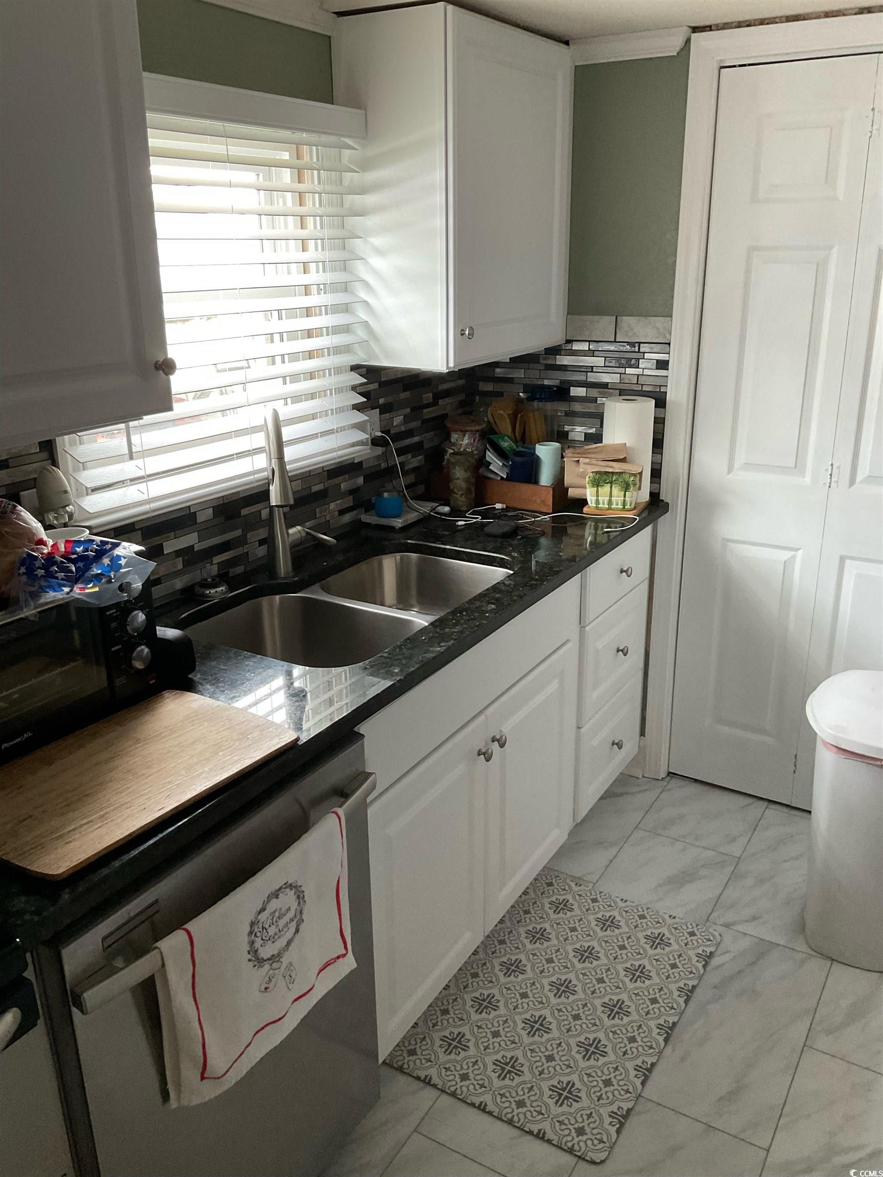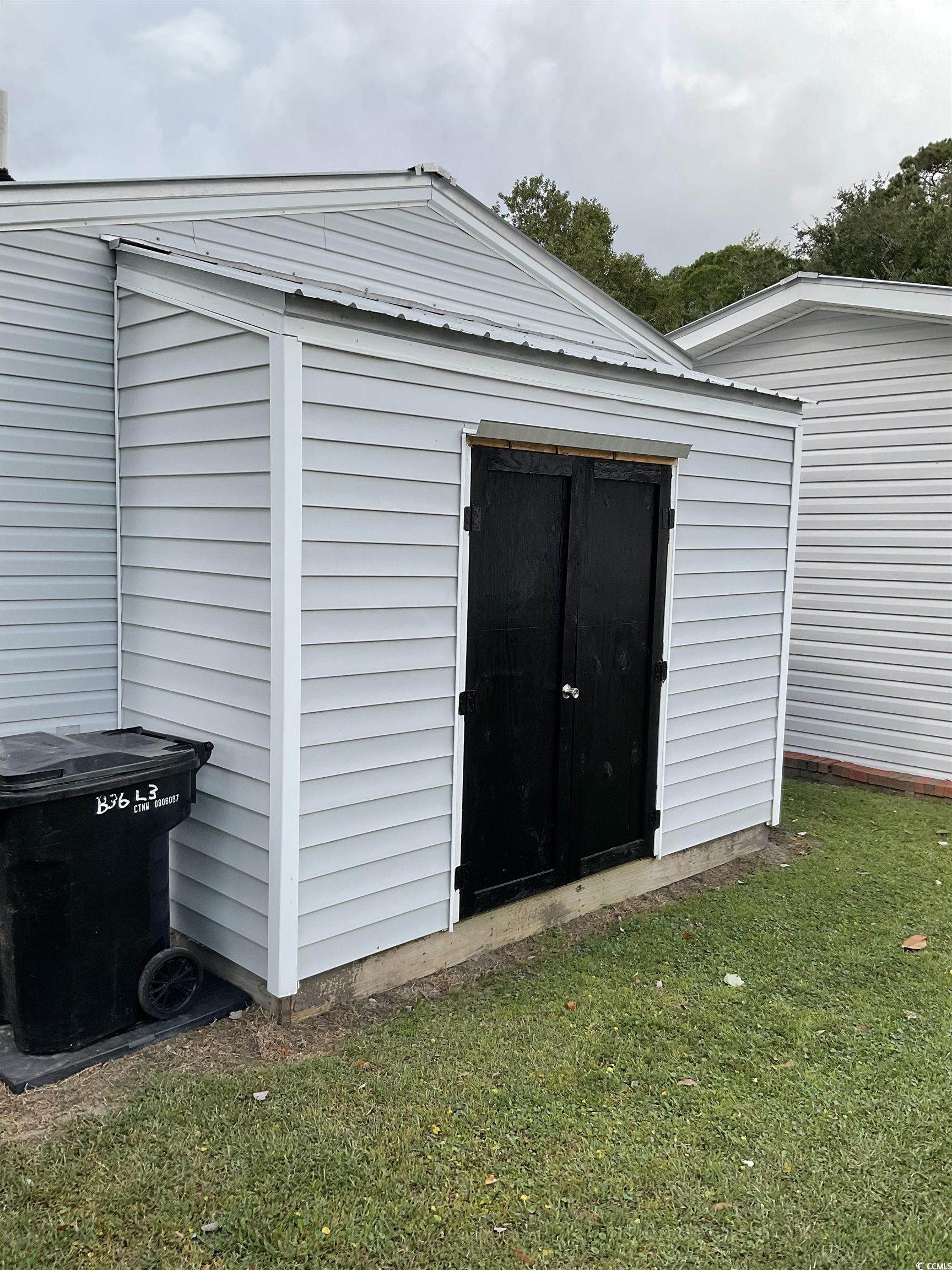 The home is a one owner, contractor's home and it shows!! Features you would only expect in high end residential properties. Beautiful premium grade Granite Countertops including an eat at bar and a built in Granite dinette!! Washer & Dryer room that is also a pantry space off the kitchen. When was the last time you saw an extra half bath in a manufactured home?! Two en-suites including a Master with a huge bathroom entered by sliding frosted cottage doors with a beautiful shower area!! Upgrade real hardwood floorings including real nail down Bamboo!! Heated and cooled Carolina Room is a delight!! For those Spring and Fall days there is a 32' Screened in Porch to enjoy the weather without the pest. All doors full size residential and windows have been changed out to vinyl residential quality units. Outdoor Kitchen area is great bonus!! Outdoor storage building is huge while being heated and cooled!! Storage building has covered patio area and they convey!!! There is also a large built on storage area for your yard tools and furniture!! All this in an extremely convenient location within walking distance of one of the highest rated elementary schools in the county!! Also walking distance to the large spring feed lake that gives the neighborhood it's name. Very close to the Market Commons, MB State Park, two Walmarts, and dining and entertainment!! It is very hard to get this close to the beach and all the southend offers at this price point!! Don't wait!!
