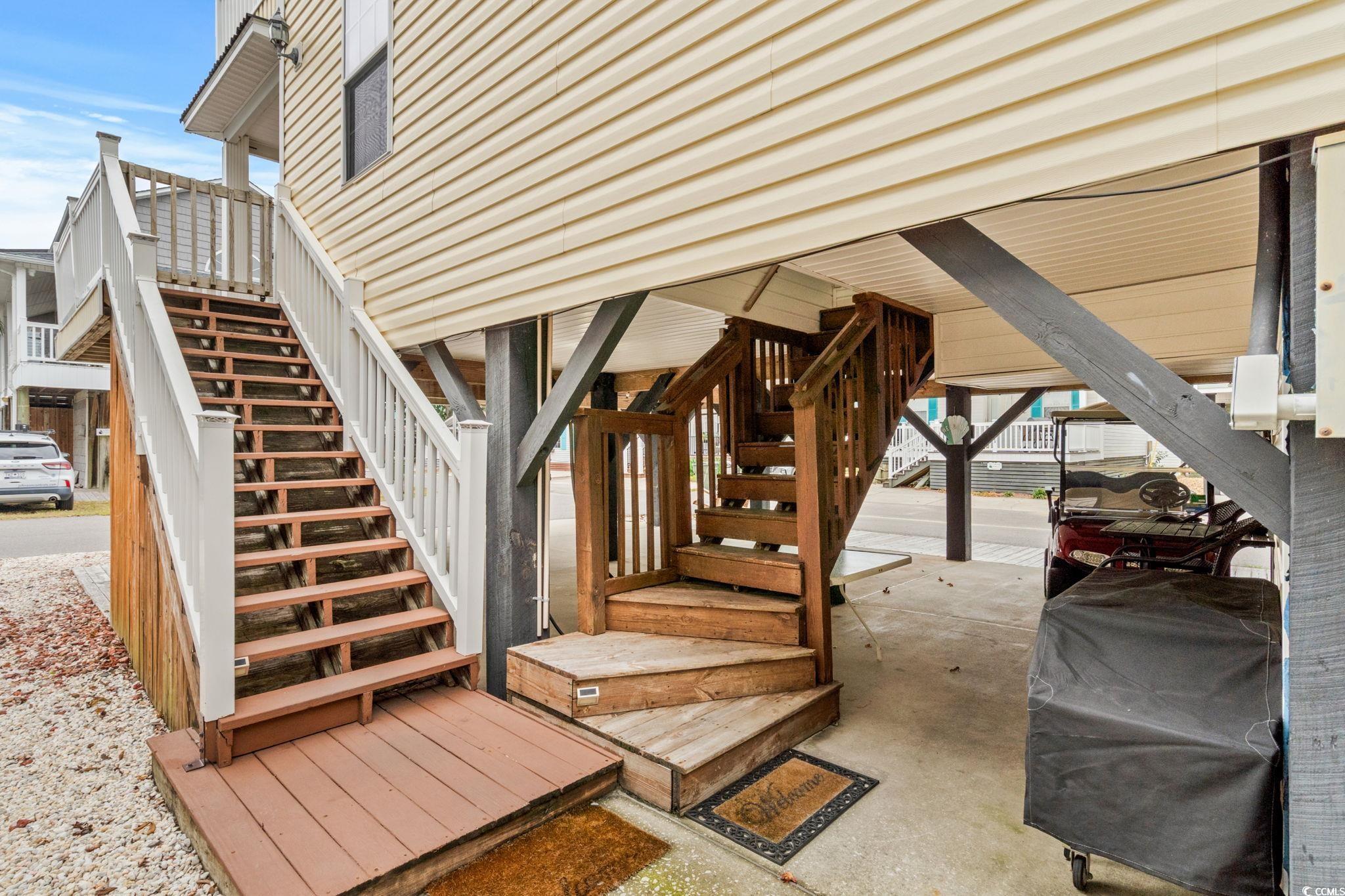 Welcome to 8072 in Ocean Lakes! This CORNER LOT North facing 4 bedroom 3 bath raised beach house is a must see, located in the desirable 8000 section of Ocean Lakes and being sold fully furnished. This incredible home has side steps leading to a large covered deck that wraps-around to the Eastside of the home, covered steps leading into this home, plenty of parking, and a golf cart garage. Entering inside this beauty is large living room to the right, dining area with high-top table with seating for 8 and reading nook with a recliner. Kitchen has granite counters, breakfast bar with seating for 2, plenty of cabinets, and pantry. The covered steps leads into the kitchen for easy access with groceries. First floor bedroom has a king size bed with attached bedroom with tub/shower combo. Upstairs is another HUGE primary bedroom with attached bath and private access to the upstairs deck. This bedroom has a king size bed and full bath has a tub/shower combo. Bedroom #3 has a queen bed with access to full bath #3 and bedroom #4 also has a queen bed. Full size washer/dryer is located upstairs across from full bath #3. Enclosed outdoor shower with hot and cold water is located on the Westside of the home, ground level. Don't delay, schedule your showing today!