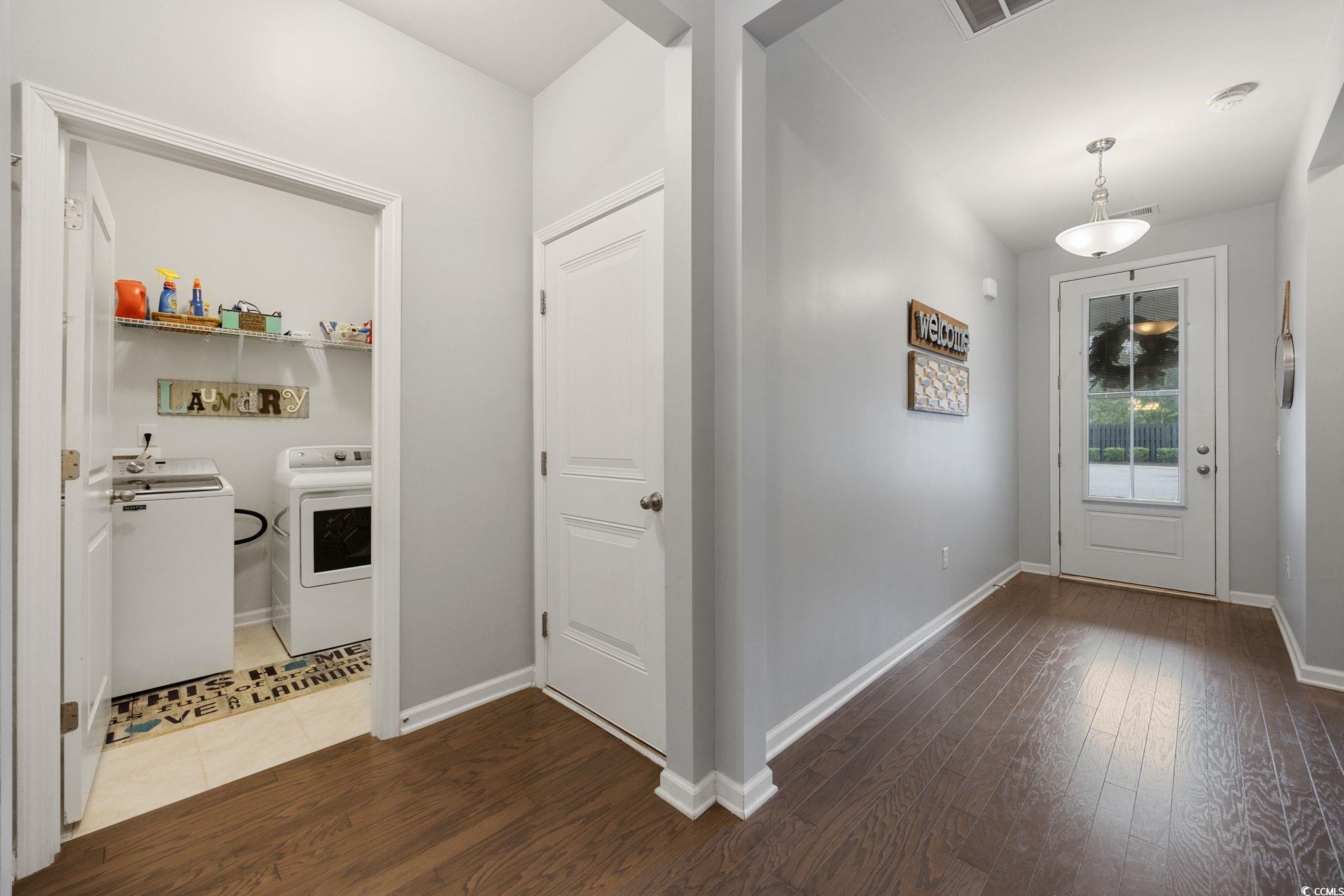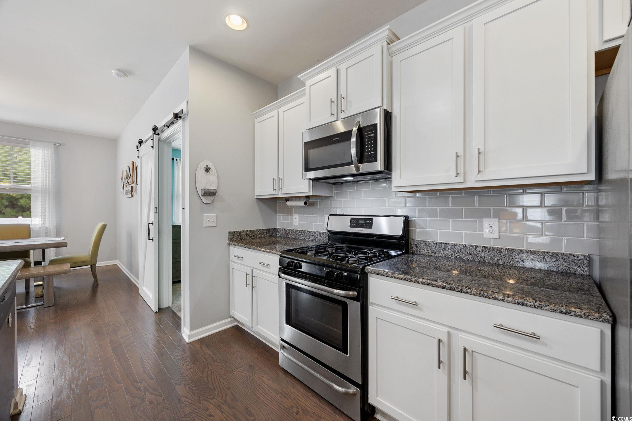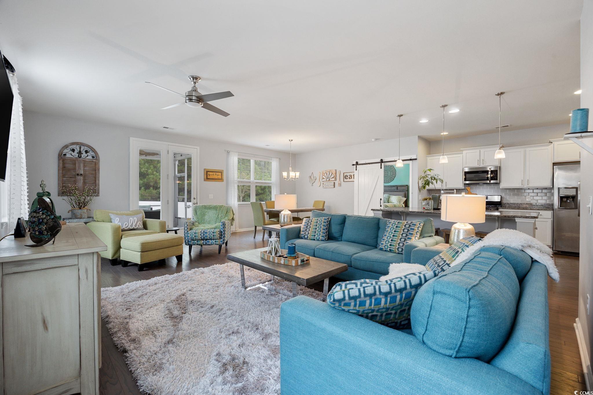 Welcome home to this move-in ready 3-bedroom, 2-bath home tucked away in Hidden Brooke. Located in Little River near the North Myrtle Beach line and in the highly desirable North Myrtle Beach school district, this home full of upgrades has everything you need. This unbeatable location is on a private cul-de-sac and backs up to peaceful, protected woods for extra privacy. Inside, youll find an inviting foyer leading into an open-concept floor plan with a split-bedroom design. The kitchen includes granite countertops and an island with a breakfast bar, complemented by stainless steel appliances and a chic tile backsplash. It seamlessly flows into the dining area and living room, both filled with abundant natural light. The spacious master suite showcases a sliding barn door entry, walk-in closet, and a spa-like ensuite bath with dual vanities, a soaking tub, and a glass-enclosed shower. Additional highlights include LVP flooring throughout the main living areas, carpeted bedrooms, tiled bathrooms, and a dedicated laundry room with washer and dryer hookups. Step outside to enjoy a screened-in porch, extended patio, and a large privacy-fenced backyard, perfect for relaxing or entertaining. Complete with an attached two-car garage, this home truly offers the best of comfort and convenience in a prime location. Amenities include a spacious community swimming pool and a serene pond. Book your showing today!