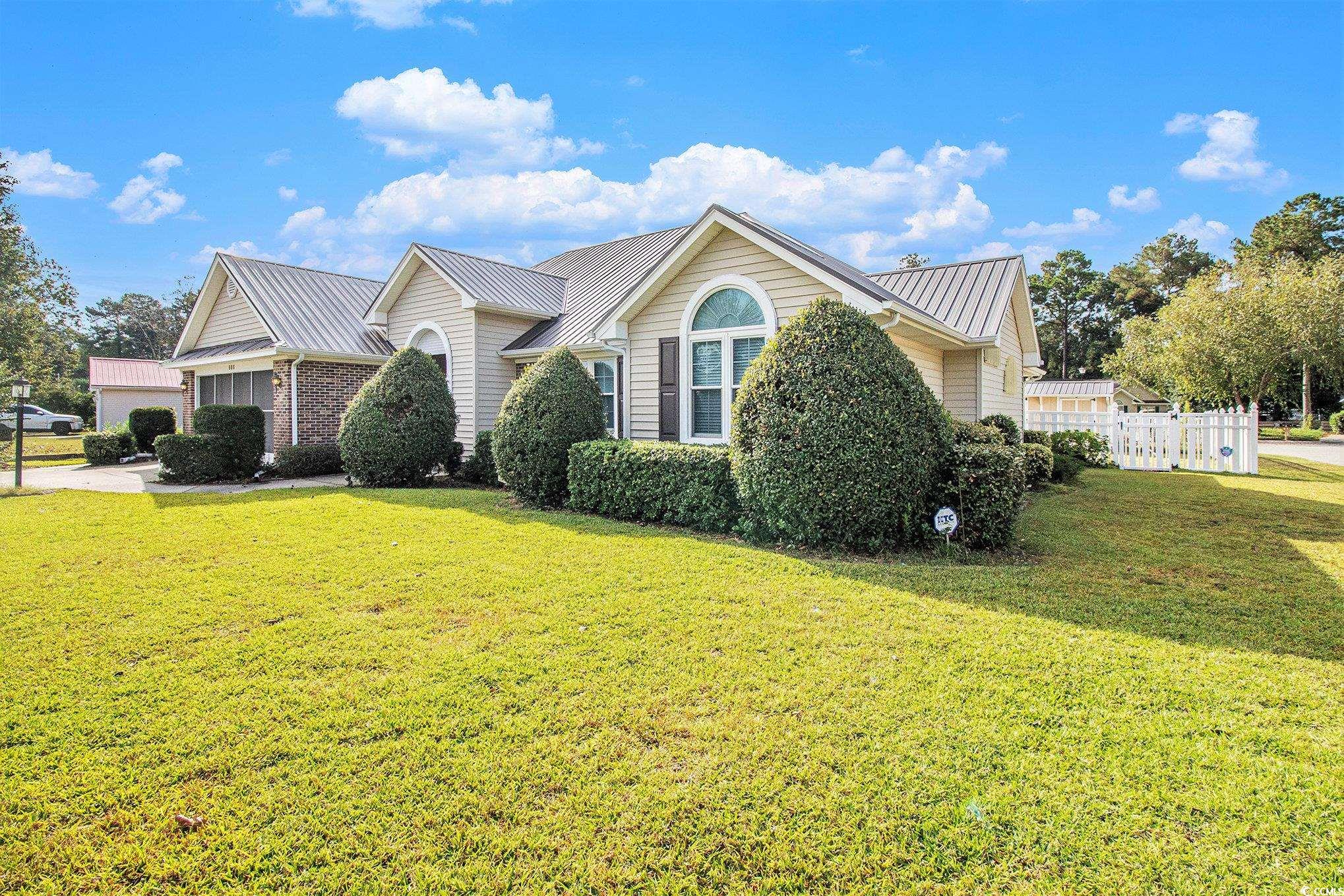 Welcome to 886 Castlewood Drive, a charming single-story 3-bedroom, 2.5-bathroom home located in the desirable non-HOA community of Castlewood. This well-maintained property boasts hardwood flooring throughout, giving it both elegance and durability. The living room features vaulted ceilings and a cozy gas fireplace, creating the perfect space to relax or entertain. Step outside to your own private oasis with an in-ground pool, ideal for cooling off on warm days. Situated on a corner lot, the fenced-in yard provides plenty of space and privacy. A bright Carolina room offers a versatile area for year-round enjoyment. The property also includes a detached pool house / shed with a convenient bathroom, perfect for guests or outdoor entertaining. A screened porch extends the living space, providing a comfortable spot to enjoy the outdoors. Recent updates include a new roof just 2 years ago, a water heater replaced last year, and a recently upgraded HVAC system. An attached two-car garage provides additional convenience and storage. Inside, the home is filled with natural light, highlighting the thoughtful layout and spacious design. The primary suite offers comfort and privacy with an attached bath. Additional bedrooms provide flexibility for family, guests, or a home office. With easy access to Hwy 501 and Hwy 544, you can be at the beach, dining at local restaurants, or shopping within minutes. The combination of updates, features, and location make this home a standout opportunity. Don't let this one get away--schedule your private tour today!