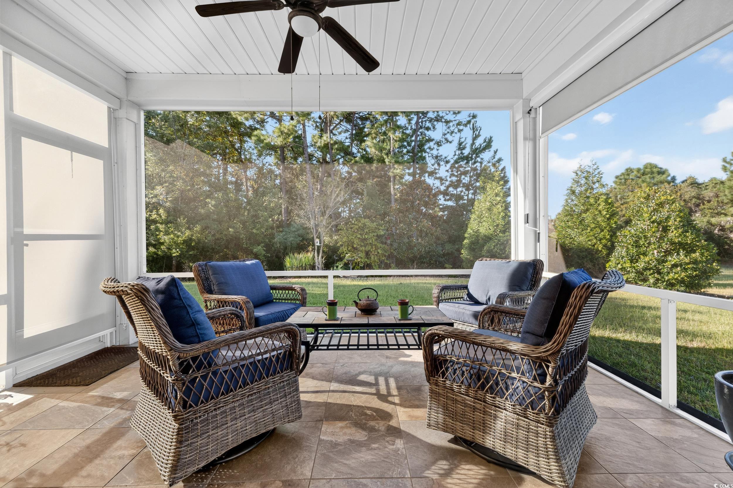 Welcome to Tuscany-Carillon, a beautiful gated 55+ community in Myrtle Beach with amenities galore including personal lawn maintenance and landscaping! This gorgeous move in ready home has all the upgrades including a whole house Generac generator, whole house water filtration system, guardian security film on all of the windows, extended screened in porch with custom pull down shades and tile floors, new flooring throughout, quartz countertops, custom tile shower in primary suite as well as an enormous walk in closet with tile floors, attic fan, meticulously landscaped yard, paver BBQ area and walkway, aerial digital antenna, keyless entry, freshly painted with Sherwin Williams paint, and motorized screen for the garage door. This home features 3 bedrooms, a flex room currently used as an office, 2 bathrooms, spacious kitchen with a generous kitchen island and adjacent dining area and walk in pantry with ventilated shelving, lots of storage, and custom blinds for the windows. There is nothing to do but move in. Schedule your private showing today!