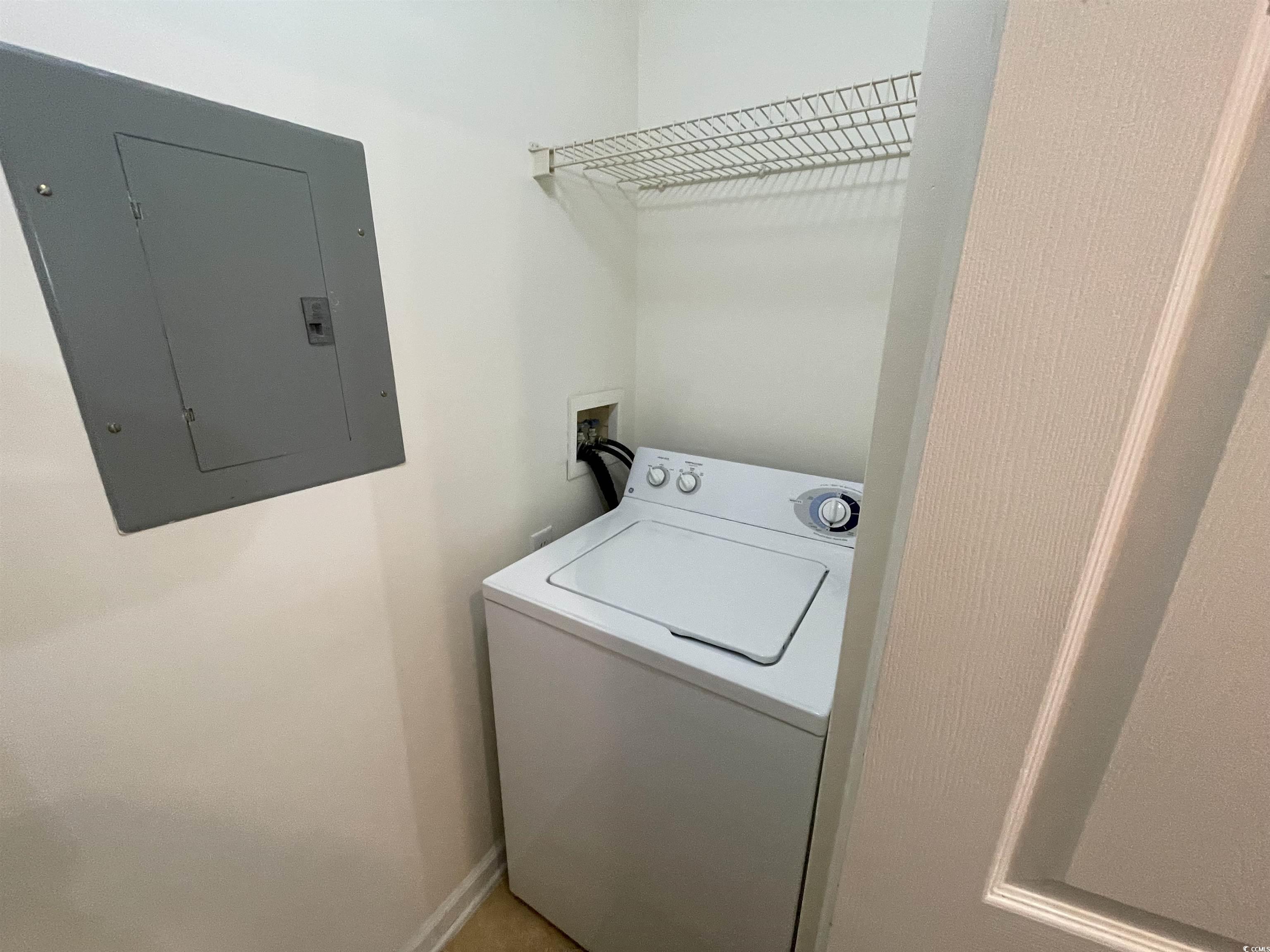 ONLY 0.8 miles to beach access, where you can have your toes in the sand in approx. 4 minutes! This top-floor one-bedroom condo is located in a beautiful gated community with resort-style amenities including a sparkling pool & hot tub, clubhouse, fitness center, a car care center, and well-manicured grounds. Enjoy the perfect blend of comfort and convenience, with an open floor plan, abundant natural light, and a private balcony to take in the views. With its unbeatable location near shopping, dining, and entertainment, plus just minutes to the sand, this condo is the perfect opportunity to own your slice of the beach life. New microwave & toilet 9/2025 Washer & Dryer stay with the unit!