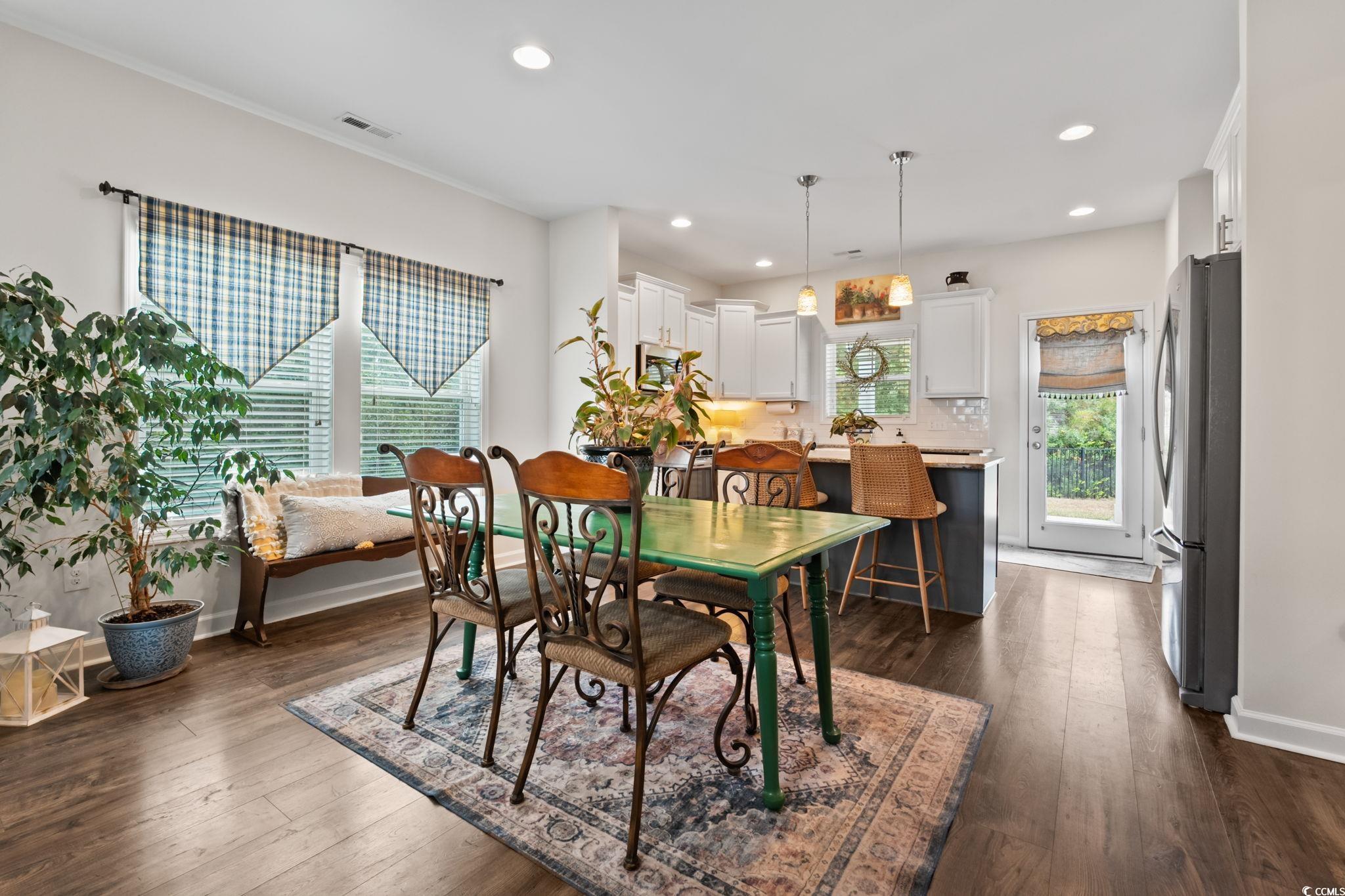 Nestled on a quiet cul-de-sac, this spacious 4-bedroom, 2.5-bath home offers the perfect blend of privacy, comfort, and convenience with easy access to both North Myrtle Beach and Myrtle Beach. Enjoy close proximity to top-rated golf courses, premier shopping, hospitals, endless entertainment attractions, and of course, the beach! Thoughtfully designed and beautifully upgraded, the home features a stunning kitchen complete with stainless steel appliances, granite countertops, a farmhouse sink, tiled backsplash, and ample cabinet space ideal for entertaining or quiet family dinners. The first-floor primary suite is a true retreat, boasting a tray ceiling, bay windows with peaceful views, a large walk-in closet, and a luxurious en-suite bath with a walk-in tiled shower with bench, a separate soaking tub, and double vanities. Upstairs, youll find a versatile loft space, additional bedrooms with walk-in closets, and a full bath providing comfort and privacy for family or guests. Situated on a large, fenced-in lot of over half an acre and backing to serene woods, this property offers a tranquil setting with both front and rear porches to enjoy your morning coffee or evening breeze. Privacy and nature surround you in this quiet, welcoming neighborhood. Dont miss this rare opportunity to own a spacious, upgraded home with room to breathe just minutes from everything the Grand Strand has to offer!