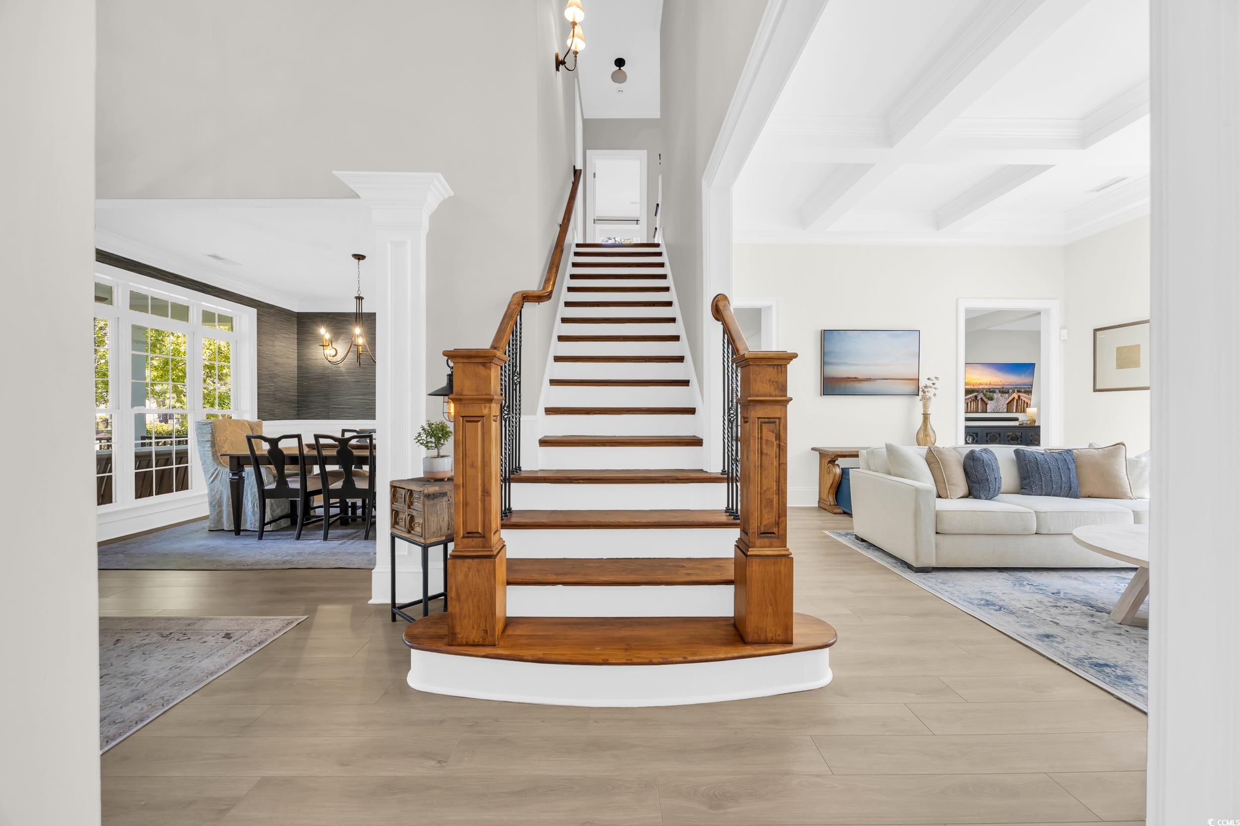 *OPEN HOUSE SUNDAY OCTOBER 5th 2-4pm * Coastal Elegance meets modern luxury in this FULLY UPDATED 4 Bedroom 3.5 Bath with BONUS ROOM CUSTOM BUILT dream home located in the GATED Intracoastal Waterway Community of Collins Creek Landing! Welcome to 93 Knotty Pine Way - your turnkey residence in one of the area's most exclusive communities. From the moment you arrive you will appreciate the mature foliage that surrounds this coastal charmer - pulling into a DEEP DRIVEWAY, side loading 2 car garage, ROOF REPLACED in 2025 - makes coming home easy. A sprawling southern VERANDA draws you closer and invites you to porch sit day or night - relax and take in the DIRECT WATER VIEWS of one of many community ponds. Step inside to discover light & bright ALL NEW LUXURY VIYNL PLANK fLOORING throughout the 1st floor, ALL NEW ETHAN ALLEN LIGHTING, FRESHLY PAINTED INTERIOR, FORMAL DINING ROOM, COFFERED CEILINGS, TWO FIREPLACES, FIRST FLOOR MASTER & En-suite, ALL NEW CARPETING UPSTAIRS and so much more. The seller has seamlessly blended timeless design with modern functionality. At the heart of the home lies a FULLY RENOVATED CHEF'S KITCHEN - curated for both form & function, adorned with gorgeous QUARTZITE COUNTERTOPS, quality DESIGN CRAFT soft close CABINETRY, expansive breakfast bar and a wine bar with 2 New Fridges, TWO PANTRIES - one WALK-IN, professional-grade NEW GAS RANGE and Stainless Steel appliances with a DEN nestled off to the side, making it ideal for entertaining or everyday living. All meticulously maintained, reflecting the home's overall attention to detail and care. Step outside to your outdoor oasis featuring; a welcoming deck and FENCED IN BACKYARD with space for a pool or anything you enjoy doing outside. Once you've taken in all this home has to offer head over to one of the many community amenities; GATED BOAT STORAGE, community BOAT RAMP & FLOATING DOCK with DEEP WATER ACCESS to the Intracoastal Waterway, Clubhouse with Banquet Room & Kitchen for hosting all of your special events, JUNIOR OLYMPIC sized POOL, Playground, Stocked Fishing Ponds, Batting Cage, Junior Soccer Field & Half-court Basketball Court. This eclectic community offers something for everyone - Community members enjoy annual events; Chili Cook-offs, 4th of July firework show , golf cart parade and community block party you have to see to believe, or join us at the Clubhouse for holiday fun with Mr. & Mrs. Clause and friends. The only thing missing - is YOU and the memories you will create living life on the coast in a community that feels like home. Schedule your showing today.