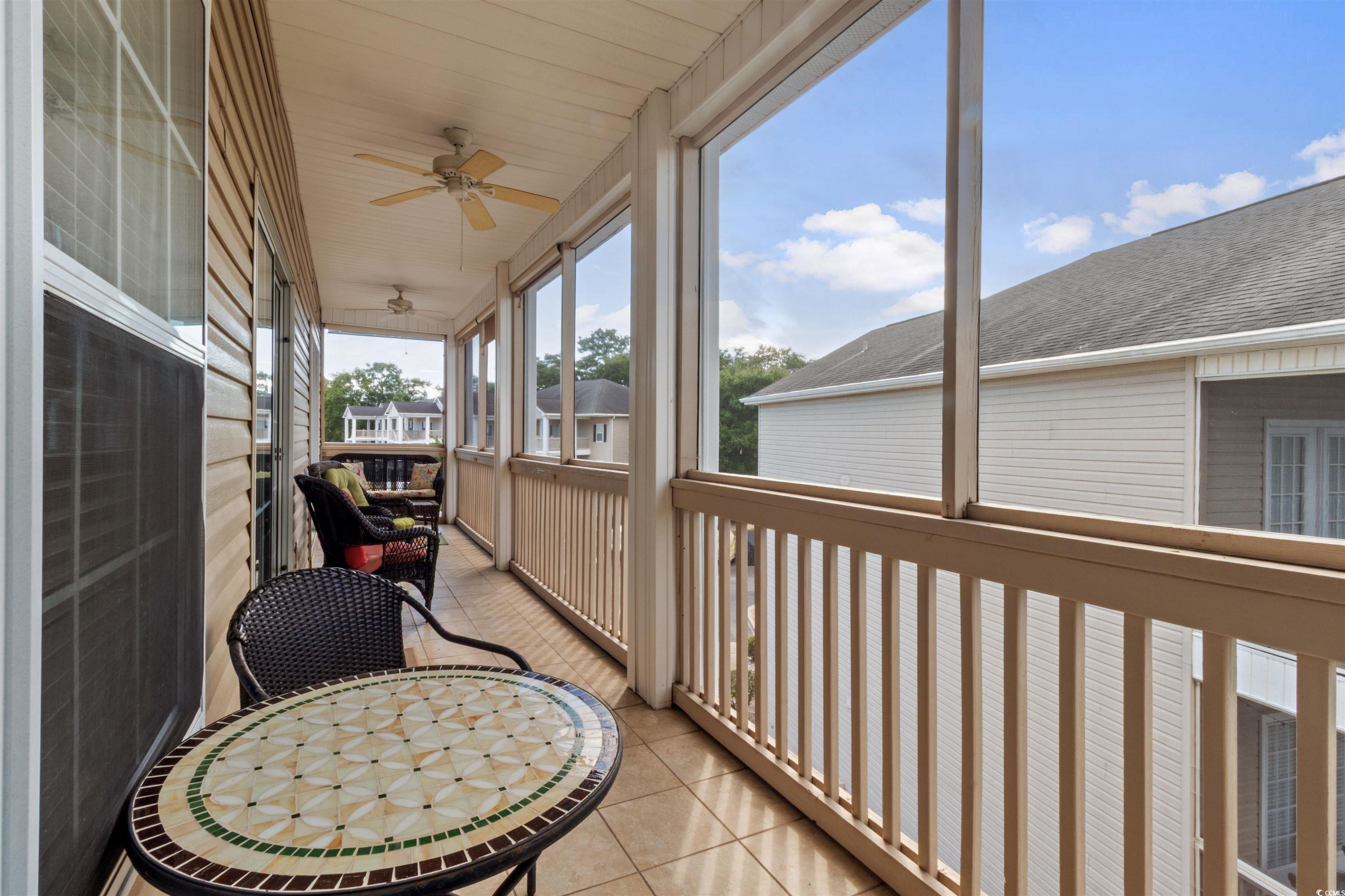 Welcome to your fully furnished three-bedroom, two-bathroom condo in the heart of Cherry Grove in NMB! This top-floor end unit offers both privacy and comfort with diagonal tile flooring in the main living areas, adding a touch of elegance and durability. The spacious kitchen features solid surface countertops and comes fully equipped with all appliances, including the washer and dryer, making this a true turnkey property. The primary suite is a relaxing retreat, complete with a dual sink vanity and ample closet space. Wainscotting was added in the front bedroom and entry area. Step out onto your fully screened porch with Cooloroo Shades, perfect for enjoying your morning coffee or evening beverage while overlooking the community pool. Brand new patio and storm doors. With its ideal location, this condo allows you to enjoy all that Cherry Grove has to offer. From dining, shopping golf, beaches and so much more. Whether as a primary residence, vacation getaway, or income-producing investment. Schedule your showing today to make this beautiful condo yours!