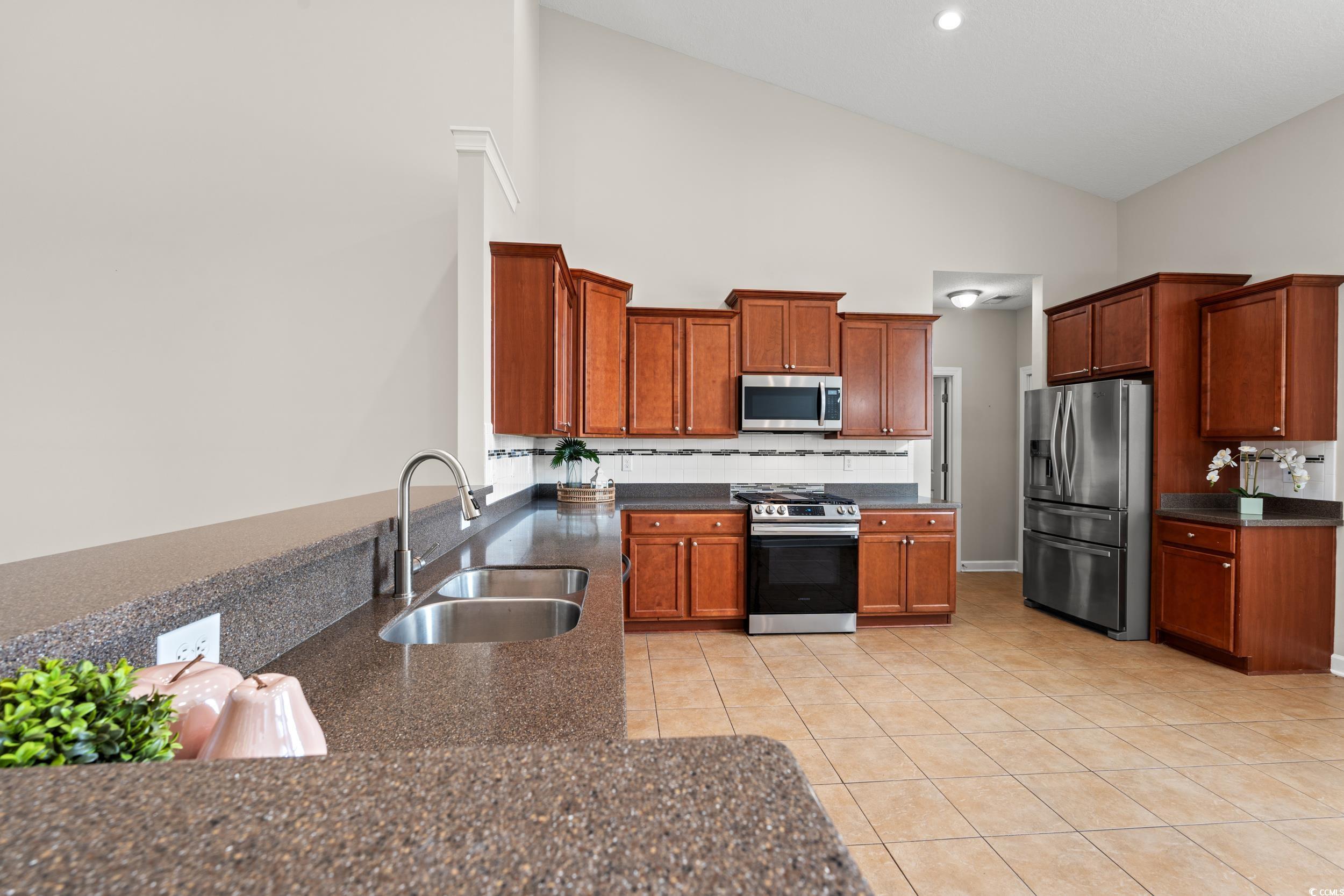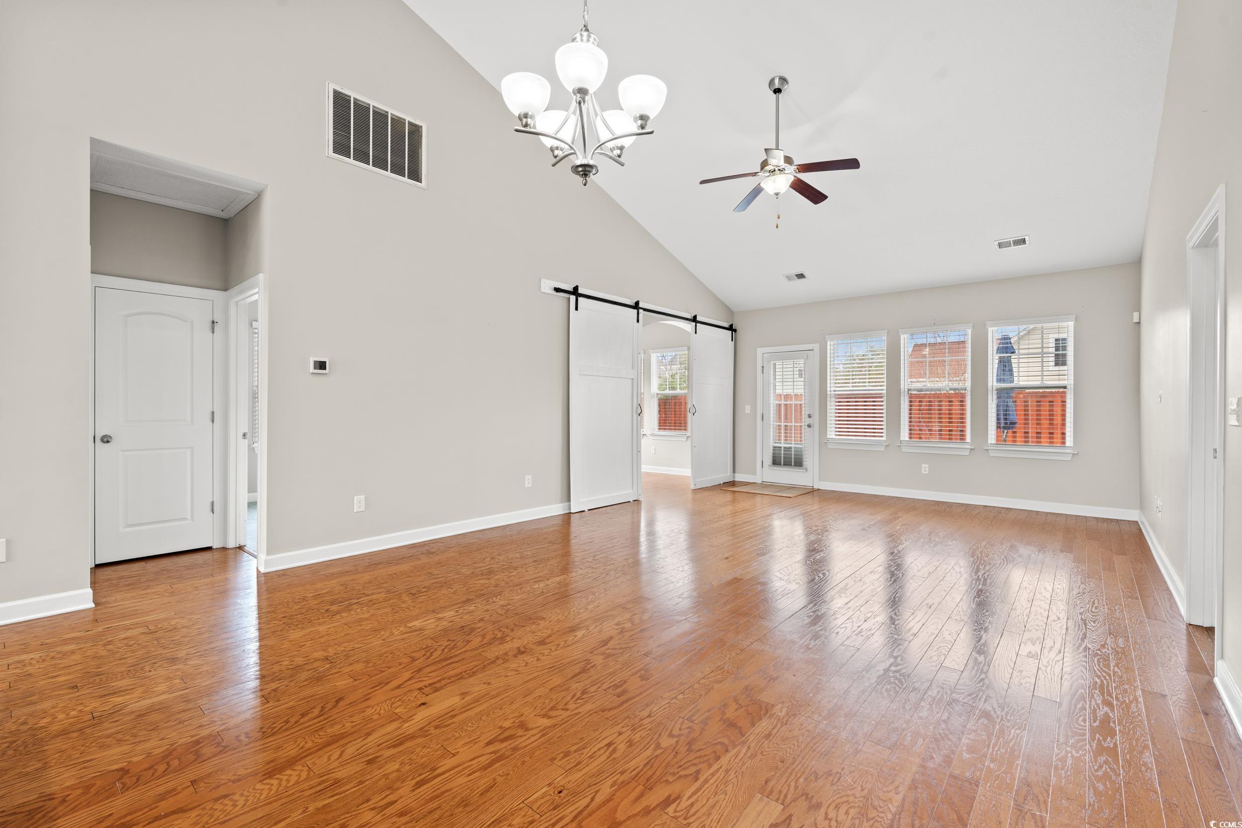 Welcome to 826 Sand Binder Drive, a stunning home nestled in the highly desirable gated community of Brighton Lakes in Carolina Forest! This beautifully maintained 4-bedroom, 2-bath home offers the perfect blend of comfort, style, and functionality. Step inside to an inviting open floor plan featuring soaring vaulted ceilings in the living area and master suite, creating an airy, spacious feel. The heart of the home is the enormous kitchen, perfect for cooking, entertaining, or casual family meals, complete with a generous eat-in breakfast area and stainless appliances. The master suite offers a peaceful retreat with a well-appointed bath featuring a walk-in shower, relaxing garden tub, and dual vanity. Two additional bedrooms provide ample space for family or guests. The fourth bedroom could also be utilized as an office or extra flex space. You'll love the custom sliding barn doors for added charm and privacy. Enjoy outdoor living at its best in backyard, perfect for kids, pets, or evening gatherings & surrounded by manicured landscaping with river rock accents and a convenient irrigation system. A side-load garage enhances curb appeal, while the quiet gated neighborhood offers peace of mind. Brighton Lakes offers resort-style amenities and an unbeatable Carolina Forest location - close to top-rated schools, dining, shopping, and just a short drive to the beach! Don't miss this rare opportunity schedule your showing today and make 826 Sand Binder your new coastal dream home!
