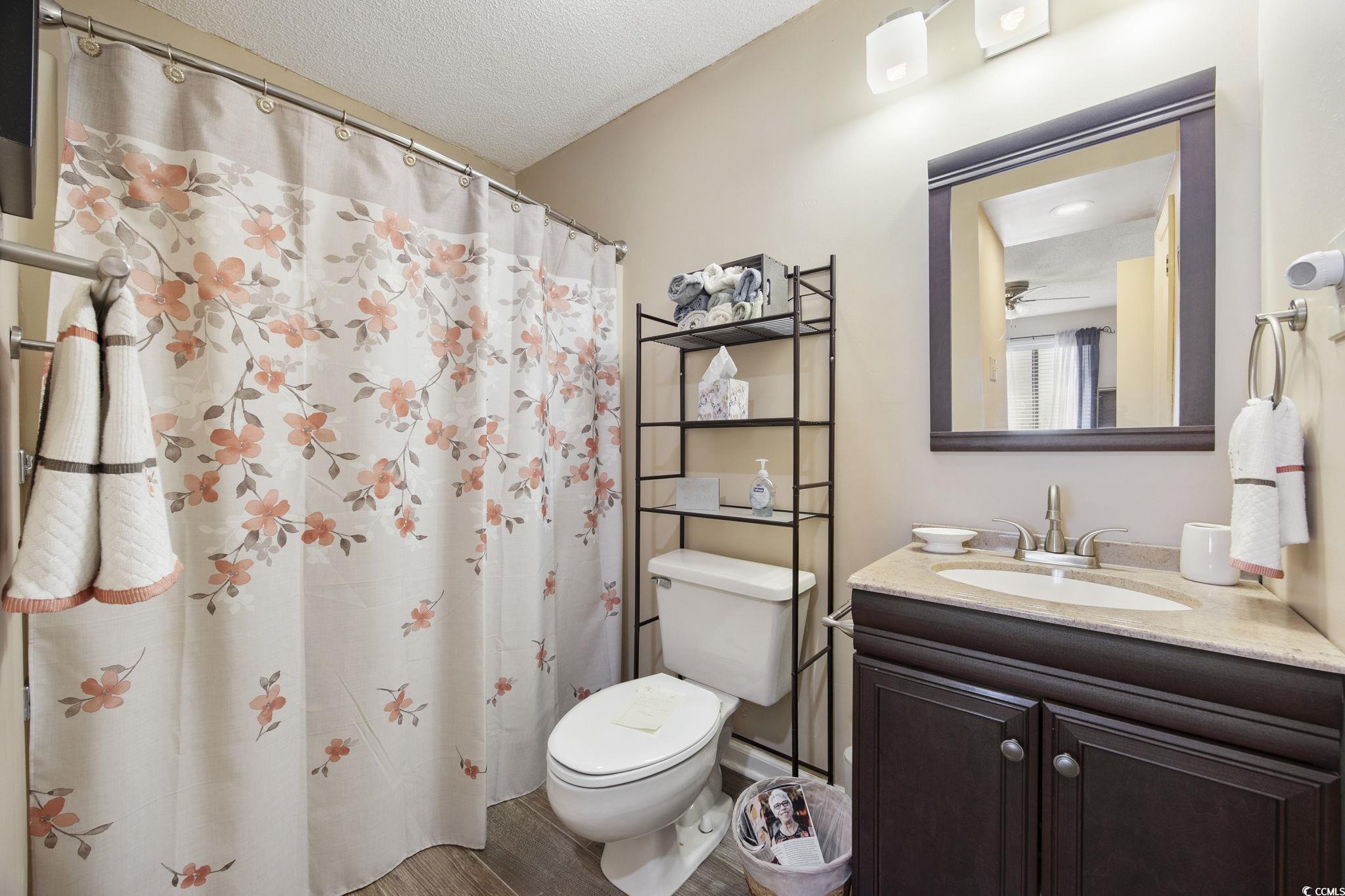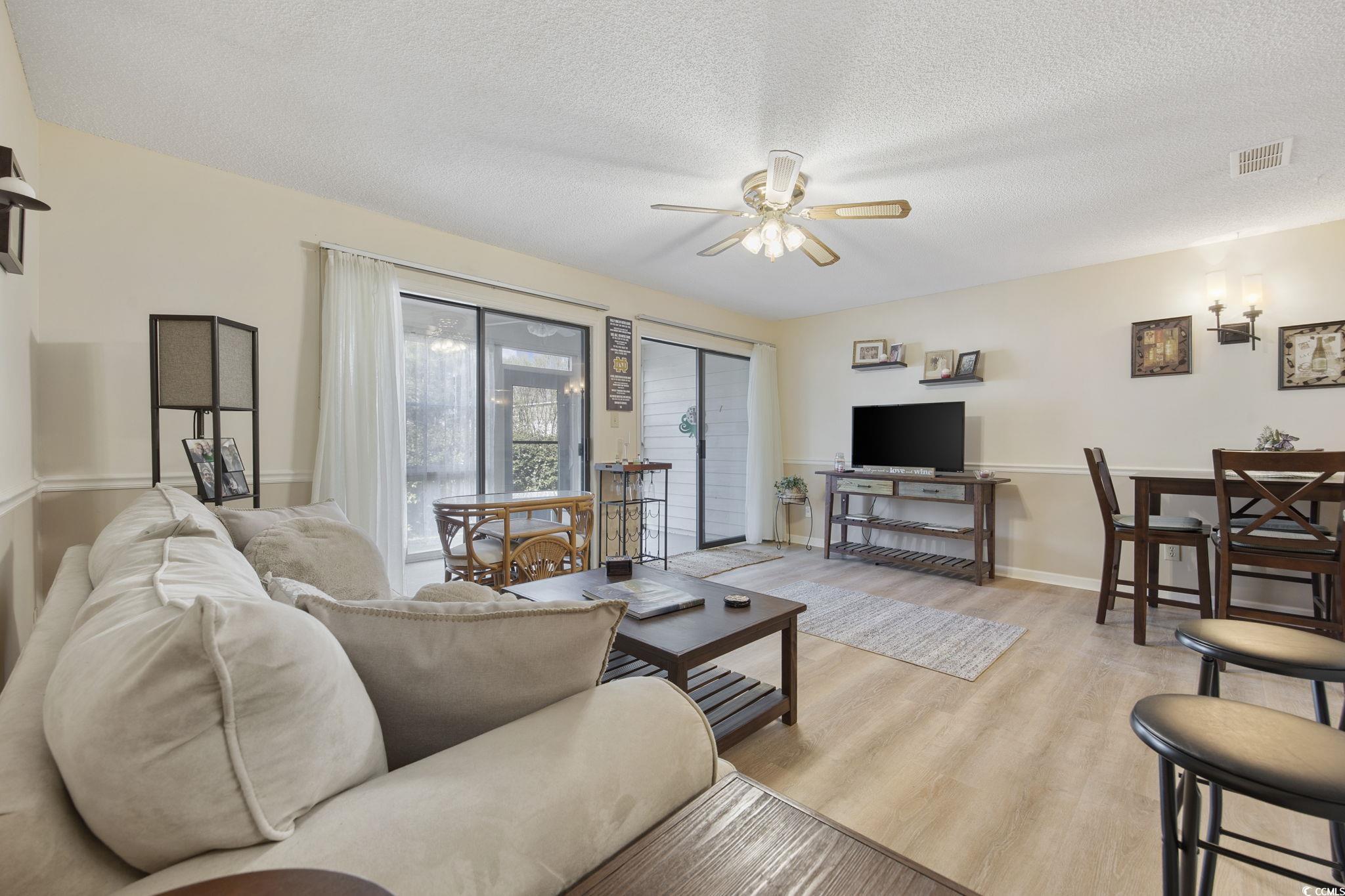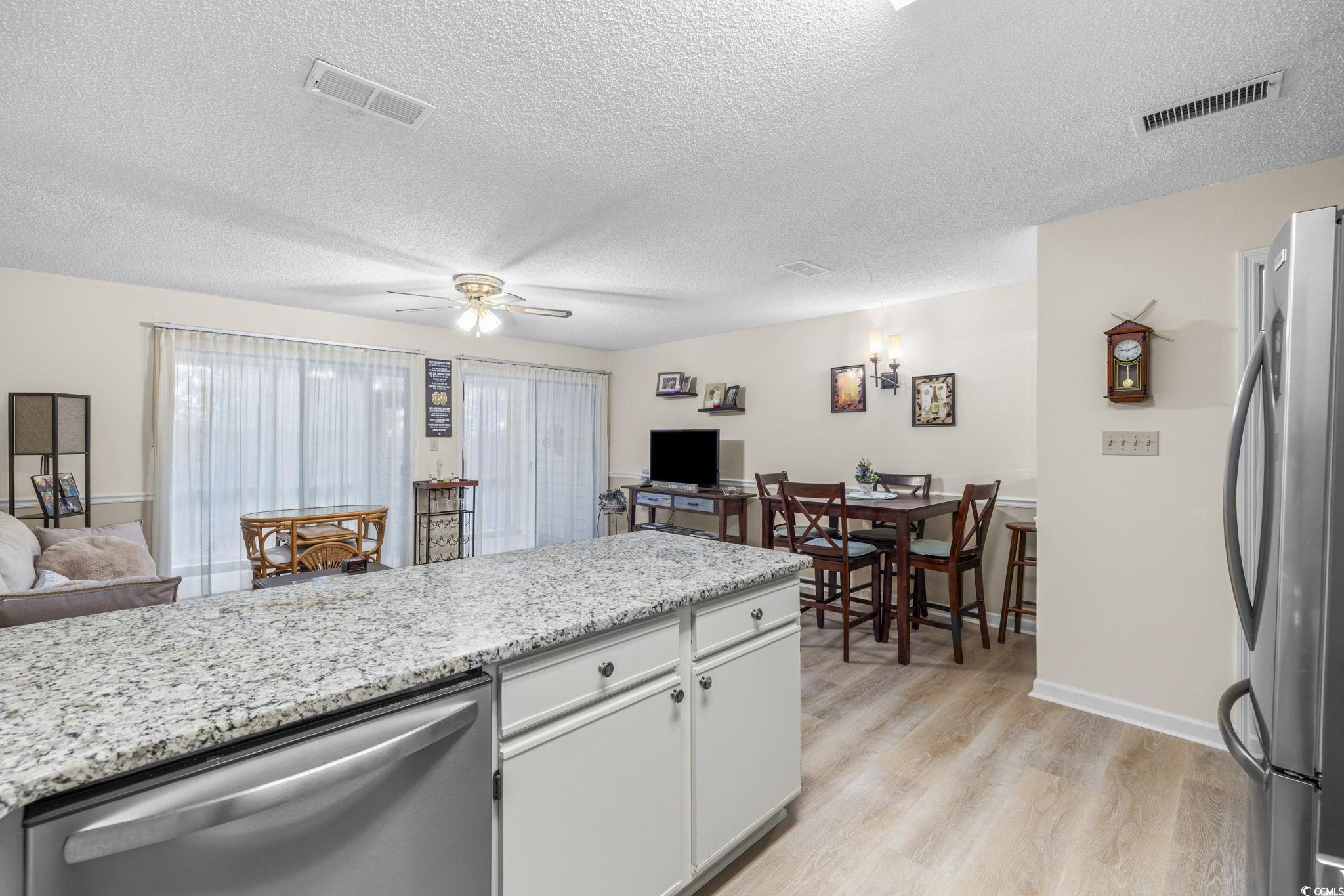Charming updated 1-Bedroom, 1.5-Bathroom First-Floor Condo with Carolina Room in quiet Myrtle Beach Community. Nestled in a peaceful and well-maintained complex, this cozy 1-bedroom, 1.5-bathroom condo offers a serene living experience just 20 minutes from the sandy shores of Myrtle Beach. Perfectly located on the first floor, this home features a newly updated well-appointed kitchen with brand new stainless steel appliances, ample refreshed cabinetry and beautiful, expansive granite counter space, making meal prep a breeze. A custom pantry closet has been added and convenient half-bath is located just off the living area for guests ease. Theres a bright and airy Carolina room, perfect for relaxing or enjoying your morning coffee. This unit features brand new kitchen Stainless Steel Appliances (ready for new owners to register warranty), refreshed cabinetry in kitchen & half bath, new LVP flooring and new toilet in the half bath, new HVAC and dryer, like new washer, HWH 3 years old. The spacious living area flows seamlessly into the dining space, creating an open and inviting atmosphere. The master bedroom is generously sized with a large closet w/designer doors, offering plenty of storage. The custom layout offers a full private master bathroom with relaxing tub and shower combination and linen closet. Enjoy additional outdoor space in the Carolina room, perfect for lounging or using as a home office. Washer & Dryer are conveniently located in a large closet in the Carolina room. Step outside to access the complexs pool, ideal for cooling off during the warmer months. This condo is located in a quiet community that offers both tranquility and convenience. With Myrtle Beach just a short 20-minute drive away, youll have easy access to all the attractions, dining, and entertainment the area has to offer, while still being able to return home to a peaceful retreat. This unit is sold As-Is. Seller has been advised entry road is being repaired. Don't miss the opportunity to own this delightful condo - schedule a tour today!