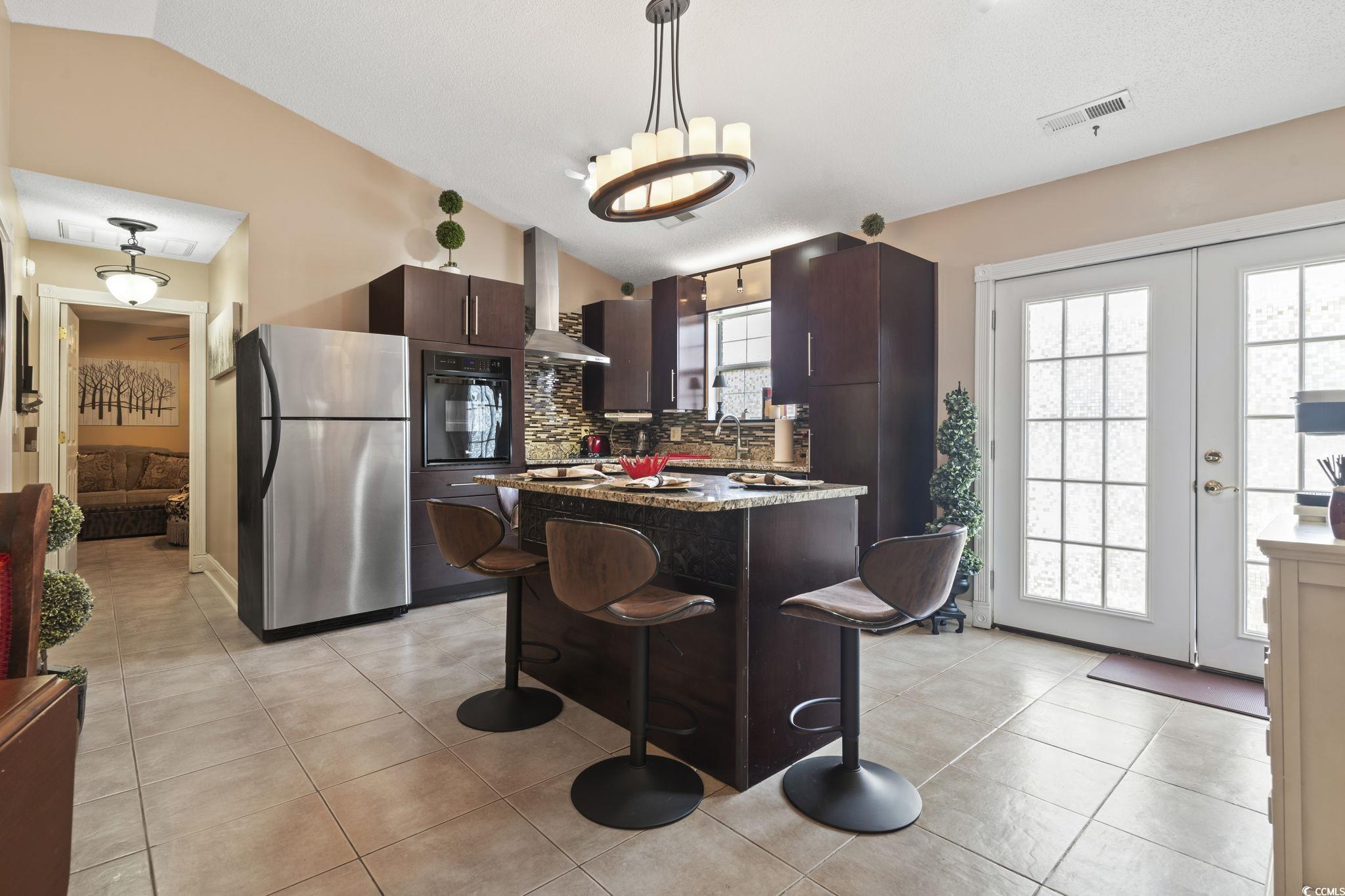 Your peace of mind is important and the HOA fee includes BUILDING INSURANCE (including roof and siding), basic cable, internet, landscaping, pressure washing, exterior maintenance, allowing for a truly low-maintenance lifestyle. Welcome to this beautifully designed home that effortlessly blends modern style with cozy charm! Step inside to discover soaring ceilings that create a bright, open, and airy atmosphere throughout the living room, dining area, and kitchen. The seamless open-concept layout is ideal for entertaining guests or simply enjoying everyday living. The kitchen is a true centerpiecefeaturing sleek stainless steel appliances, a matching work island that doubles as a breakfast bar, custom cabinetry, a stunning mosaic tile backsplash, and luxurious granite countertops. French doors just off the dining area lead to a private balconyperfect for sipping your morning coffee or unwinding in the evening breeze. The spacious primary suite is a peaceful retreat, complete with a stylish sliding barn door that opens to a fully updated en-suite bathroom. Enjoy a gorgeous floor-to-ceiling tiled shower, a modern vanity, and contemporary fixtures. An additional well-appointed bedroom and a full bath provide comfort and convenience for guests. Additional features include a single-car garage with a screen additioncreating a perfect bug-free space for relaxing or working on projects. Located in a beautifully maintained, gated community in the heart of Myrtle Beach, this home offers both privacy and security. Whether you're looking for a primary residence, a vacation getaway, or an investment opportunity, this home delivers the ideal blend of comfort, style, and accessibility. Just 1.7 miles from the beach, and within walking distance to Broadway at the Beach, the Pelicans stadium, restaurants, and shoppingyoull have Myrtle Beachs top attractions right at your fingertips. Plus, you're just a short drive from local hospitals and medical facilities. Dont miss your opportunity to own this stunning property in one of the most sought-after communities along the Grand Strand! All measurements are approximate and not guaranteed. Buyer is responsible for verification. Please ask your agent about lender closing costs incentives for this property.