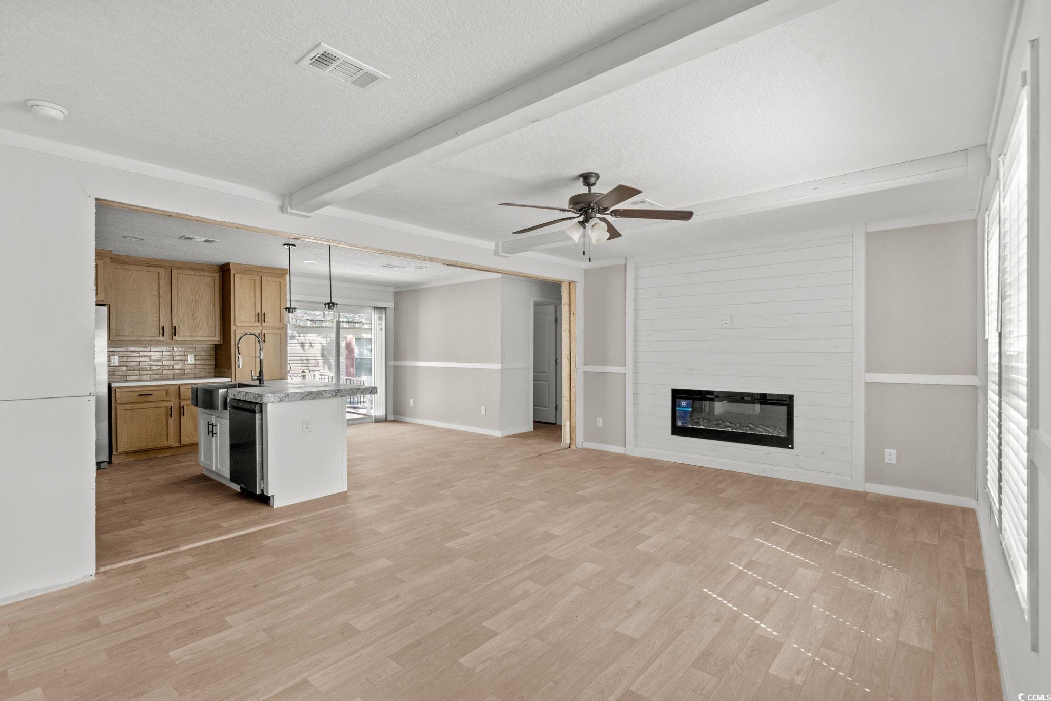 LivingRoom: BeamedCeilings, CeilingFans, Fireplace