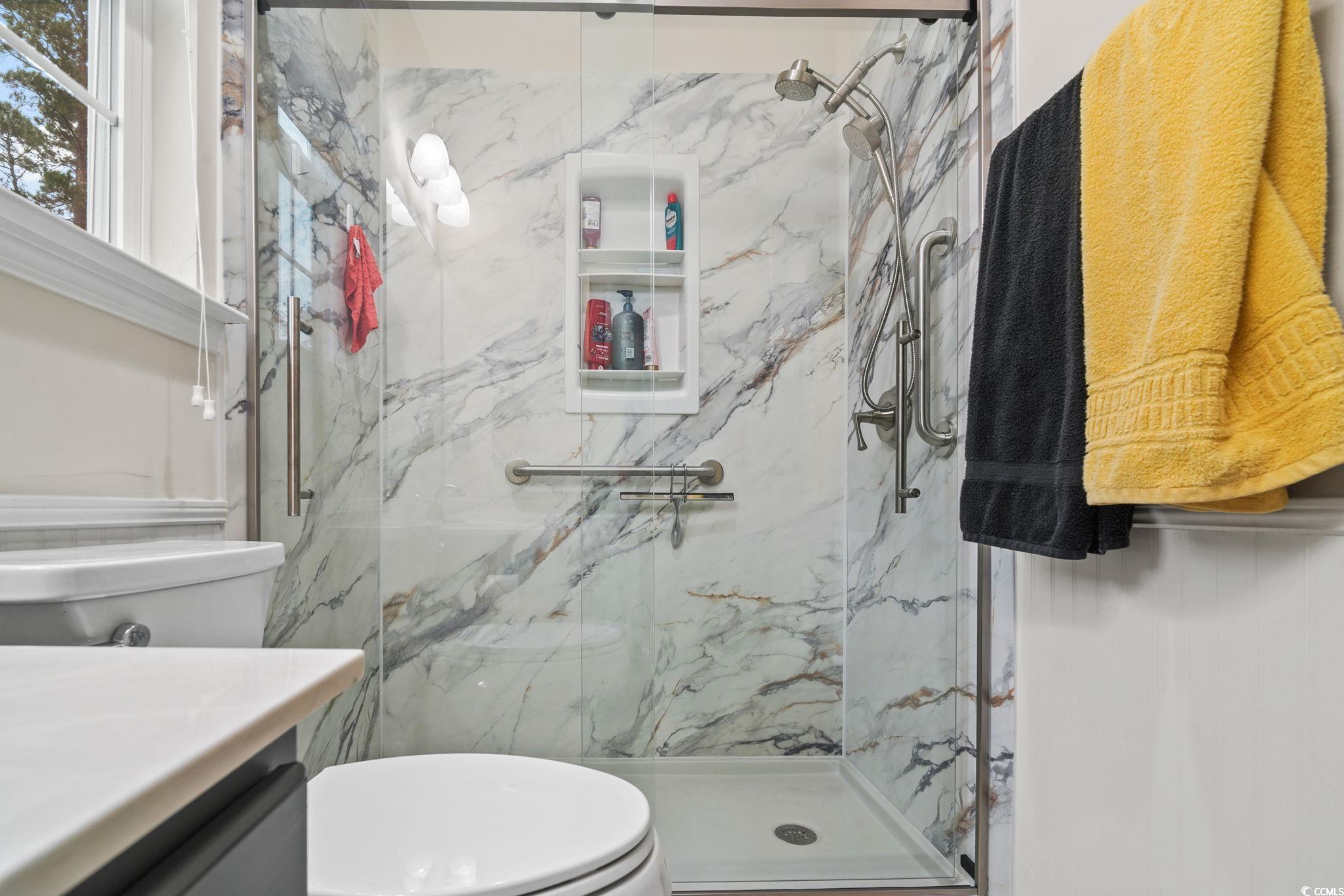 Are you ready? New roof! Garage has epoxy floor and a separate heat/ac/dehumidifying unit. Primary main-floor bedroom has tray ceiling and the bath has a large walk in closet, double sinks and beautiful countertop. Bathroom has had a MAJOR upgrade and now includes programmable radiant heated floors, a huge walk-in shower with gorgeous walls, rain showerhead and a seat! Built in shelves for a very pretty look as well. Split floorplan puts the other bedrooms away from the primary for privacy. Main bathroom has also had an upgrade with a new gorgeous shower. This is a natural gas community and the home has a gas fireplace, stove, dryer, and hot water heater. High vaulted ceilings, custom ceiling fan and fireplace in the formal living room. No popcorn ceilings here! Beautiful hardwood floors in living room and bedrooms. Sun tubes to bring in so much natural light. Formal entryway, arched doorways, crown moulding, chair rail and plenty of closets. Formal dining room with beautiful wood accent walls. Let's talk about the eat-in-kitchen - so much storage! Pullouts in some lower cabinets, 42"" upper cabinets with soft close doors, stainless appliances including a stainless range hood, granite countertops and a pretty backsplash, (did I mention so much counterspace?), a large undermount sink and pantry. In the laundry room you will not only find a walk in closet that would make a great second pantry or broom/vaccuum closet, but yet another storage cabinet for all your supplies. There is a finished room over the garage that has been used as the 4th bedroom since it has a full bathroom and a walk-in closet as well, but would make a wonderful media room, guest room, playroom, craft room or office. It's extra bonus space for whatever you need. And to top it all off, there's a wonderful sun room with an electric fireplace, full windows and screens. The plants have been very happy in here year round. Sellers will be leaving the generator that was there when they bought the home, although they have never had a need to use it. And finally, the great outdoors! This home backs the woods! What a serene feeling to sit outside and enjoy. Sweet front porch gives you a place to sit and watch the world go by. Inground sprinklers, gas hookup for grill, patio with walkway and exterior lighting. Fences are alllowed in this community. Speaking of the community - absolutely beautiful homes not right on top of each other. Quiet, immaculate streets and you've got a nice proximity to Conway hospital, Burning Ridge golf course, Tanger outlets, 3 different grocery stores, the post office and all the shopping and restaurants you could want. Downtown Conway with the riverwalk is about 5 miles away, so is Carolina Forest; you can be at the beach and in the ocean in under 12 miles, and the airport is about 13 1/2 miles. This home checks off all the boxes. Come make it yours!