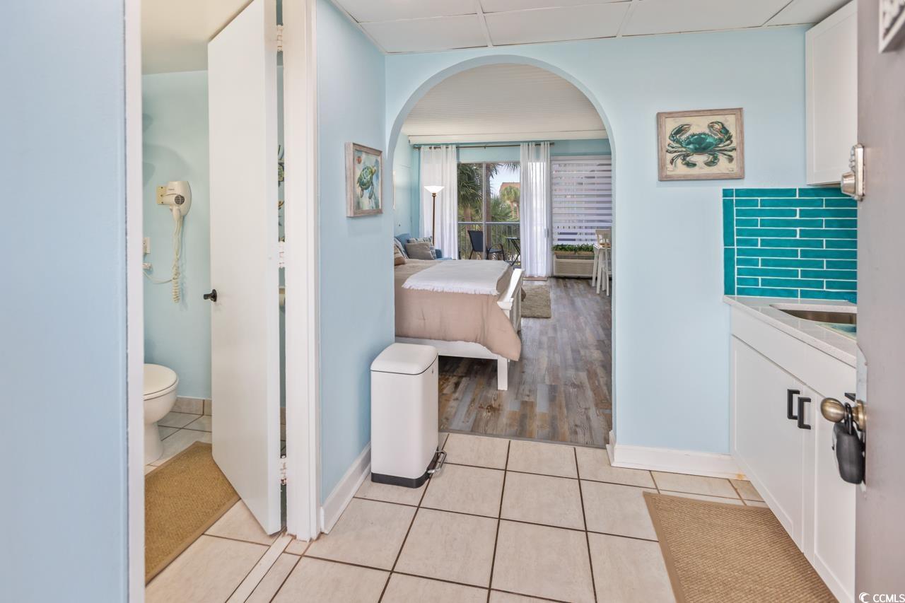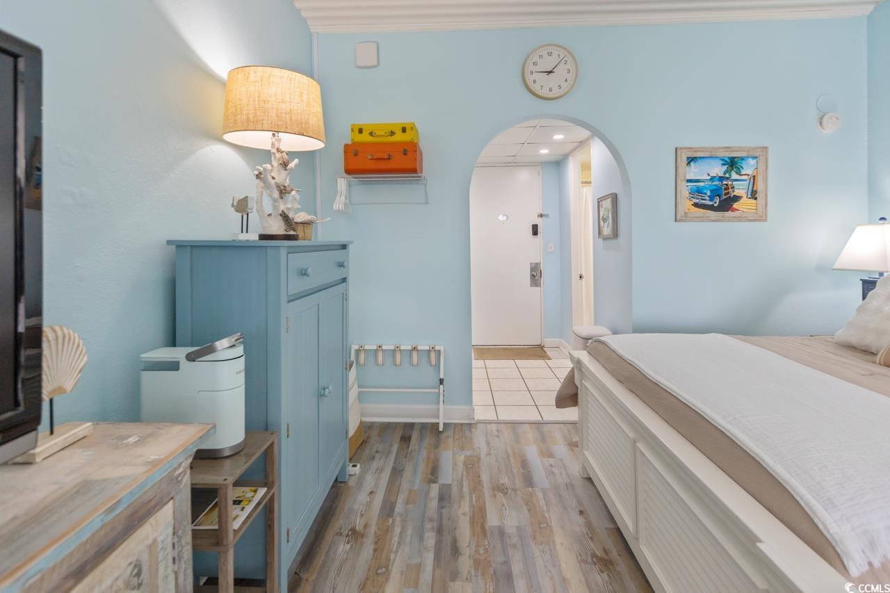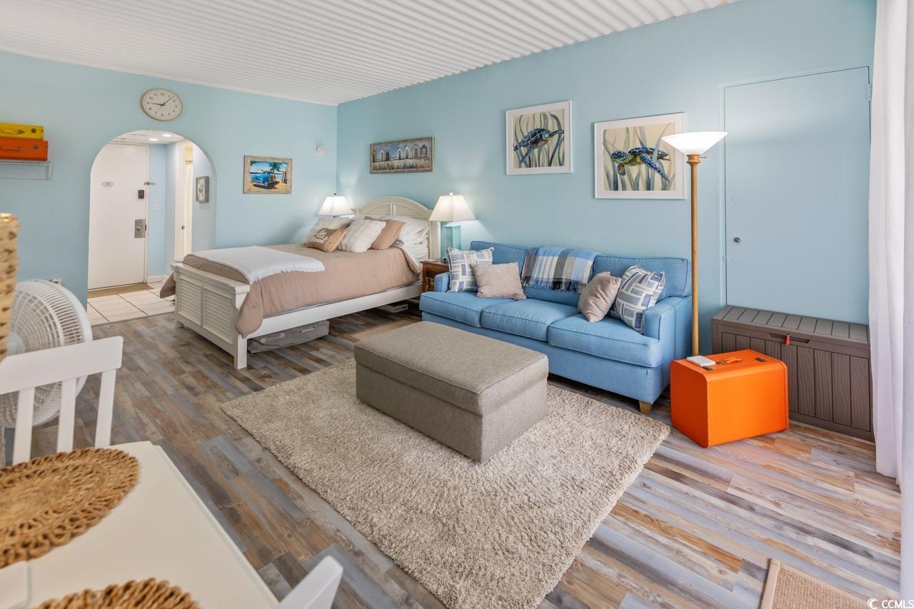 Myrtle Beach Condo! St Johns Inn a completely renovated community & steps from the Ocean! Looking for the perfect beach getaway or investment property? This beautifully renovated efficiency condo is across the street from the ocean and completely turn-key! ** Interior upgrades include: brand new kitchen cabinets & quartz countertops, stainless steel refrigerator, microwave and 2 burner cooktop, stylish tile backsplash & stainless sink, fresh paint throughout, LVP flooring in main living area and new bathroom vanity for a modern touch. This efficiency comes fully furnished, ready for you to move right in or continue as a 2nd home or rental property. Resort-style amenities include: sparkling pool & hot tub, grilling area for outdoor fun, on-site laundry & elevators for convenience plus ALL utilities included, cable, internet, water & even electricity! Live the coastal dream and enjoy everything the Grand Strand has to offer--dining, shopping, golf, and entertainment are just minutes away! Easy to see! Square footage is approximate and not guaranteed. Buyer is responsible for verification.